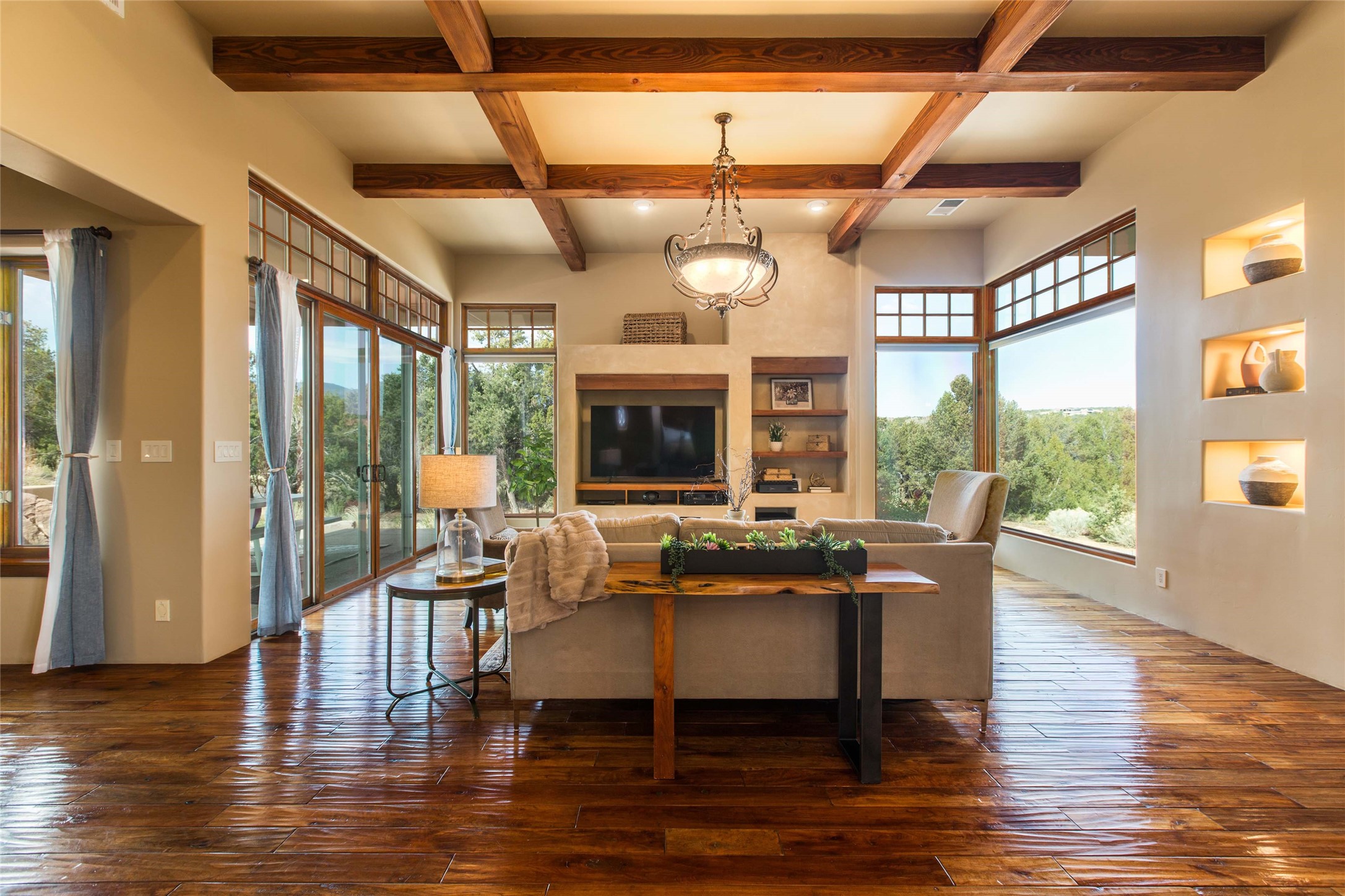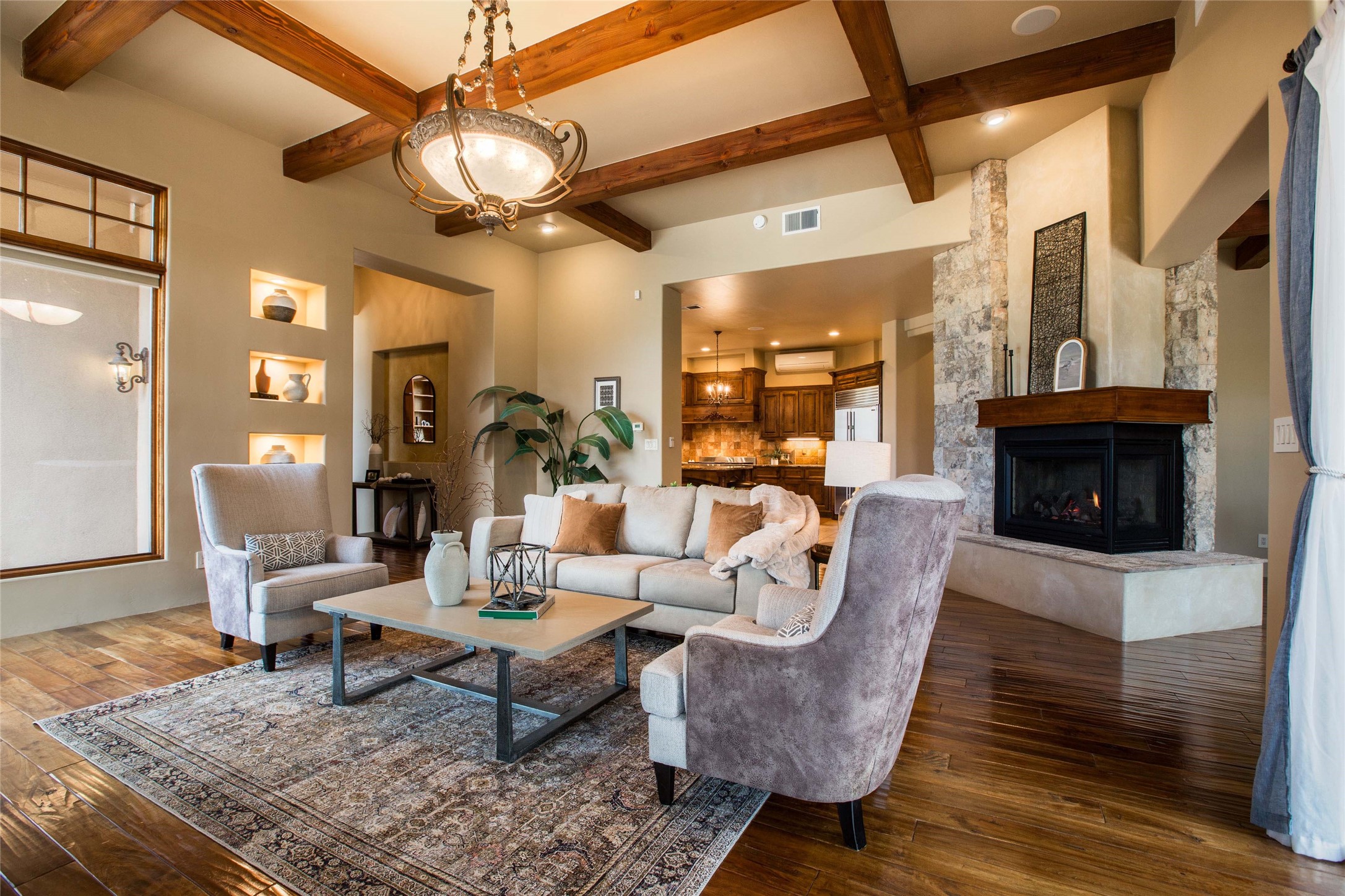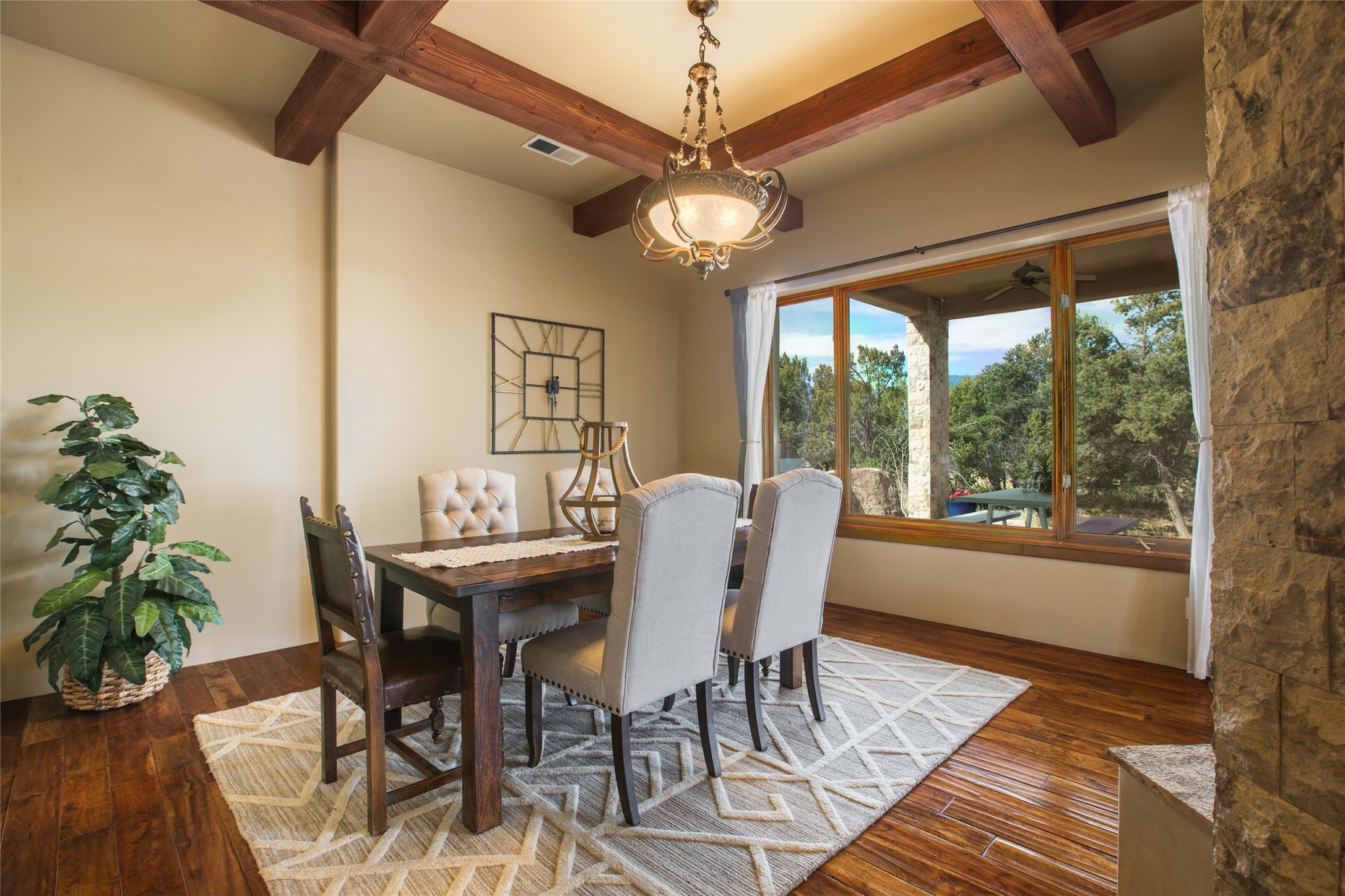 • Interior FeaturesBeamed Ceilings, Wet Bar, Interior Steps, Central Vacuum