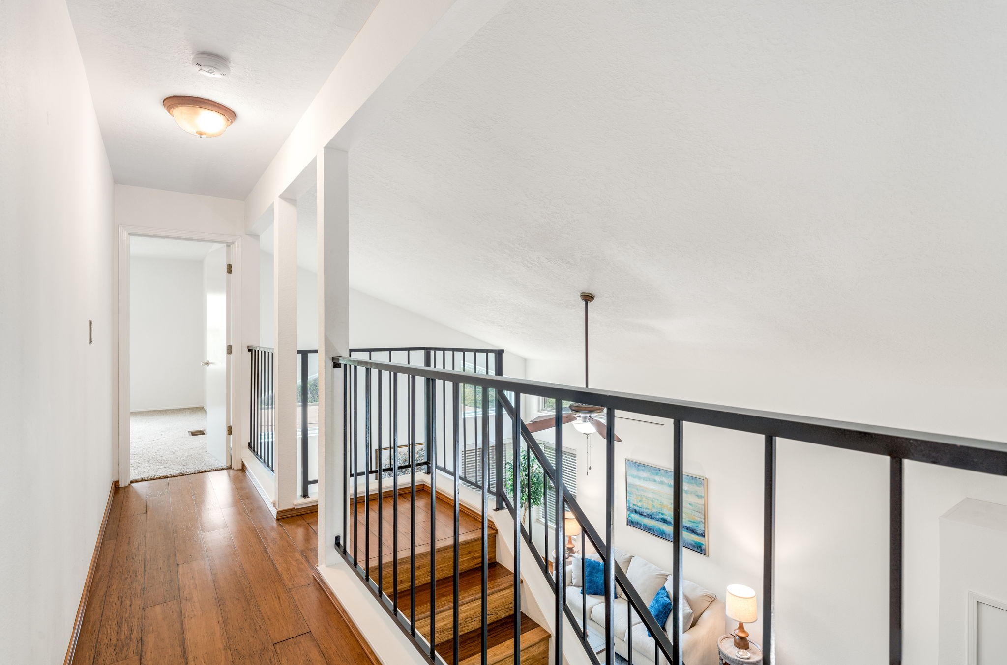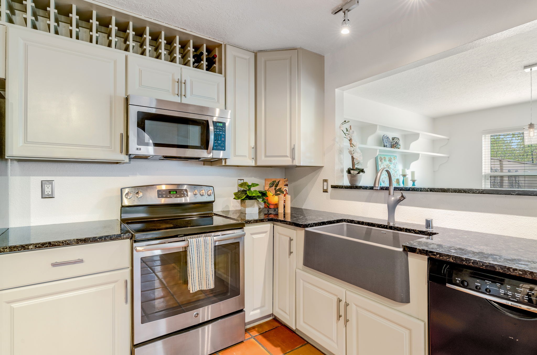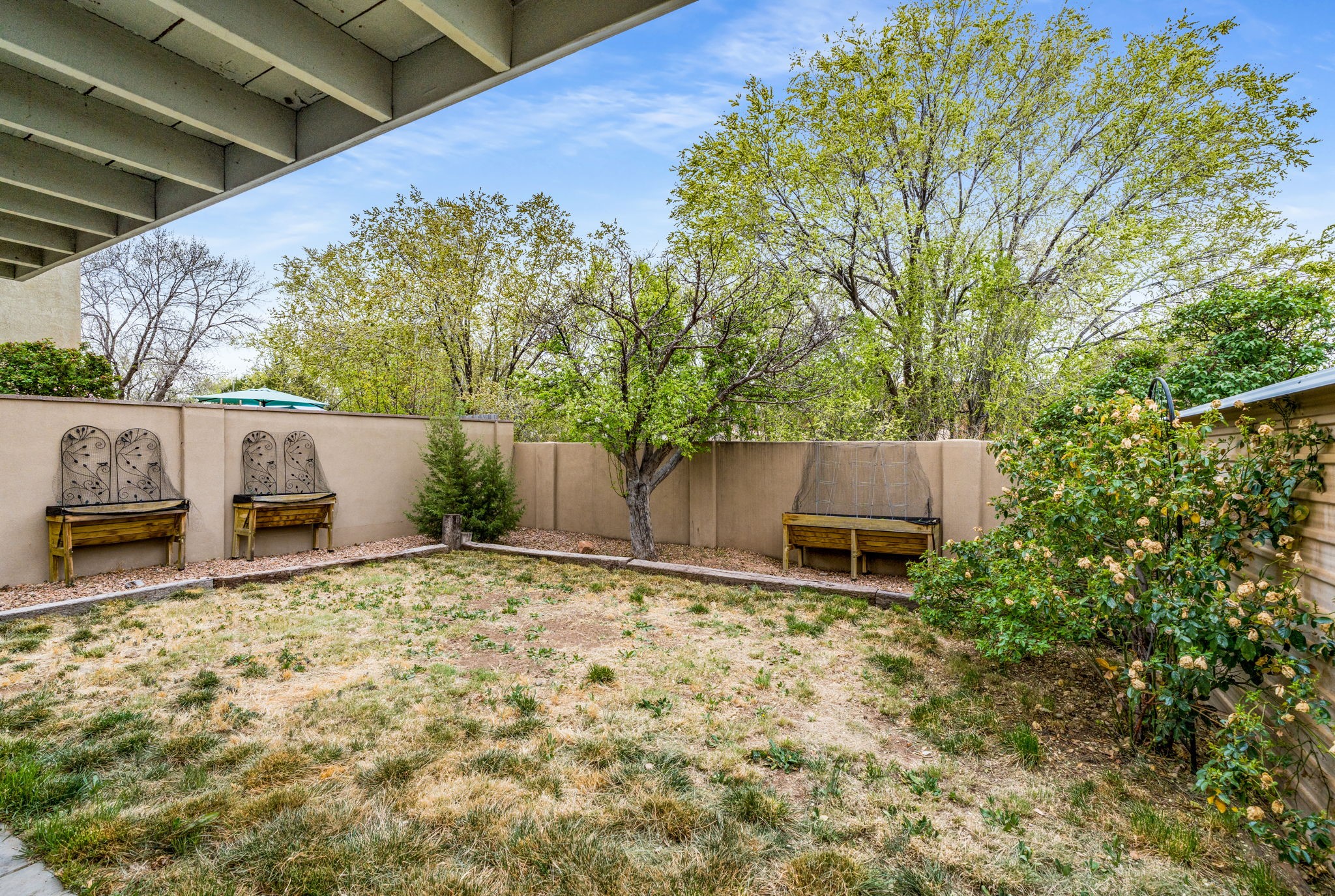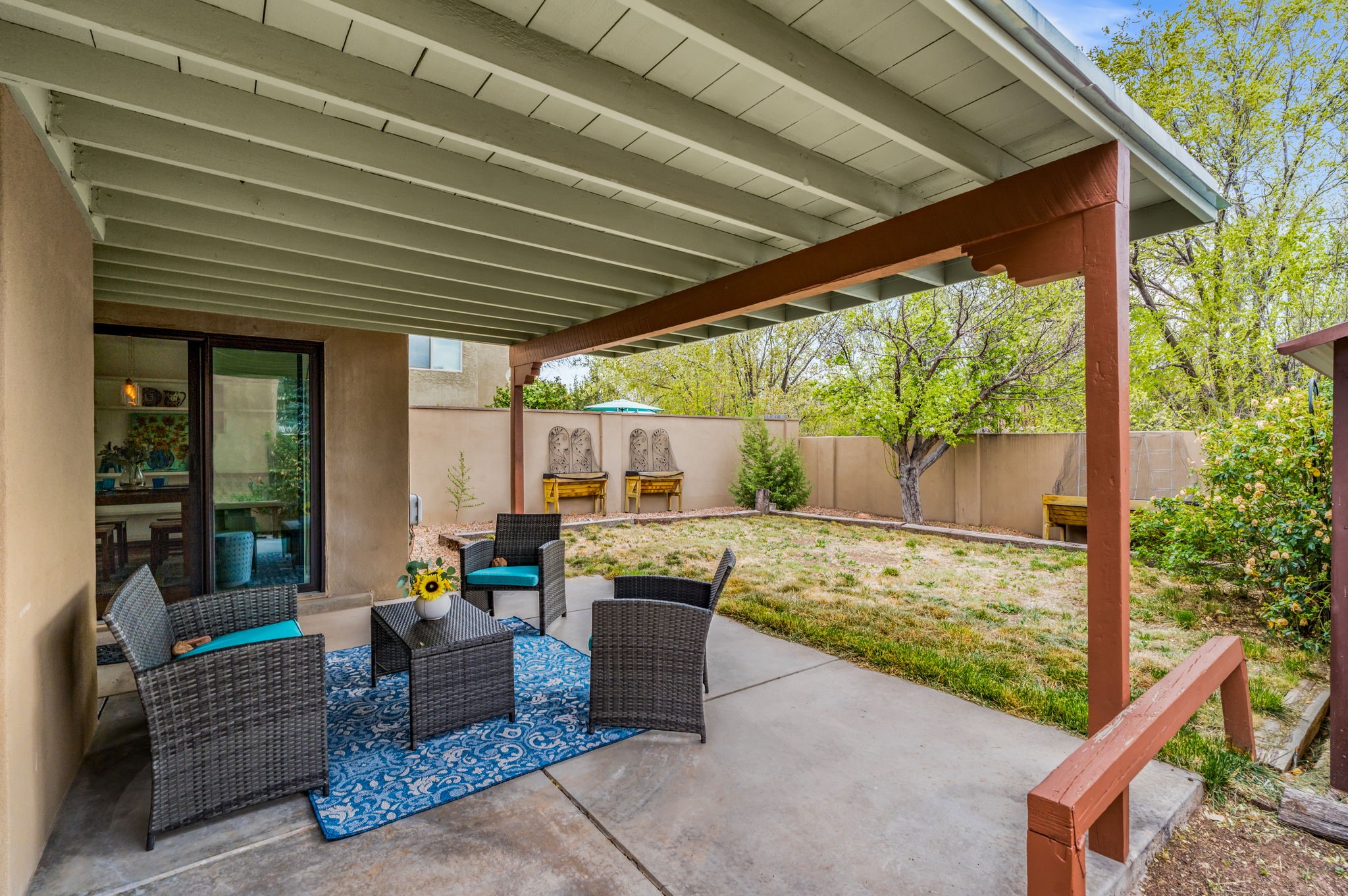 Light-filled and inviting, this beautiful two-story home in the desirable Candlelight area of Santa Fe offers comfort, charm, and a peaceful natural setting. With three bedrooms upstairs, two and a half bathrooms, and a sunny open-concept first floor, this home truly stands out.The living room makes a striking first impression with its dramatic two-story ceiling and a warm wood-burning fireplace topped by a handsome wood mantel. From there, the space flows seamlessly into a lovely dining room featuring a wall of built-in bookshelves and a back wall of windows with a sliding door that opens to the charming covered portal and fenced backyard.Set against a tree-filled arroyo, the backyard offers exceptional peace and privacy. Relax under the portal and enjoy the sound of birds singing in the trees.The spacious kitchen is designed for both function and style, with room for a table and chairs for casual dining. Features include Saltillo tile floors, granite countertops, a farmhouse sink, newer stainless steel appliances, and a large pass-through window with a bar that opens to the dining room.Upstairs, the primary bath has been beautifully updated with a step-in shower featuring a pebble floor and glass doors. Additional highlights include engineered wood floors on the main level, two-year-old windows, a two-car garage, and a large storage shed.This is a warm, bright, and welcoming home in a lovely Santa Fe setting.