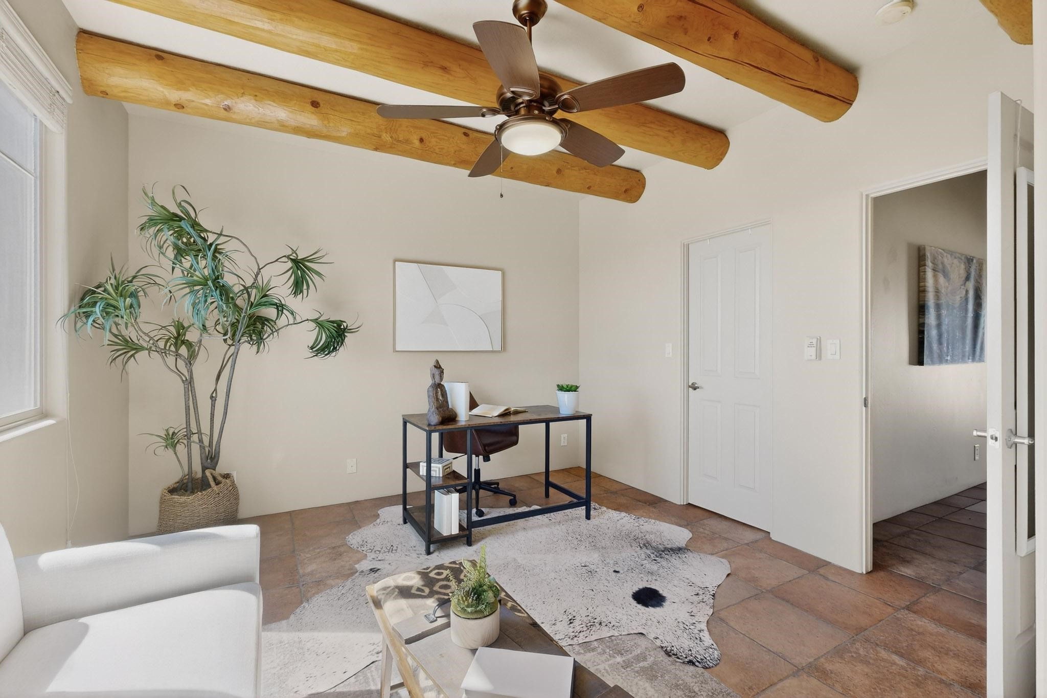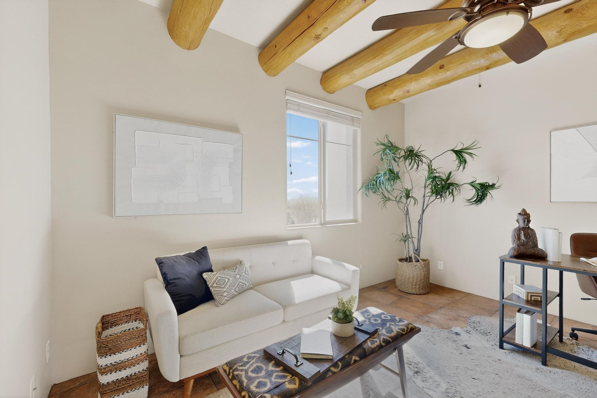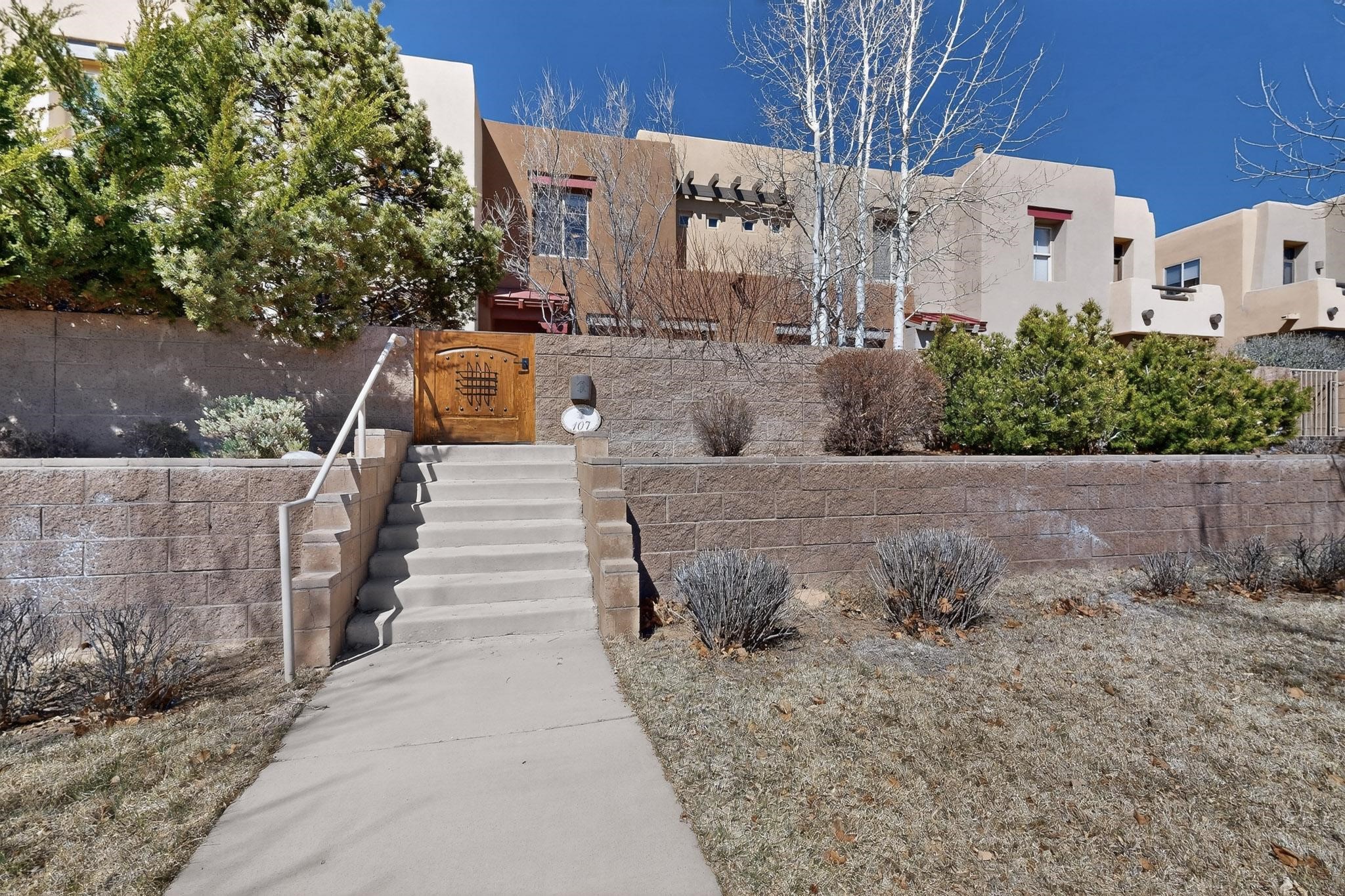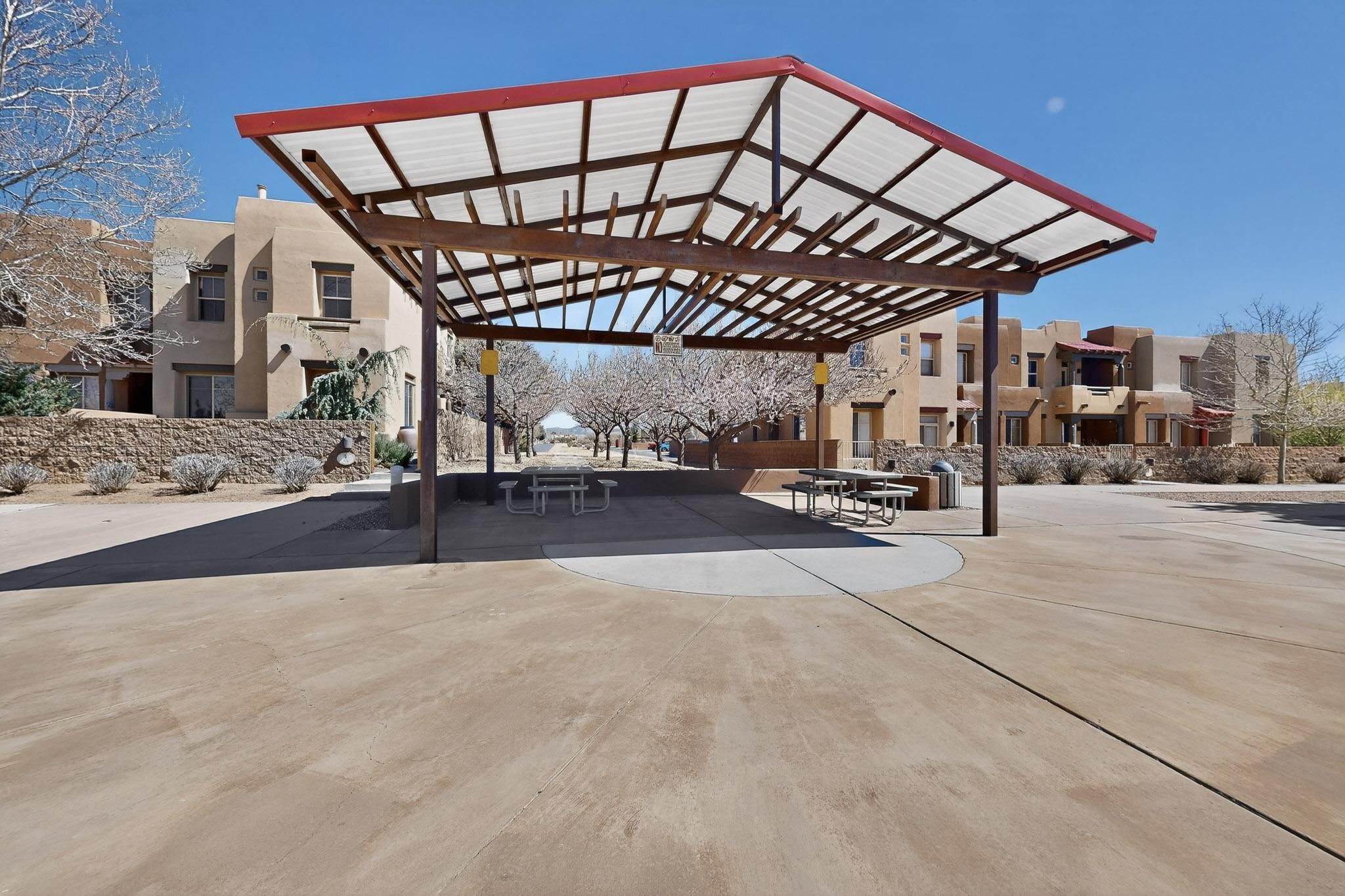 Located on a quiet, tree-lined street, across from a park, this home is perfect as a primary residence or lock & leave second home, offering comfort and convenience for a variety of lifestyles. A beautifully landscaped entry courtyard welcomes you with a charming fountain, creating an inviting and serene entrance. The open living room and dining area feature a beamed ceiling and a cozy fireplace, providing a warm and inviting space for gatherings and everyday living. The kitchen is equipped with granite countertops, stainless steel appliances, and a pantry, offering both style and functionality for all your culinary needs. Upstairs, both the primary and secondary bedrooms feature ensuite bathrooms and walk-in closets, ensuring comfort and privacy. The primary suite also includes a door leading directly to the deck offering stunning mountain views. Between the bedrooms, an office nook offers a space for work or study. A half bath and laundry room are conveniently located on the main floor. Residents have easy access to hiking and biking trails and open space, encouraging an active and outdoor lifestyle in this beautiful and vibrant community.