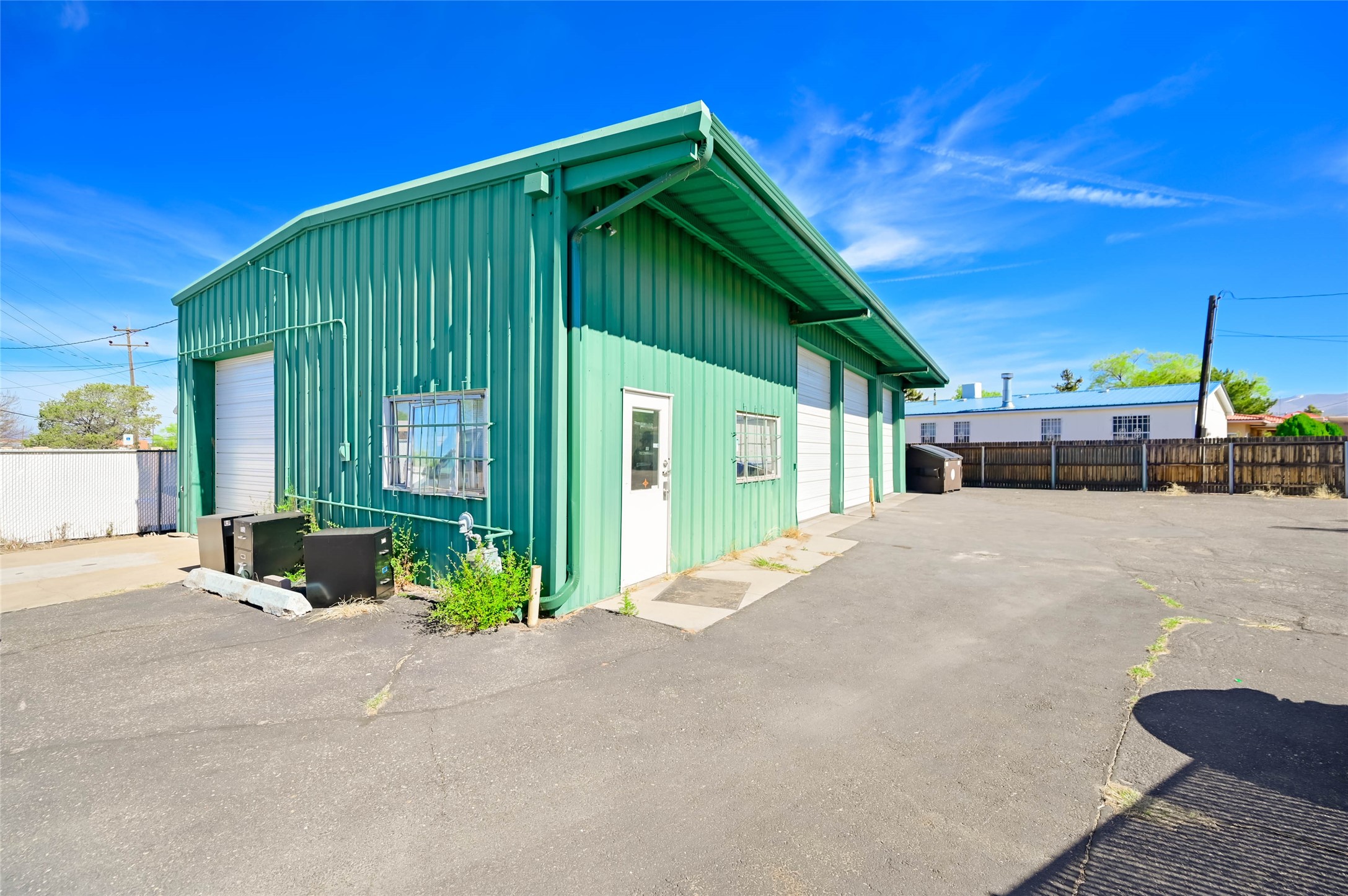 Industrial investment opportunity in the center of Santa Fe. This property features three 12-ft roll-up doors and one 10-ft roll-up door, all installed within the last few years. There is a small reception/office area in the front, along with a breakroom and restroom. The property includes an 18' x 15' upstairs mezzanine storage space. The warehouse has water and gas-hanging heaters. Plumbing, electrical, asphalt, and exterior paint have all been updated in recent years. The entire 0.20-acre lot is fenced with privacy slats and includes two locking gates. The property is currently leased to a tenant on a three-year term with annual increases. Financials are available upon request through the Seller's Broker. Do not disturb tenant. Showings by appointment only.