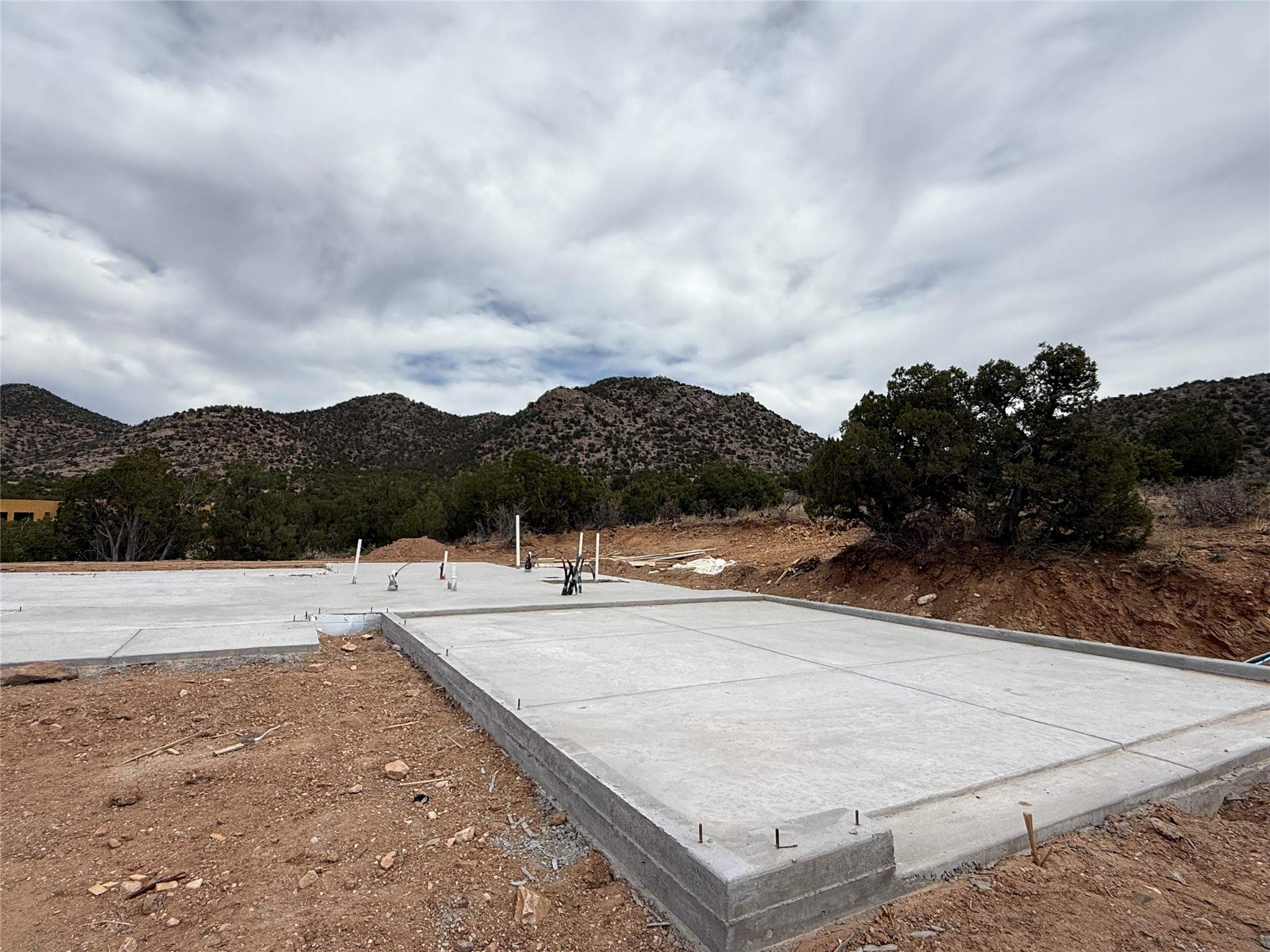 This lot has been fully prepped with all the site work, slab is poured with plumbing, water, and permit. Ready for you to finish building. In gated Longview at Santa Fe Subdivision with stunning panoramic views of the Sandias, the Galisteo Basin and the valley beyond. This fantastic 2.5 acre tract is part of an exclusive gated subdivision known as Longview at Santa Fe.. Conveniently located near some of our most cherished local eating establishments (Harry's Road House, Cafe Fina) and just a short drive to the Agora Shopping Center. BIG VIEWS - PRIVACY - SECURITY. Ready for you to finish building your dream home.