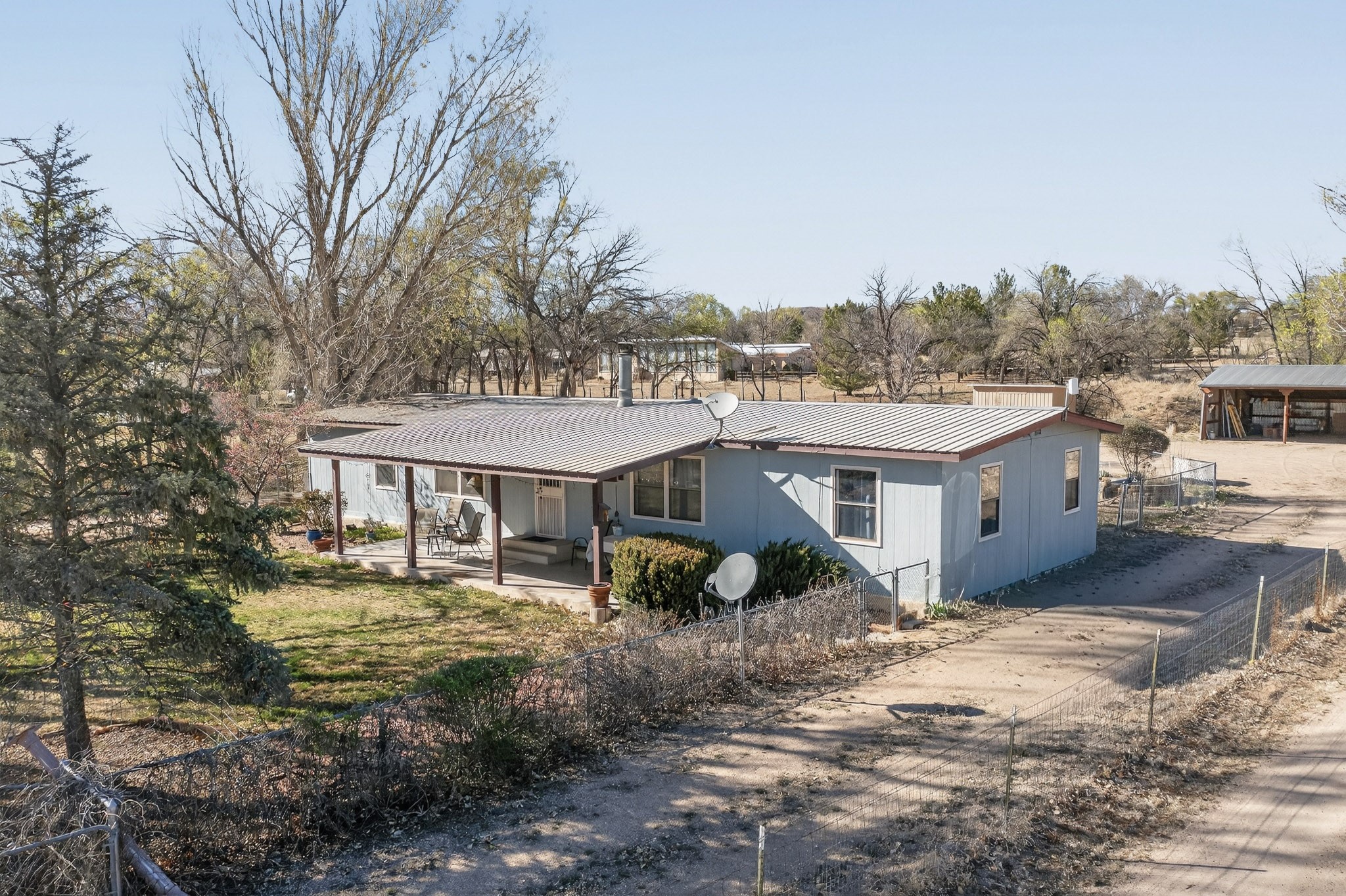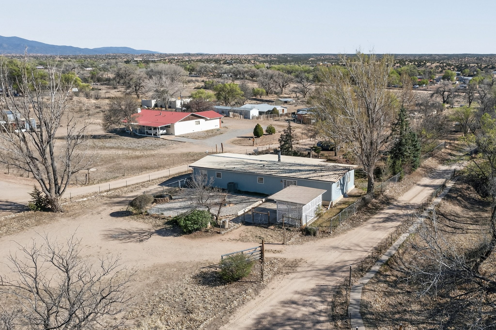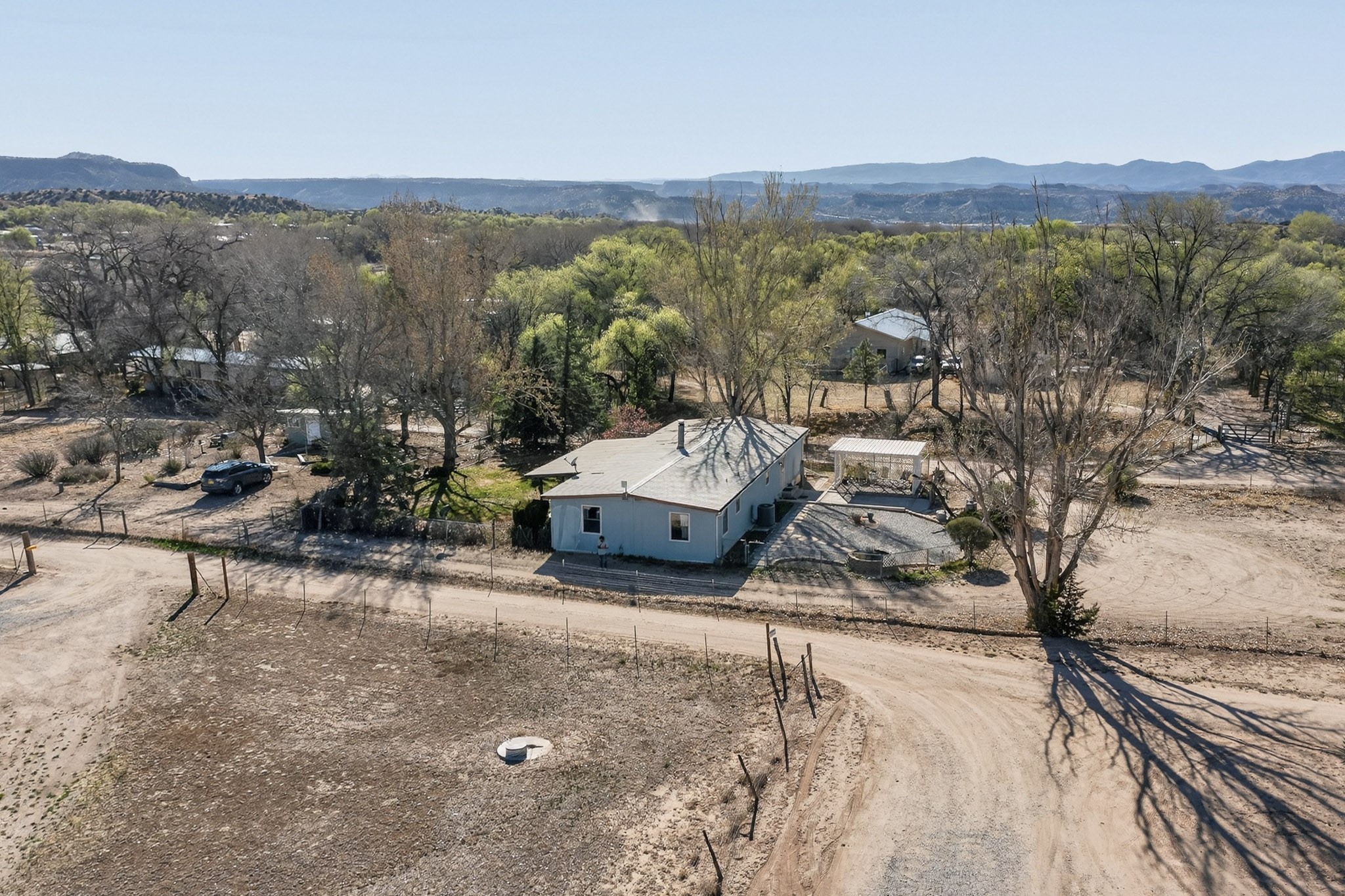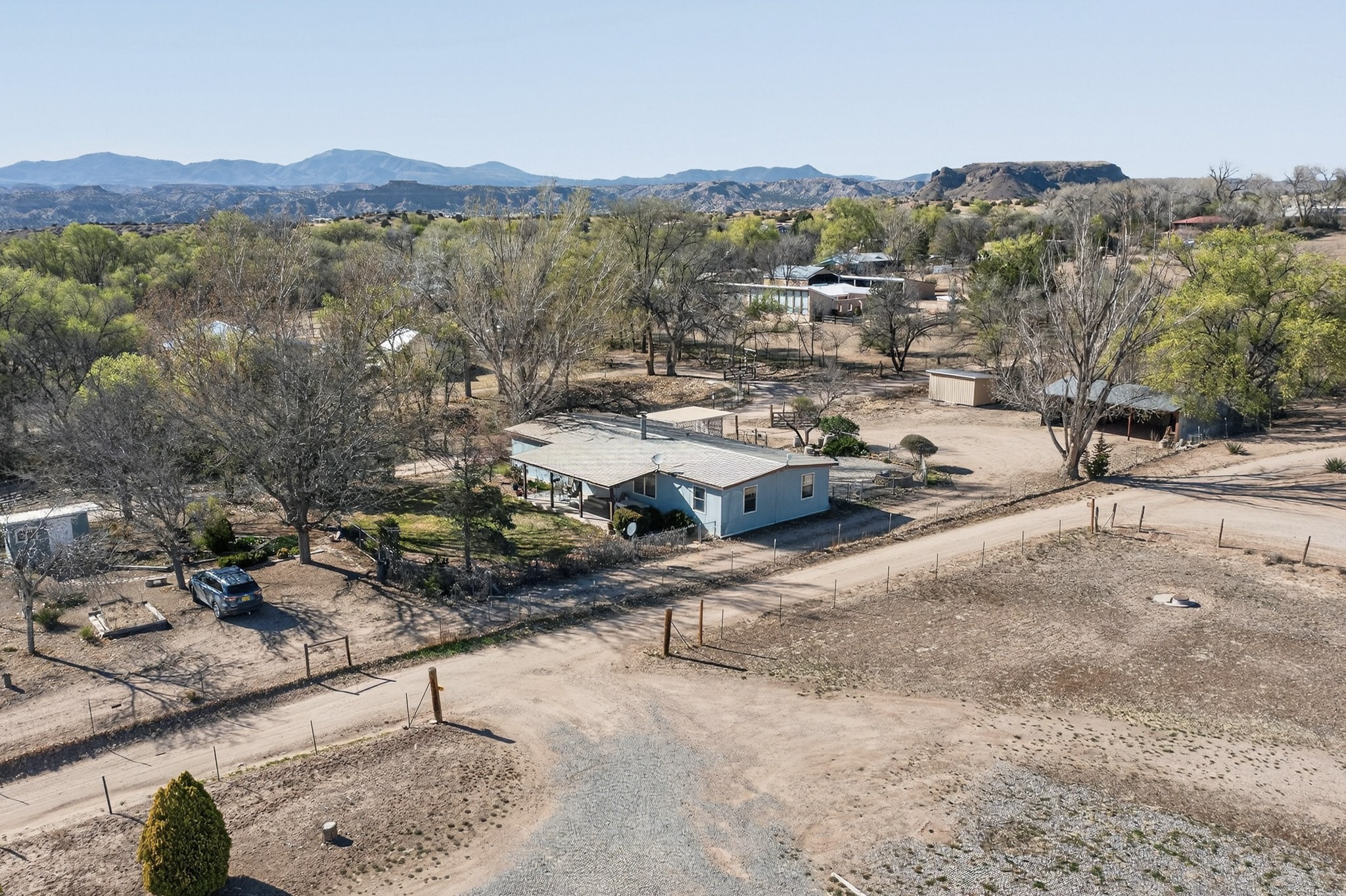 The property has undergone a total, high-quality, remodel, including: Gourmet Kitchen & Designer Bathrooms: Complete tear-out and redesign featuring custom cabinetry, new plumbing, and brand-new, energy-efficient appliances. Refined Interior Finishes: New durable flooring throughout and unique plank ceilings for a rustic sophisticated look. Brand New Mechanical Systems: Installation of a high-efficiency heat pump/AC unit, a significant electrical system upgrade, and a fully renewed private well system (new pump and tank) for reliable water. Outdoor amenities are designed for privacy and utility, featuring: A fully fenced, usable parcel for a secure retreat. Attractive xeriscaping, an inviting sitting area, and a convenient three-bay carport. A large back porch ideal for entertaining/relaxation and mature landscaping. Ample space and a renewed well system perfectly suited for self-sufficiency, including expansive gardening, fruit trees, or small farm animals. Valuable outbuildings for storage, a dedicated workshop, or creative space. The home boasts a prime commuter location, offering quick, easy access to major Northern New Mexico hubs like Santa Fe, Los Alamos, and Espaola. It is presented as a rare opportunity combining luxury upgrades, practical rural utility, and a convenient commute.