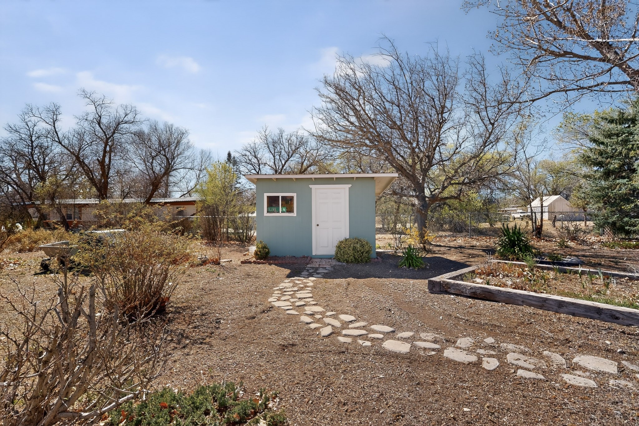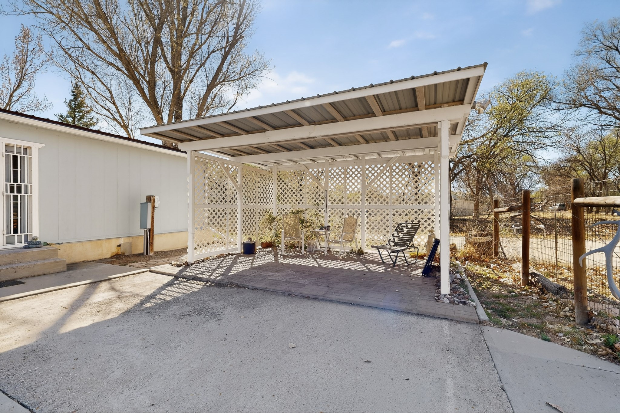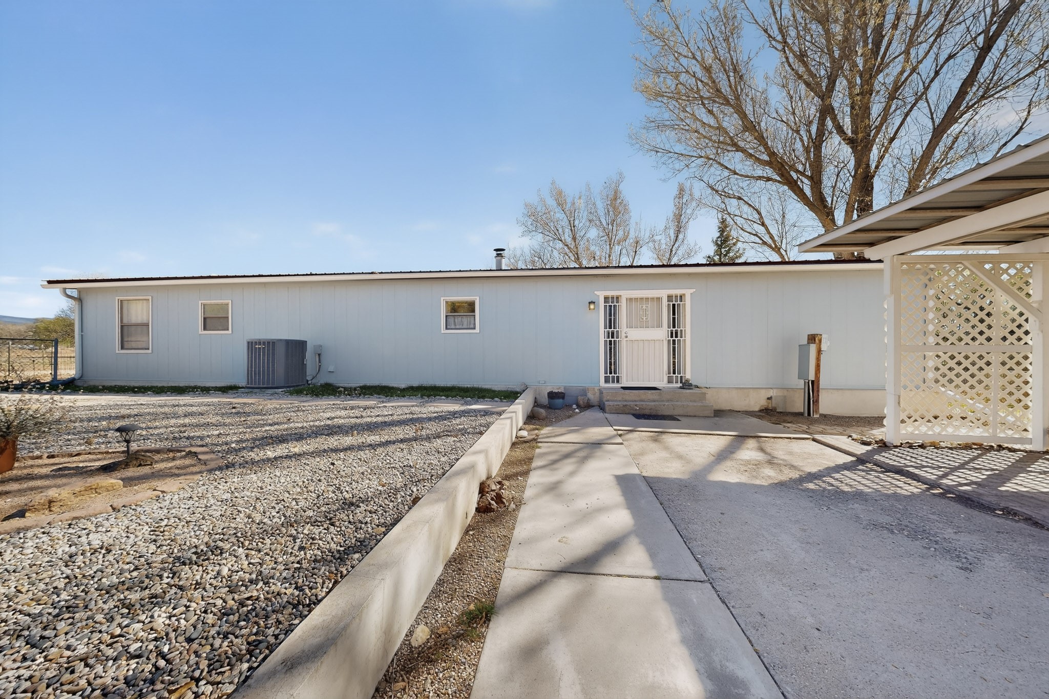 The property has undergone a total, high-quality, remodel, including: Gourmet Kitchen & Designer Bathrooms: Complete tear-out and redesign featuring custom cabinetry, new plumbing, and brand-new, energy-efficient appliances. Refined Interior Finishes: New durable flooring throughout and unique plank ceilings for a rustic sophisticated look. Brand New Mechanical Systems: Installation of a high-efficiency heat pump/AC unit, a significant electrical system upgrade, and a fully renewed private well system (new pump and tank) for reliable water. Outdoor amenities are designed for privacy and utility, featuring: A fully fenced, usable parcel for a secure retreat. Attractive xeriscaping, an inviting sitting area, and a convenient three-bay carport. A large back porch ideal for entertaining/relaxation and mature landscaping. Ample space and a renewed well system perfectly suited for self-sufficiency, including expansive gardening, fruit trees, or small farm animals. Valuable outbuildings for storage, a dedicated workshop, or creative space. The home boasts a prime commuter location, offering quick, easy access to major Northern New Mexico hubs like Santa Fe, Los Alamos, and Espaola. It is presented as a rare opportunity combining luxury upgrades, practical rural utility, and a convenient commute.