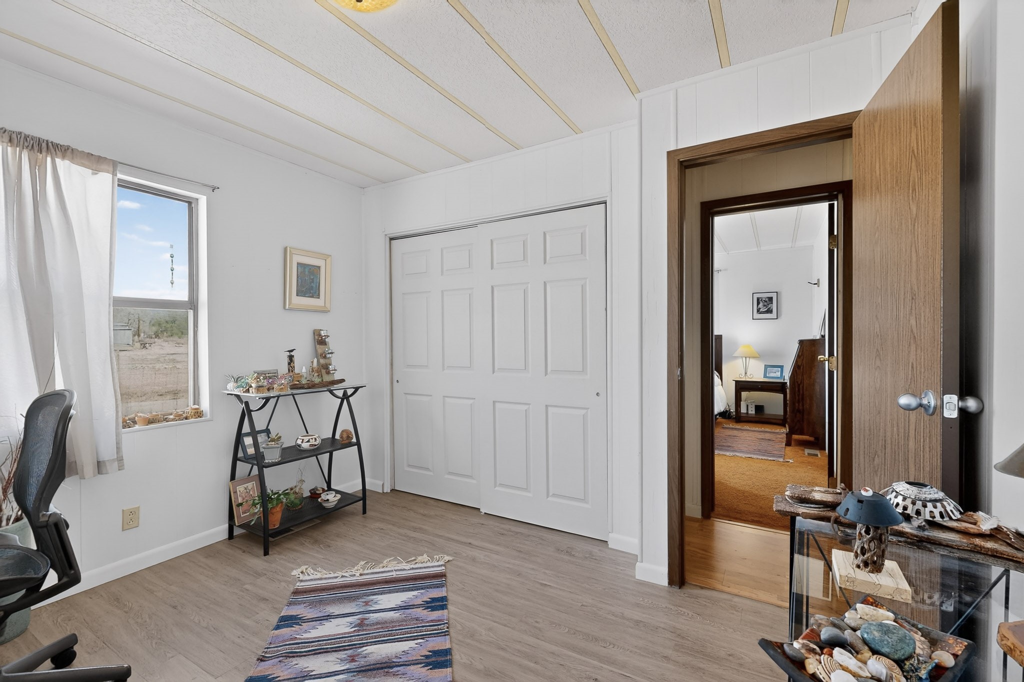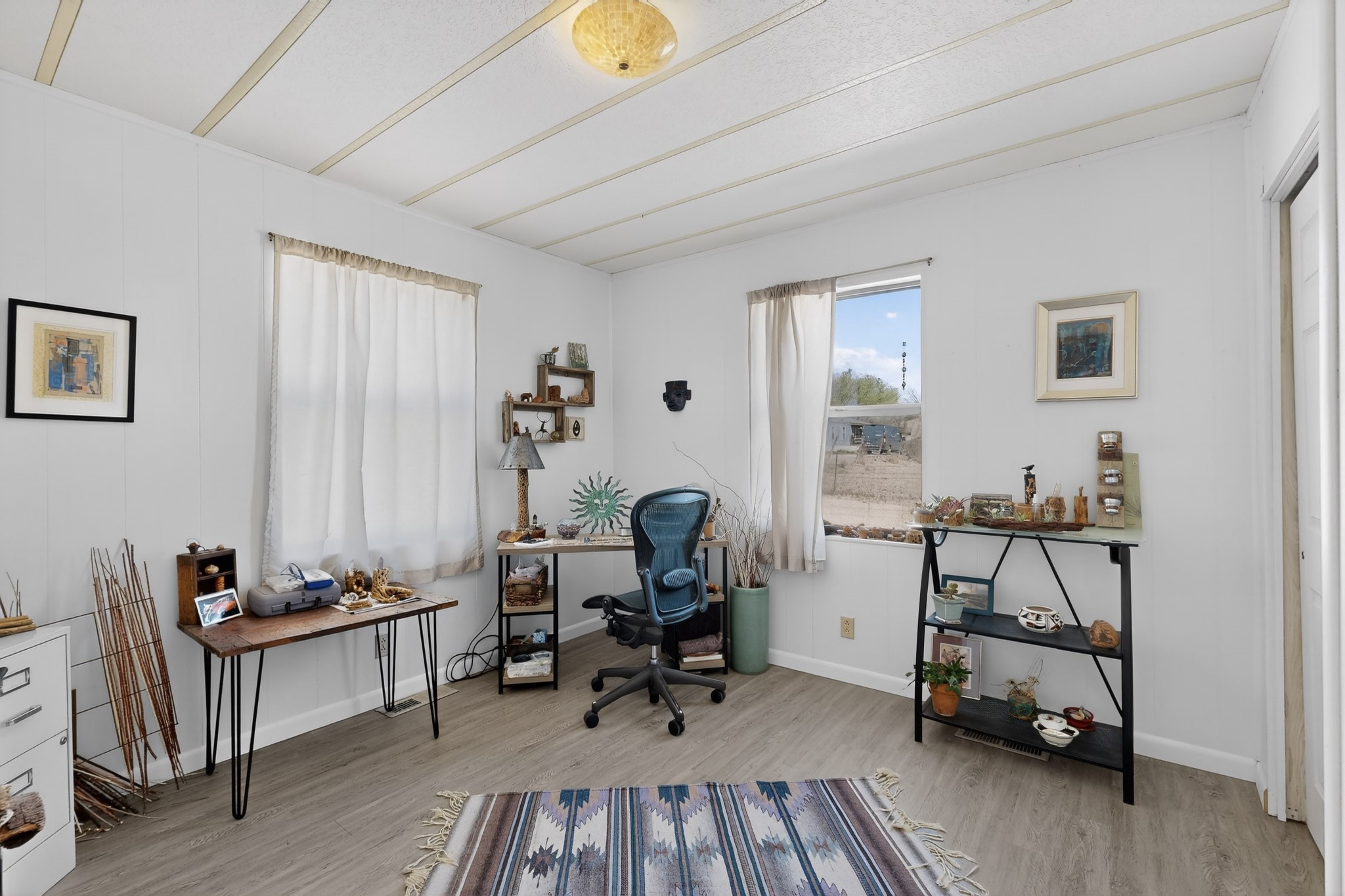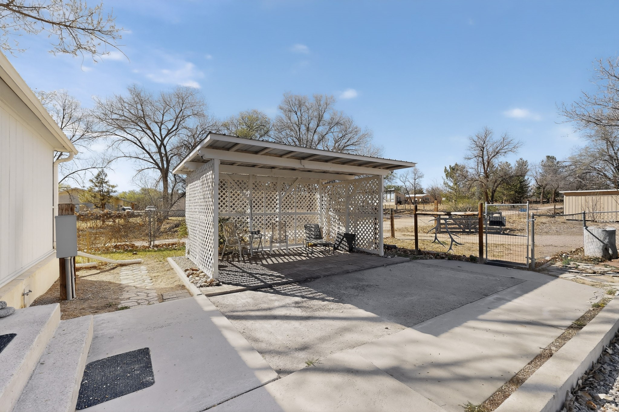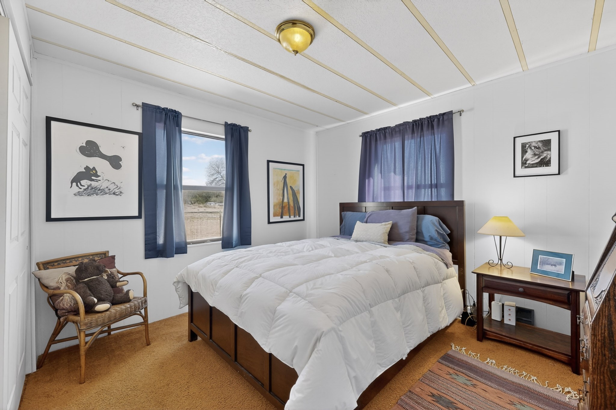 The property has undergone a total, high-quality, remodel, including: Gourmet Kitchen & Designer Bathrooms: Complete tear-out and redesign featuring custom cabinetry, new plumbing, and brand-new, energy-efficient appliances. Refined Interior Finishes: New durable flooring throughout and unique plank ceilings for a rustic sophisticated look. Brand New Mechanical Systems: Installation of a high-efficiency heat pump/AC unit, a significant electrical system upgrade, and a fully renewed private well system (new pump and tank) for reliable water. Outdoor amenities are designed for privacy and utility, featuring: A fully fenced, usable parcel for a secure retreat. Attractive xeriscaping, an inviting sitting area, and a convenient three-bay carport. A large back porch ideal for entertaining/relaxation and mature landscaping. Ample space and a renewed well system perfectly suited for self-sufficiency, including expansive gardening, fruit trees, or small farm animals. Valuable outbuildings for storage, a dedicated workshop, or creative space. The home boasts a prime commuter location, offering quick, easy access to major Northern New Mexico hubs like Santa Fe, Los Alamos, and Espaola. It is presented as a rare opportunity combining luxury upgrades, practical rural utility, and a convenient commute.