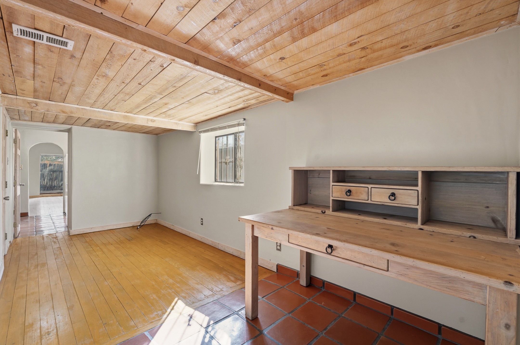 Located on coveted Don Felix Street in Santa Fe's vibrant Railyard District, this charming 1,124 sq. ft. condominium offers a wonderful blend of classic Santa Fe character and flexible living.A welcoming front courtyard sets the stage for the inviting interior. Inside, wood flooring, beamed ceilings, and graceful arches create a warm, authentic Southwestern feel throughout. The light-filled kitchen opens to the living areas, providing an easy flow for both everyday living and entertaining.This one-bedroom, two-bath residence includes a versatile office or flex room that has been used as an additional bedroom, offering flexibility for guests or work-from-home needs. The spacious primary suite features a large walk-in closet and a full bath, creating a comfortable and private retreat.Ideally located within walking distance to the Railyard District, galleries, restaurants, and the Santa Fe Plaza, Unit A offers an exceptional opportunity to enjoy the best of Santa Fe living.
