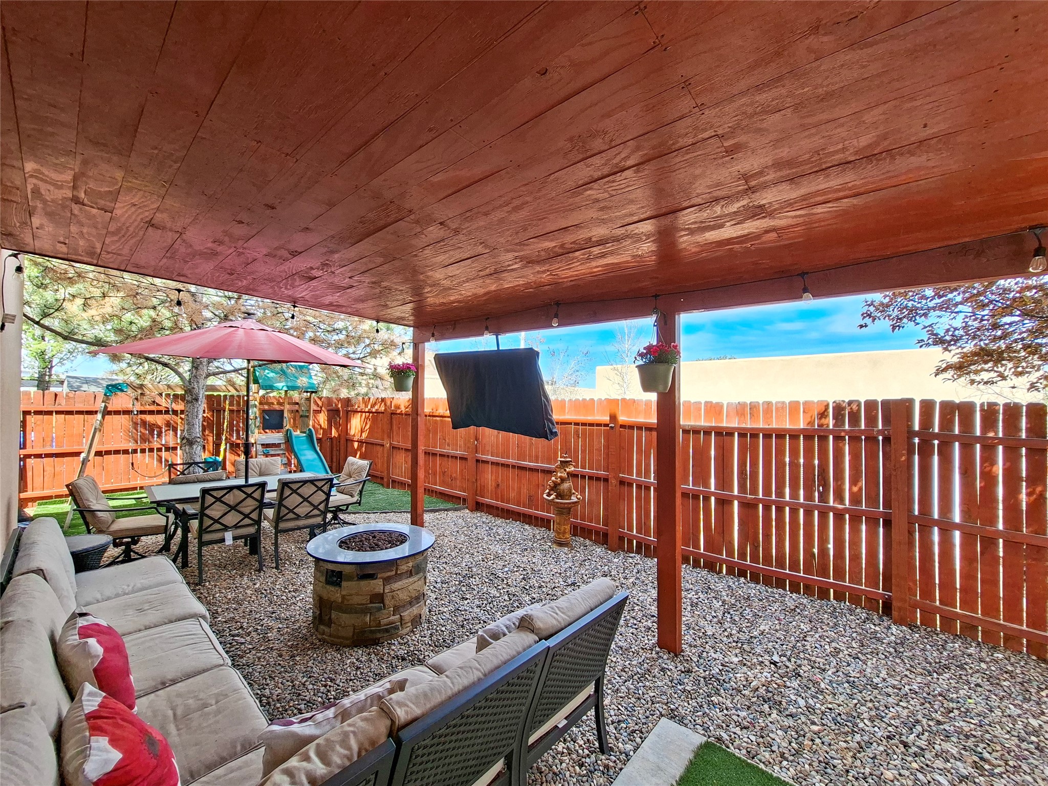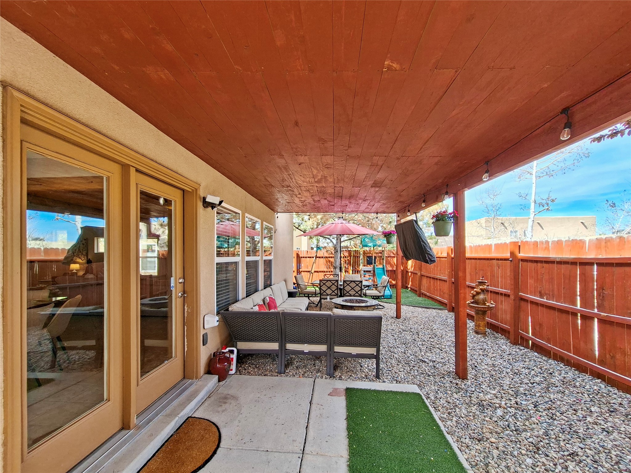 Stunning former model home offering timeless features and upgrades. The living areas are accentuated by a cozy fireplace, vigas, and high ceilings that flow to a large back portal. Entertaining is a breeze with an upgraded kitchen which includes a double oven and plenty of space to cook. This spacious residence features three bedrooms, three bathrooms, and generous, light-filled rooms. A rare four car garage is fully finished with heating and cooling: ideal for cars, a workshop, or hobby space. The primary suite is a tranquil retreat and boasts a fireplace, ample closet space, and large en-suite bath. Thoughtfully maintained and move-in ready, this home pairs timeless architectural details with everyday functionality that is perfect for buyers seeking space, style, and comfort.