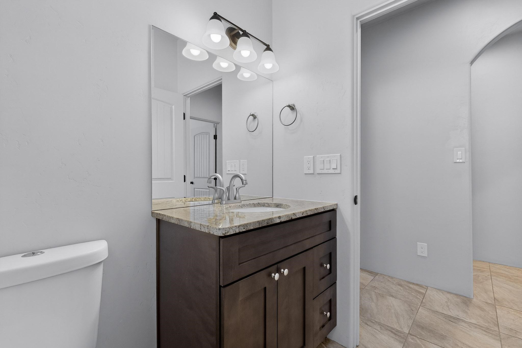 Completed in the spring of 2020, this beautifully crafted home in Santa Fe's serene Casas Bonitas neighborhood is the one you've been waiting for. With 1,577 square feet of thoughtfully designed living space, three spacious bedrooms, and two beautifully appointed bathrooms, this home checks every box. From the moment you step through the inviting entryway, you'll feel it - light, airy, and welcoming. The kitchen offers modern cabinetry, sleek granite countertops, and stainless steel appliances which come together to create a space that's as functional as it is beautiful. Retreat to the generous primary suite with its spacious walk-in closet and an en-suite bath featuring double sinks, granite countertops, and a custom-tiled shower. The split floor plan offers ideal separation between the primary suite and the two additional bedrooms, giving everyone their own sense of privacy and space. Energy-efficient heating and refrigerated air conditioning keep you comfortable through every season. Commuters will love the location -- with quick, easy access to Highway 599 and I-25, you're connected to Los Alamos, Albuquerque, and everything in between without sacrificing the quiet neighborhood feel. Come see it for yourself.