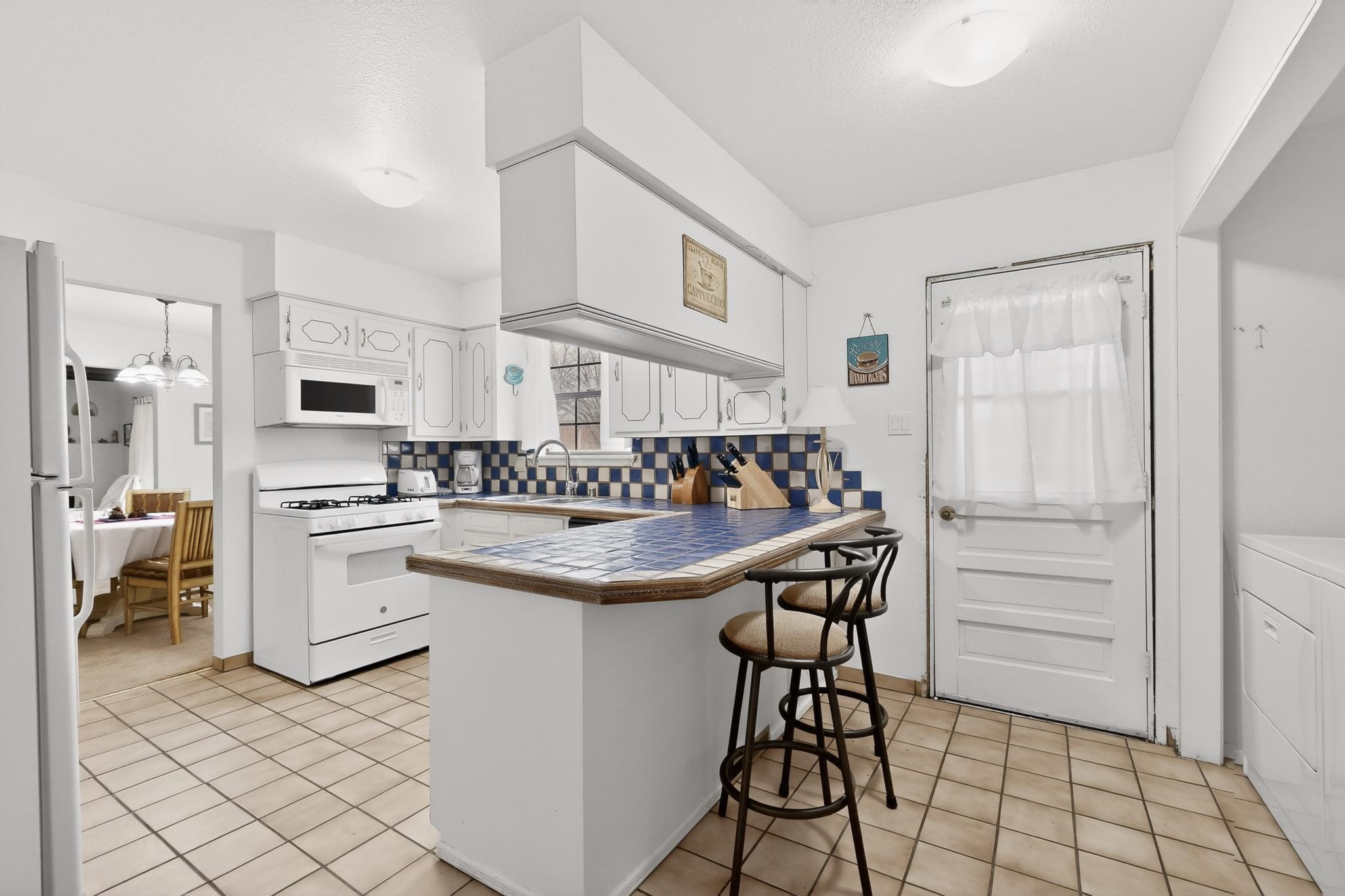 Spacious single level home on large 1/3rd acre corner location in well established Via Caballero II subdivision. This contemporary pueblo style 3 bedroom, 2 bath home features a large living room and a secondary family room with a corner kiva fireplace for cosy winters. There is a formal dining room, a breakfast bar and nook in the country kitchen, and a patio door leading out to the portal and garden ideal for summer and winter entertaining. The main bedroom suite is separated from the guest bedrooms by a hallway for privacy. One of the guest bedrooms was set up for an office. The home has some interior popcorn ceilings that may contain some asbestos which was customarily used at the time of construction. A large 2 car garage also includes a separate boiler for heat-condition unknown, and plenty of storage. There is also a precautionary lead paint addendum although the home was built later than 1978. This home has been much loved and is waiting for a new owner to bring it up to date and to it's former glory.