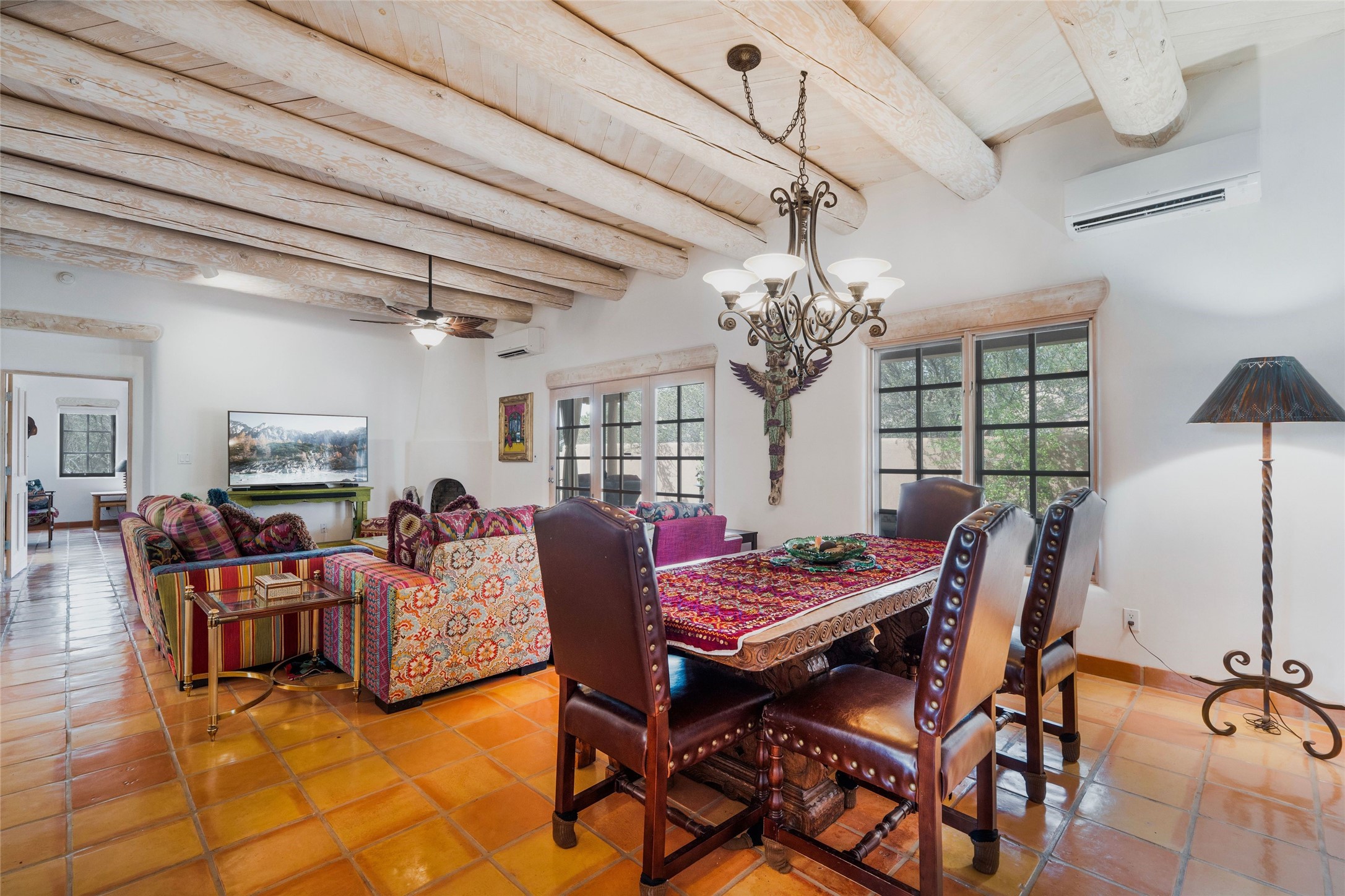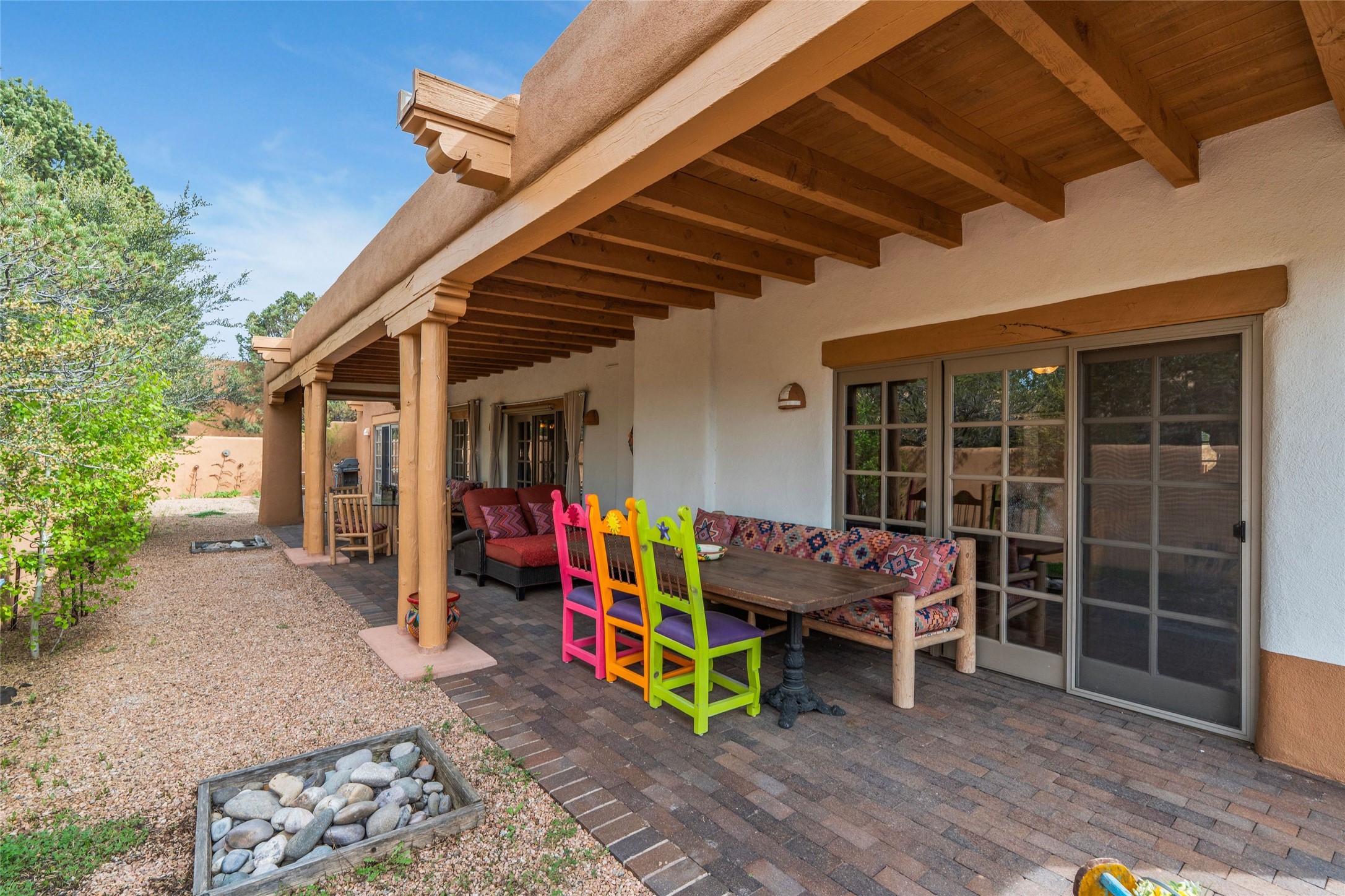 Nestled within Santa Fe's premier boutique golf community, Quail Run, this highly sought-after 2,245 sq ft single-level detached condo offers an exceptional blend of comfort, style and thoughtful design. Featuring 3 bedrooms and 3 baths, this popular floorplan is known for its spacious layout and smart use of space throughout. Authentic Santa Fe style defines the home, complemented by a large back portal-perfect for relaxing or entertaining-set on a desirable corner lot that enhances privacy and natural light. Each room is generously sized, creating an easy, livable flow for both everyday living or hosting guests. Modern conveniences include mini-split systems throughout, providing efficient air conditioning along with an additional source of heat for year round comfort. A standout feature is the versatile second bedroom, complete with an in-room kitchenette ideal for guests, extended stays or flexible living needs. Home ownership at Quail Run includes all of its fabulous amenities: 24 hour hosted security, engaging 9 hole golf course, delightful restaurant, impeccable grounds, state of the art workout areas and indoor pool and spa, scenic 1 3/4 mile walking path, quality fitness classes, pickleball and tennis and much more. Come and see!