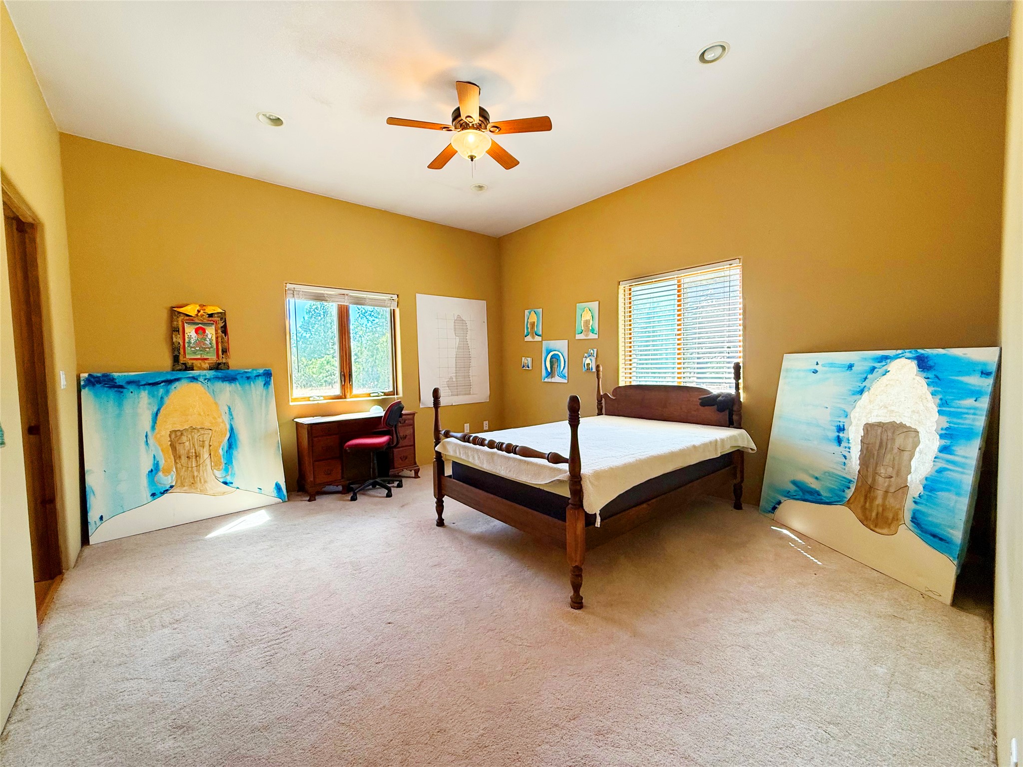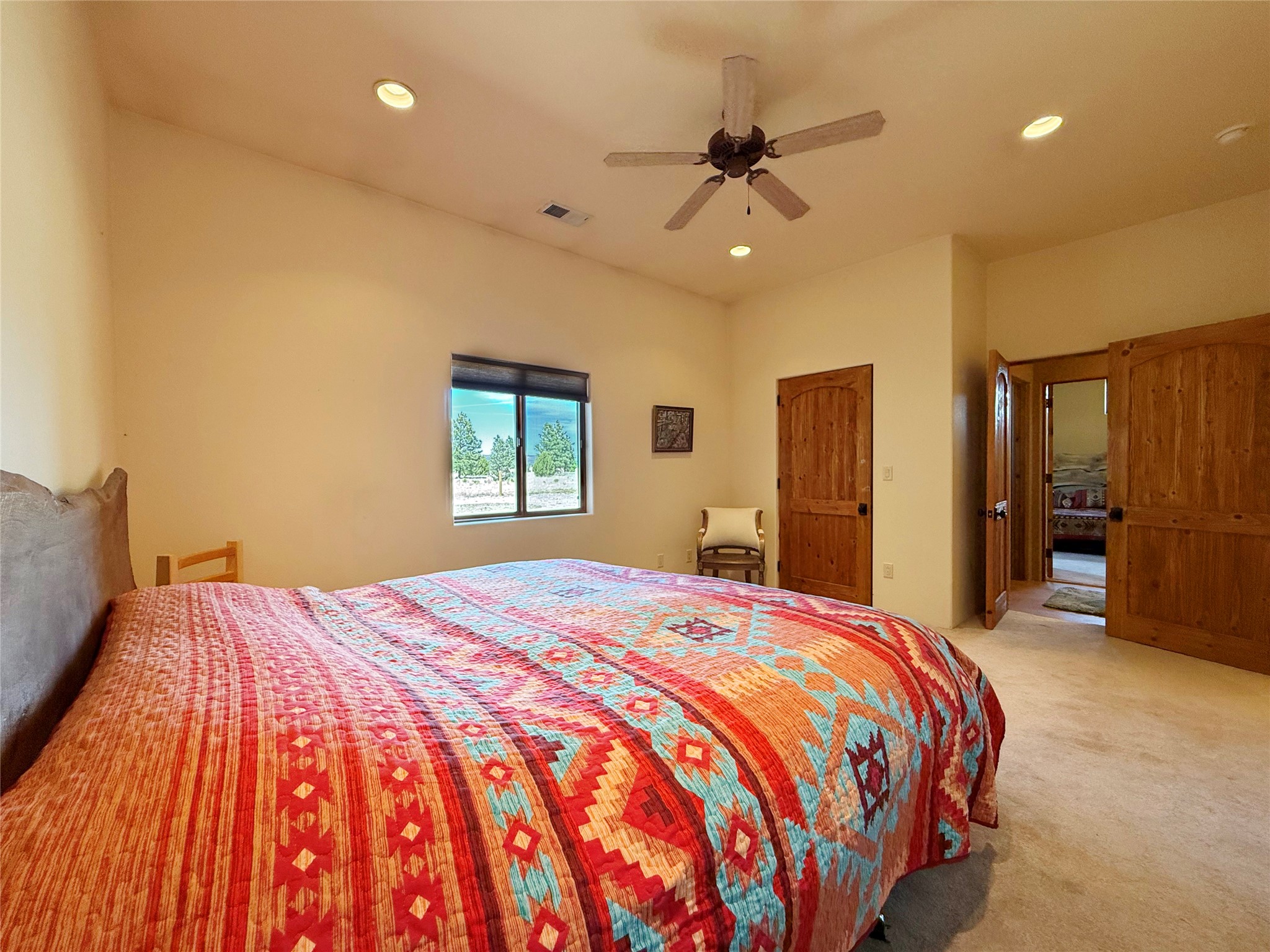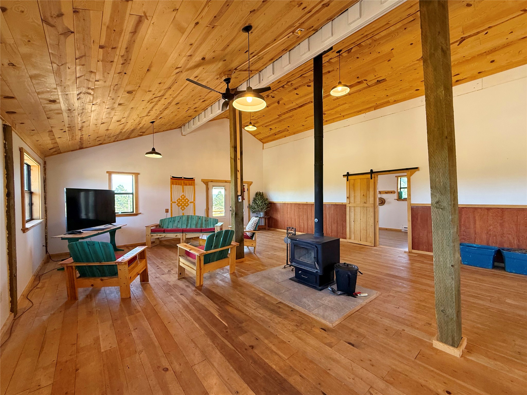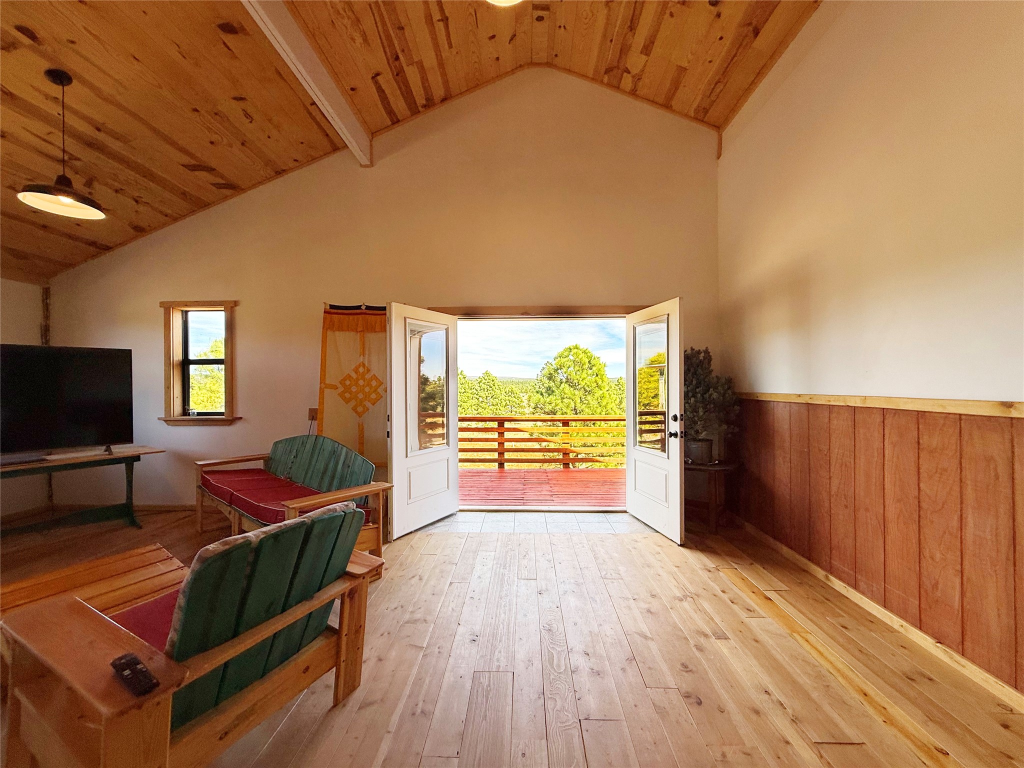 Tara Ranch is a substantially built Northern New Mexico ranch property offering privacy, scale, and exceptional equestrian improvements on 20 fully fenced, mostly flat acres. From the gated entrance, a beautiful quarter-mile private driveway leads to the 3,400+square-foot main home and the impressive barn. Built in 2006, the one-level home features 12-foot ceilings, diamond-finish walls, arches, and large beams throughout, creating a spacious feel with oversized rooms and generous living areas. The open main living, dining, and kitchen spaces take in magnificent views and connect easily to a covered portal for outdoor dining, grilling, and enjoying the landscape. The chef's kitchen is well equipped with two ovens, a large gas cooktop with griddle, two sinks, wild stone granite counters, stainless steel appliances, large pantry, and abundant cabinetry. The layout is practical and comfortable, with the primary suite, office or media room, and one guest bedroom on the west wing, while two additional bedrooms and a Jack-and-Jill bath are on the east wing. The heated 3+ car garage, radiant floor heat, fenced backyard, updated boiler in 2024, hot water heater in 2022, private well, and water softener add everyday function and value. Completed in 2025, the state-of-the-art 6-stall Barn Pros equestrian facility includes rubber flooring, tack room, workshop, hay storage, wash area, fenced 45x60 corral, RV covered parking, and a 1,600-square-foot apartment above. Surrounded on three sides by a 2,500-acre private ranch, with sweeping Hermit's Peak views and easy access to riding trails, Tara Ranch is well situated for access to Santa Fe and Las Vegas NM.