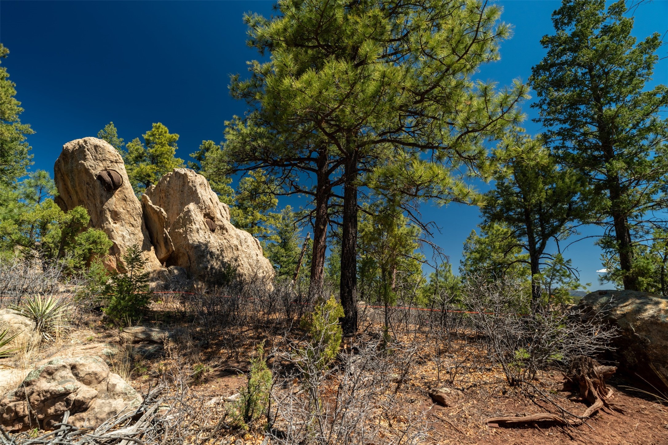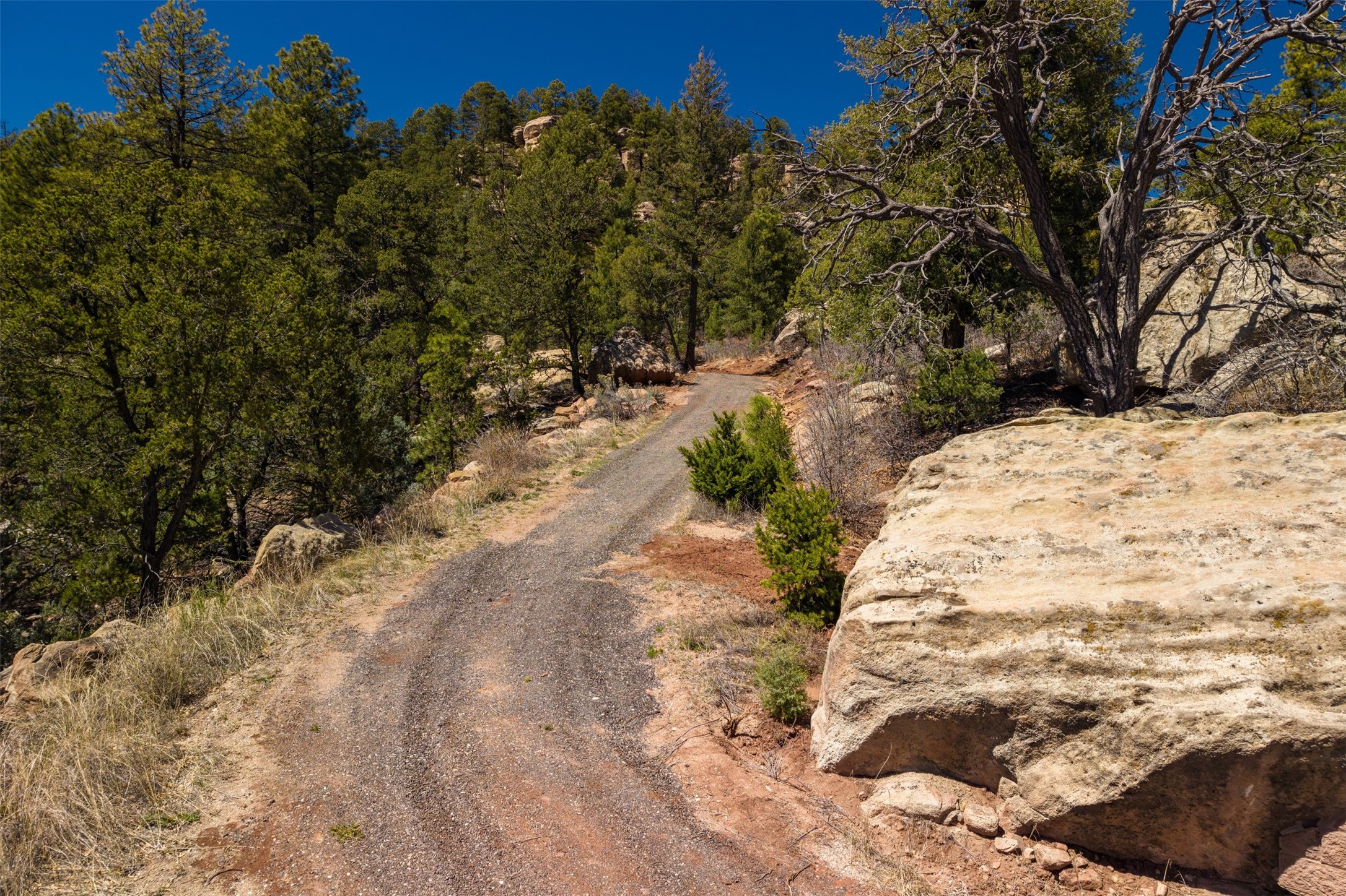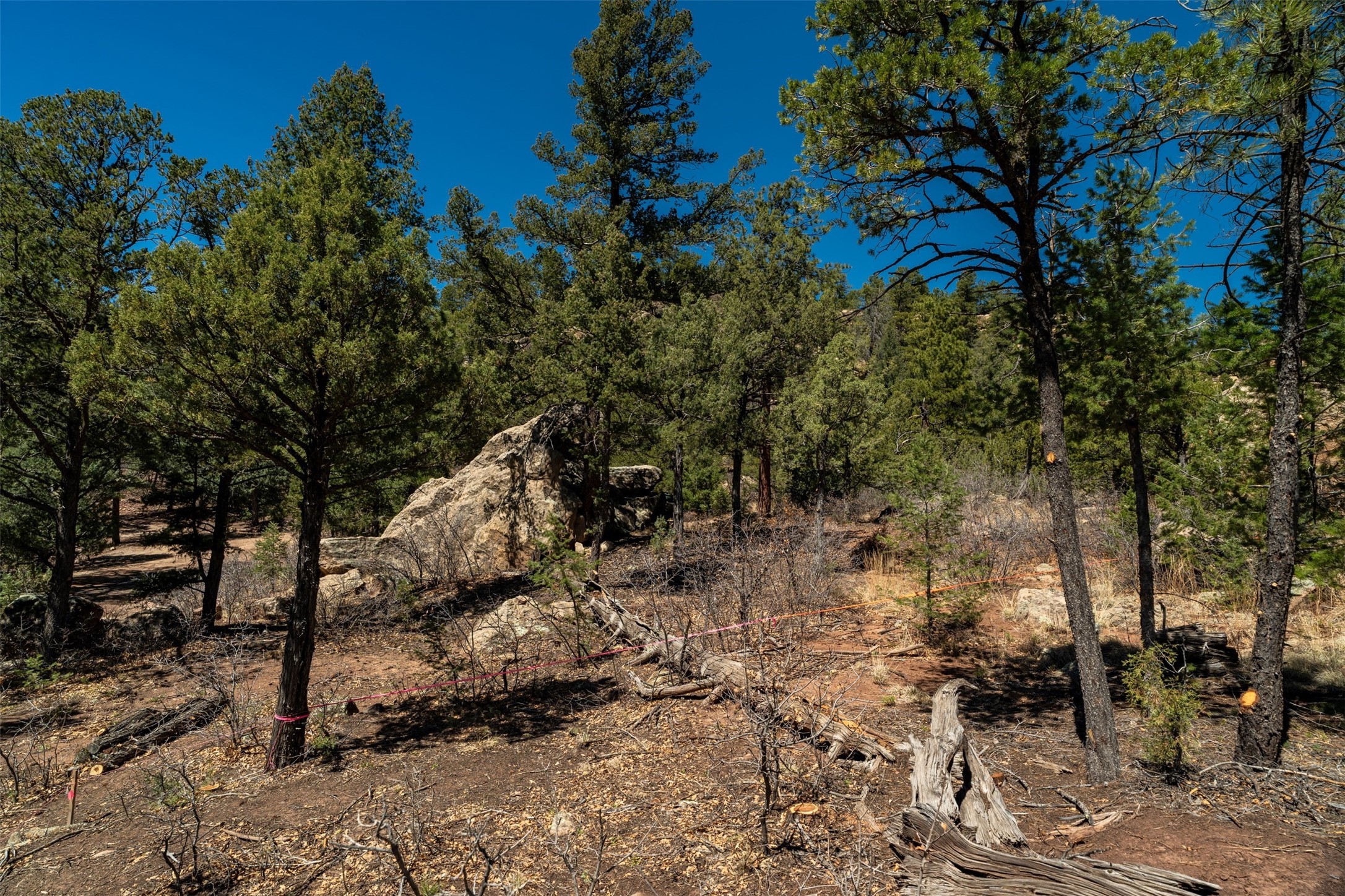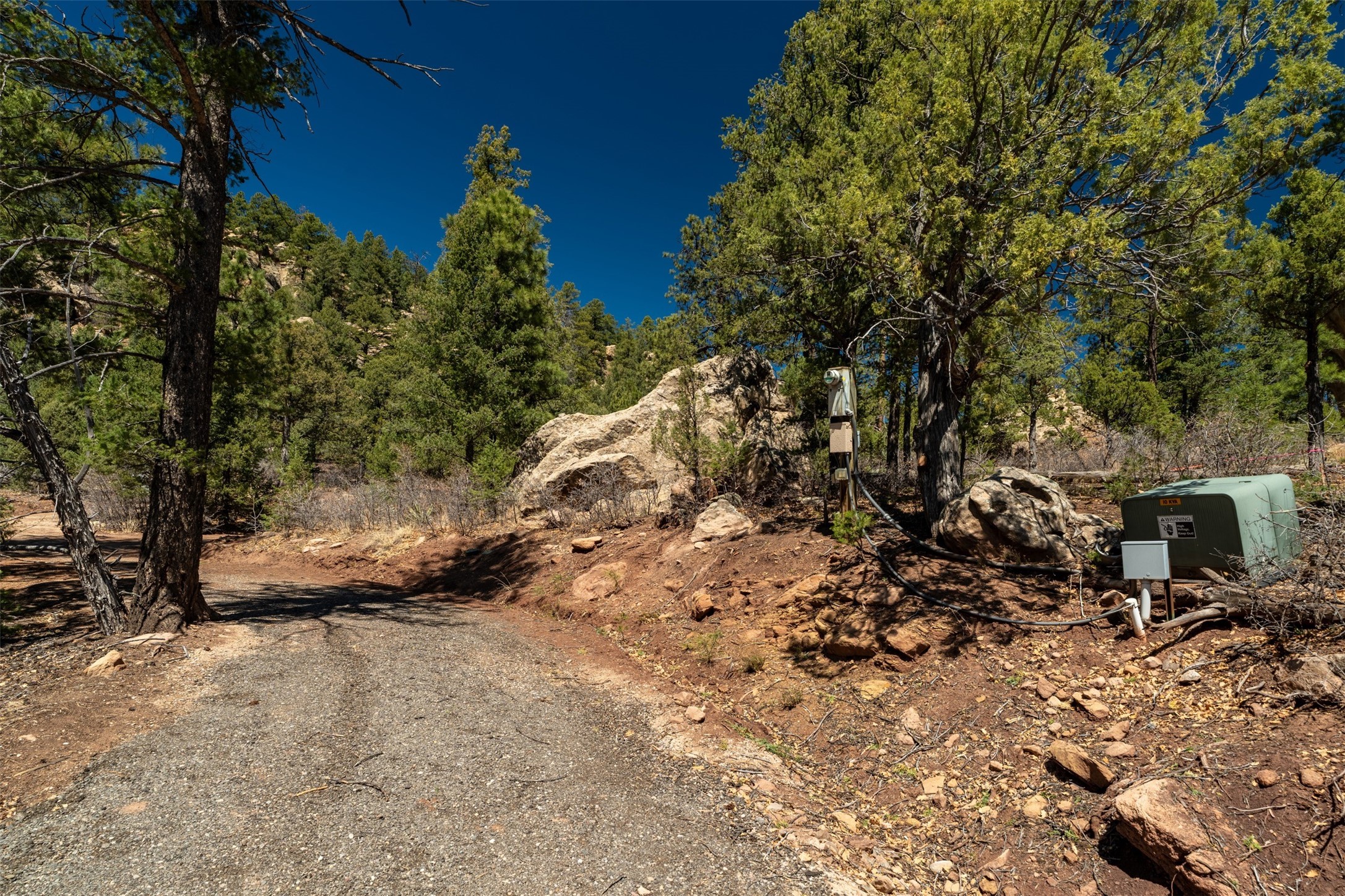 RARE and BEAUTIFUL La Cueva @Glorieta listing, 10+ acres boarded on 2 sides by the Santa Fe National forest. A true destination Treed and Mountain property with underground water and electricity at a building site. There are dramatic and plentiful rock formations. The land is very private and pristine. There are a variety of spots within the 10+ acres for further enhancing, bringing out the views and the serene forest. There is a significant driveway made up of base course and recently surfaced with re-claimed asphalt. Mora San Miguel electric coop meter in place. The lot shares the 500 foot deep well with the adjoining neighbor. There are stunning mountain views of the Pecos Valley and thousands of trees- Ponderosa Pine, Fir, Juniper, oak and spruce. No homeowners association, just County and State regulations. Possible building site to the right at the top entry flagged in red. Seller has pre-approved house plans that he is willing to share. The property is 20 minutes from Santa Fe in desirable La Cueva Valley. A truly wonderful mountain site, primed for a house, waiting for the next step!!l