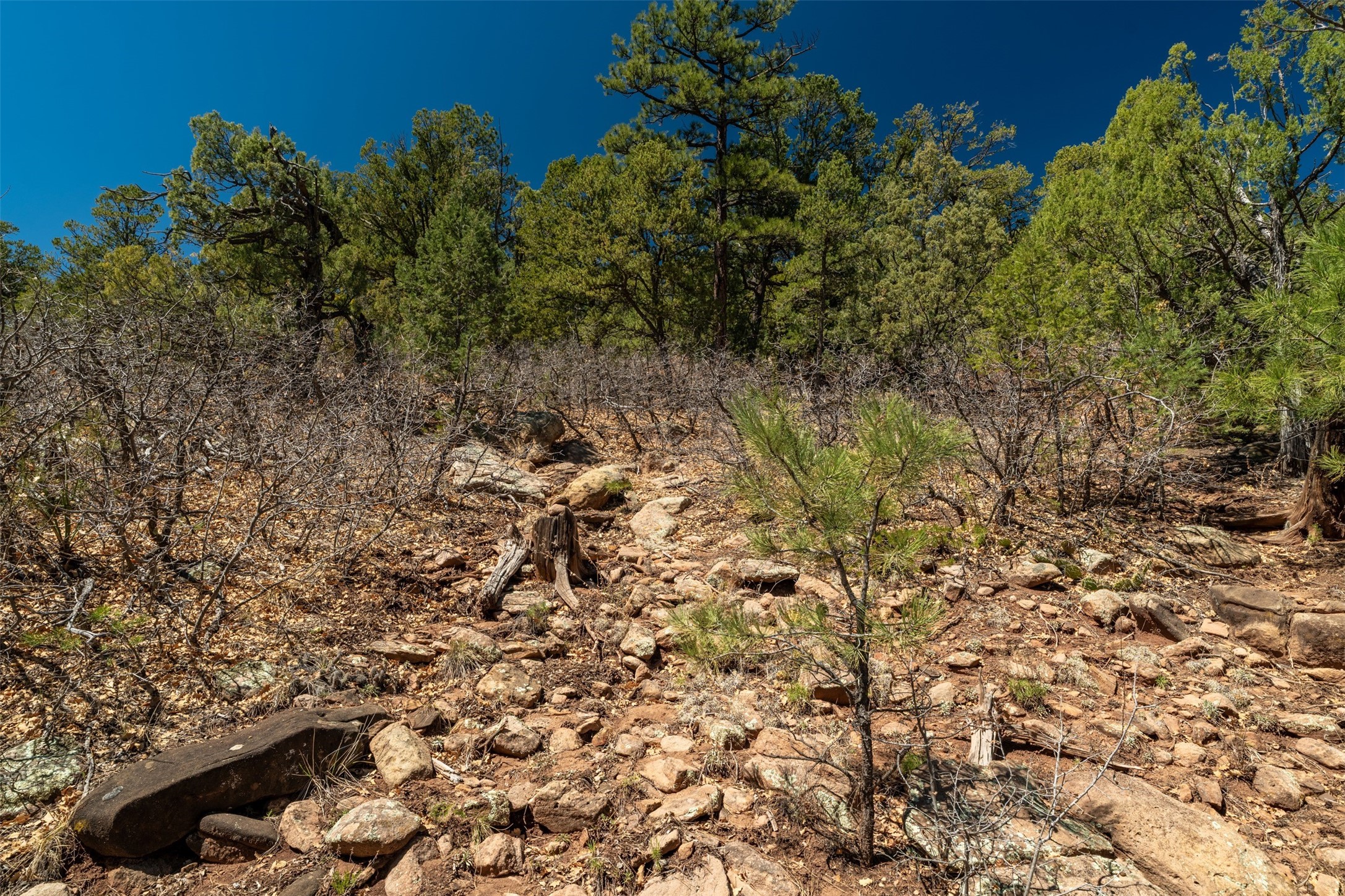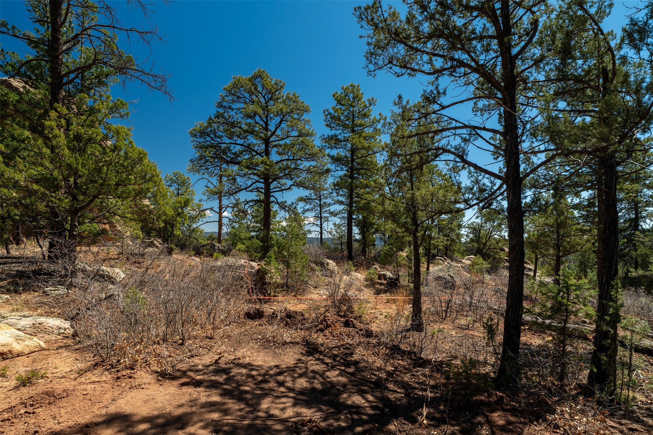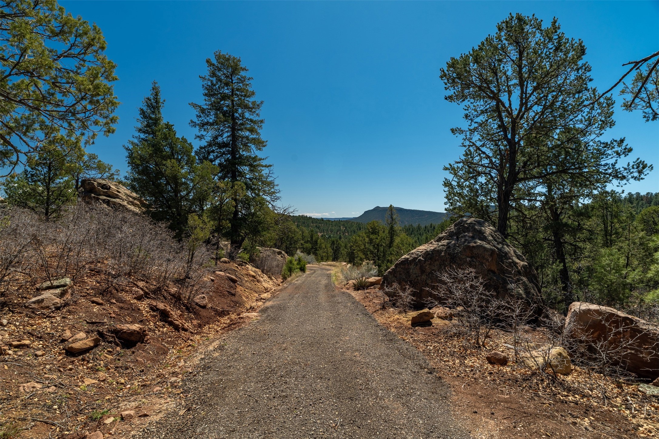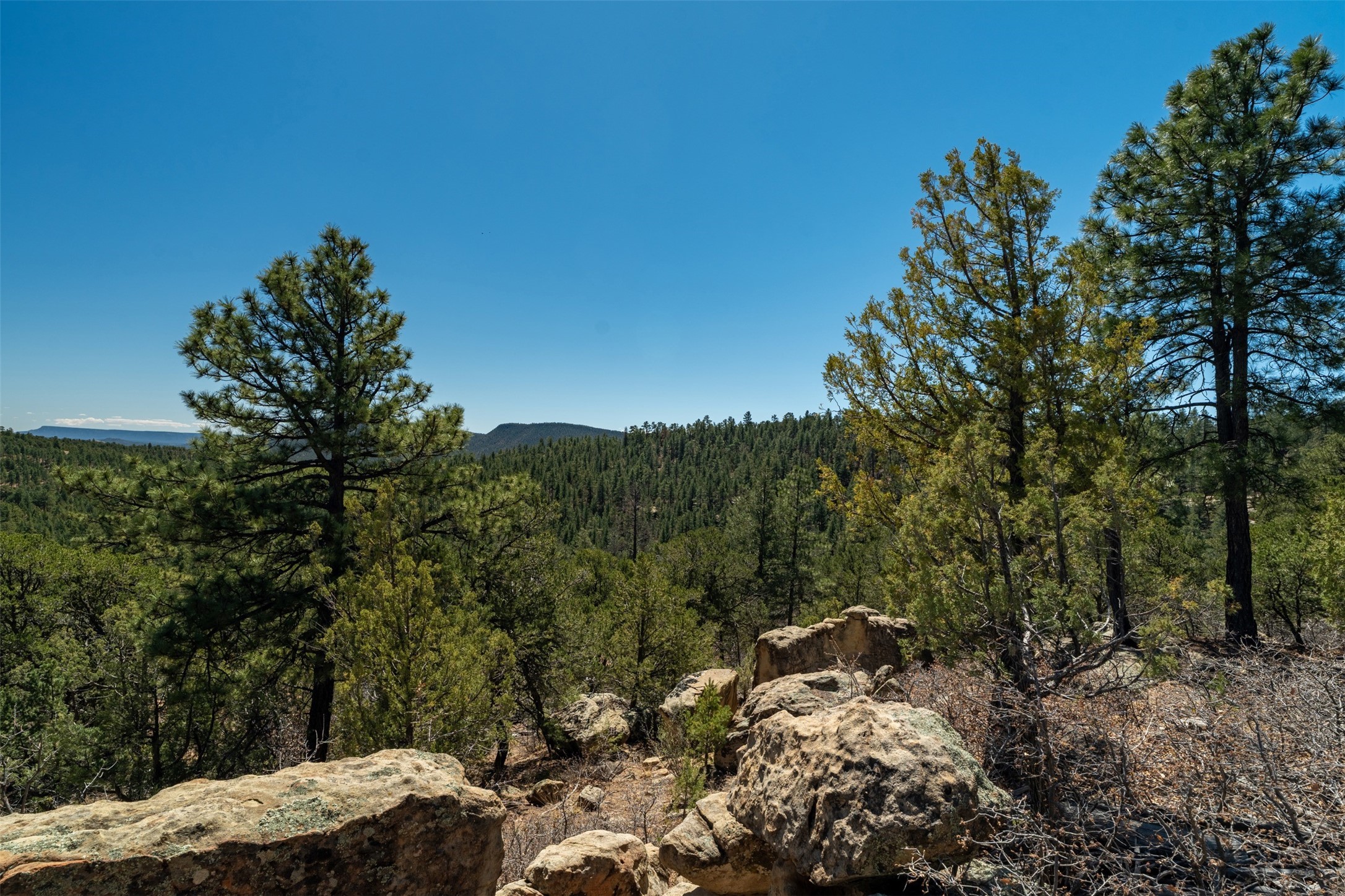 RARE and BEAUTIFUL La Cueva @Glorieta listing, 10+ acres boarded on 2 sides by the Santa Fe National forest. A true destination Treed and Mountain property with underground water and electricity at a building site. There are dramatic and plentiful rock formations. The land is very private and pristine. There are a variety of spots within the 10+ acres for further enhancing, bringing out the views and the serene forest. There is a significant driveway made up of base course and recently surfaced with re-claimed asphalt. Mora San Miguel electric coop meter in place. The lot shares the 500 foot deep well with the adjoining neighbor. There are stunning mountain views of the Pecos Valley and thousands of trees- Ponderosa Pine, Fir, Juniper, oak and spruce. No homeowners association, just County and State regulations. Possible building site to the right at the top entry flagged in red. Seller has pre-approved house plans that he is willing to share. The property is 20 minutes from Santa Fe in desirable La Cueva Valley. A truly wonderful mountain site, primed for a house, waiting for the next step!!l