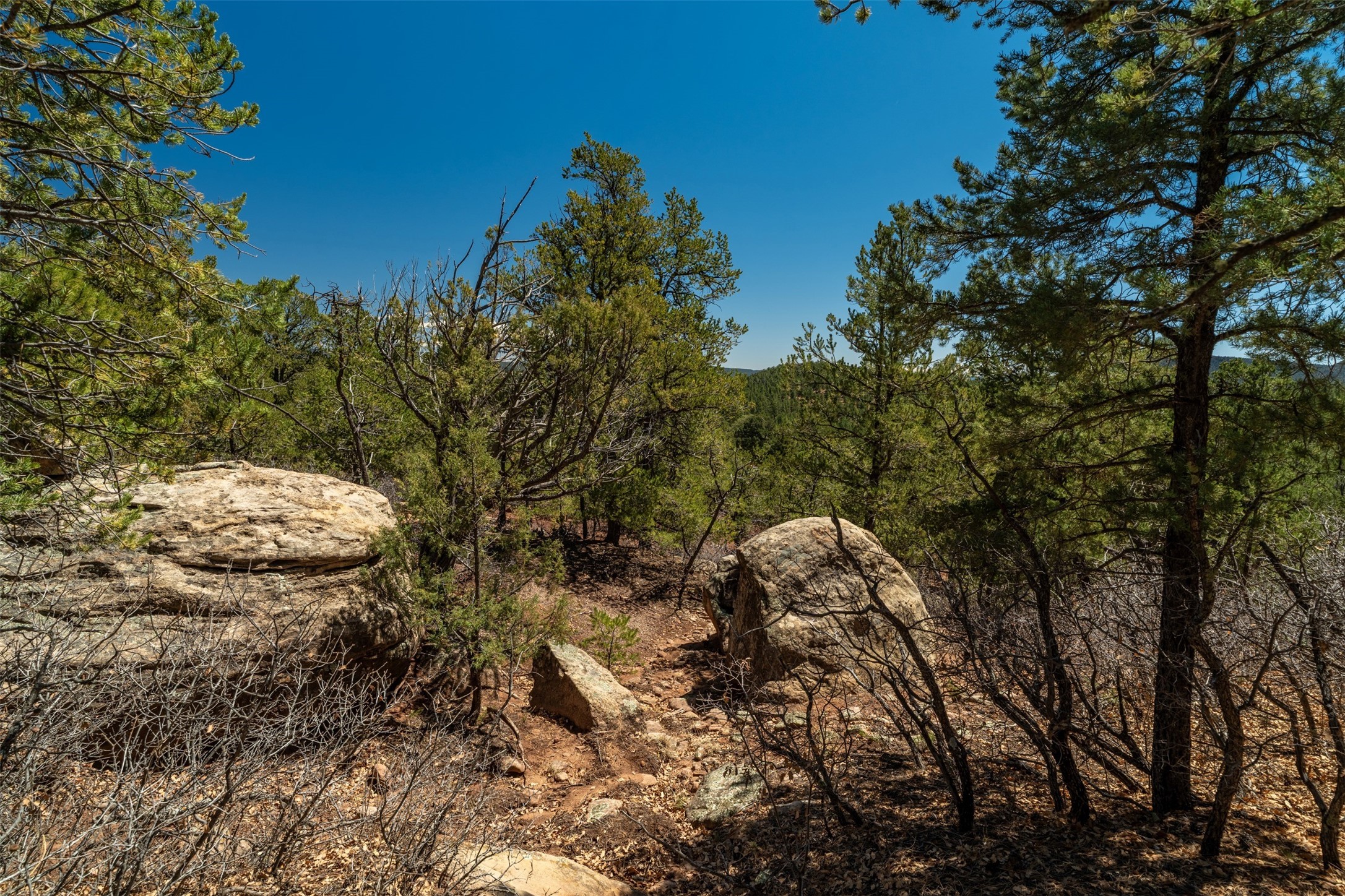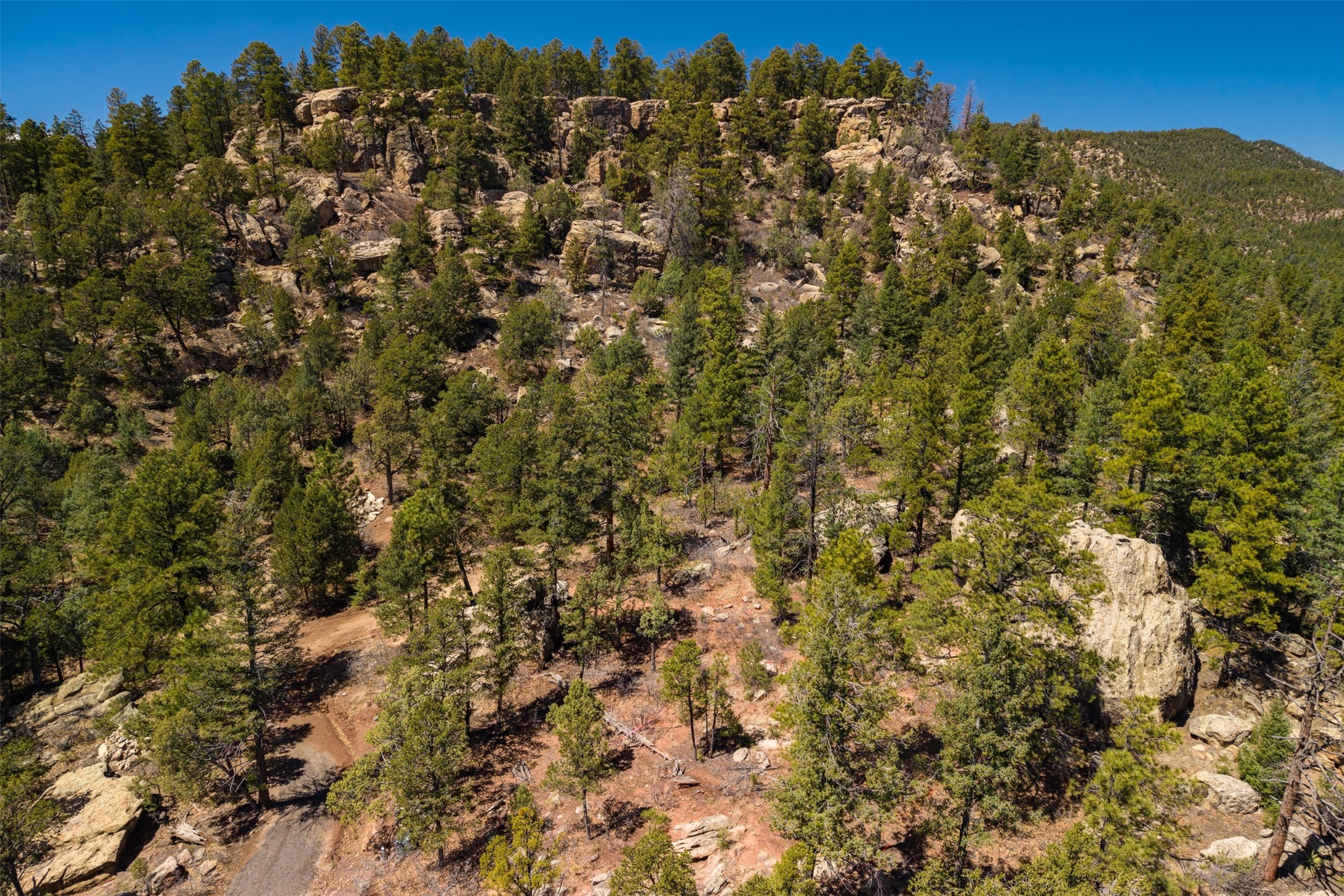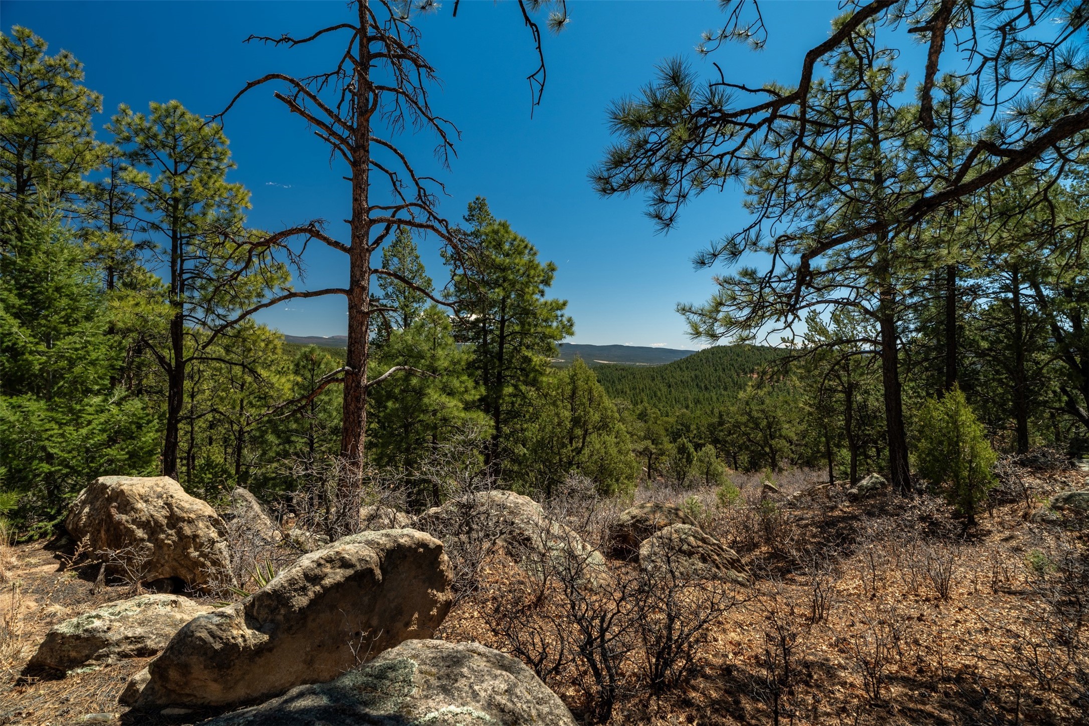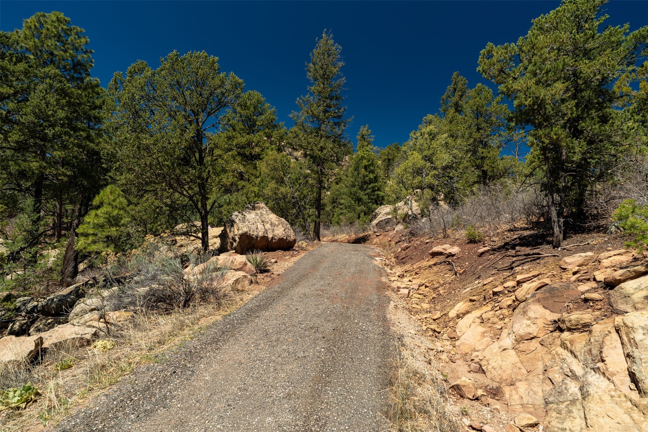 RARE and BEAUTIFUL La Cueva @Glorieta listing, 10+ acres boarded on 2 sides by the Santa Fe National forest. A true destination Treed and Mountain property with underground water and electricity at a building site. There are dramatic and plentiful rock formations. The land is very private and pristine. There are a variety of spots within the 10+ acres for further enhancing, bringing out the views and the serene forest. There is a significant driveway made up of base course and recently surfaced with re-claimed asphalt. Mora San Miguel electric coop meter in place. The lot shares the 500 foot deep well with the adjoining neighbor. There are stunning mountain views of the Pecos Valley and thousands of trees- Ponderosa Pine, Fir, Juniper, oak and spruce. No homeowners association, just County and State regulations. Possible building site to the right at the top entry flagged in red. Seller has pre-approved house plans that he is willing to share. The property is 20 minutes from Santa Fe in desirable La Cueva Valley. A truly wonderful mountain site, primed for a house, waiting for the next step!!l