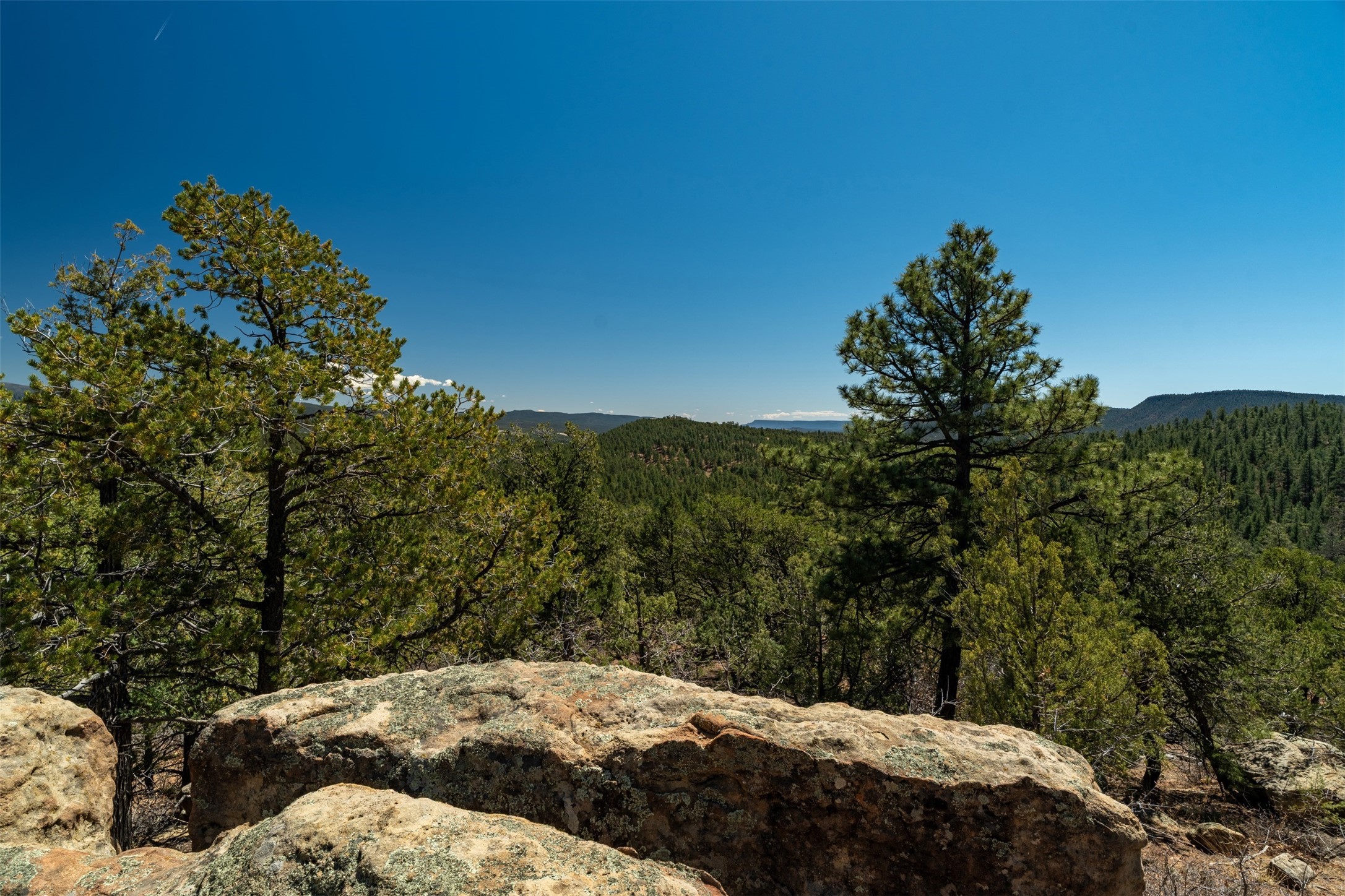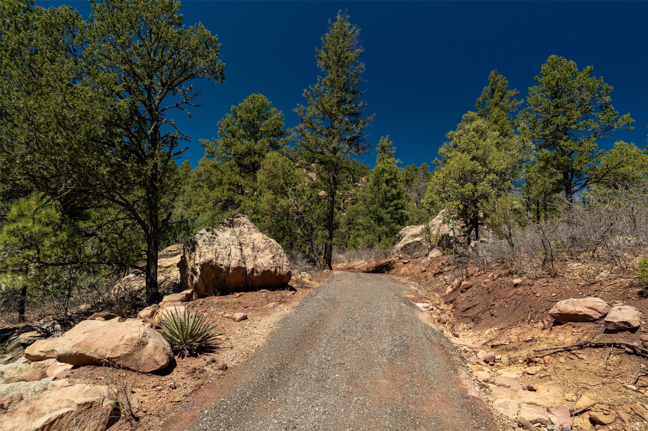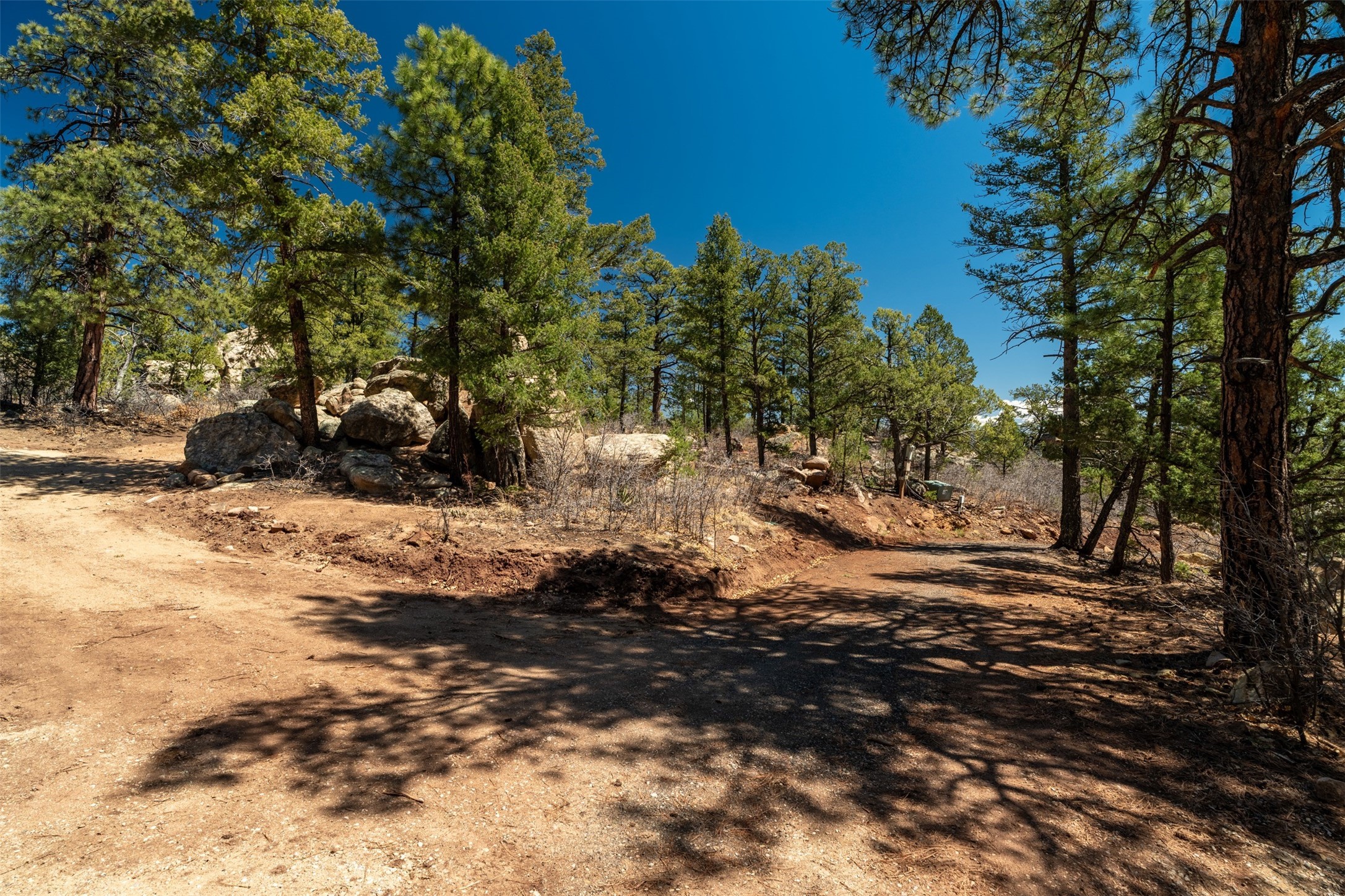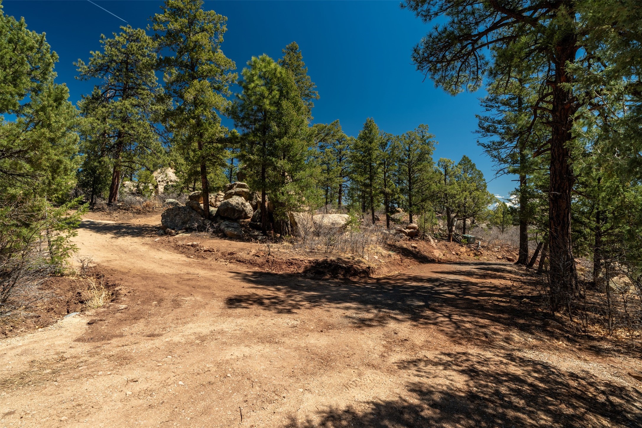 RARE and BEAUTIFUL La Cueva @Glorieta listing, 10+ acres boarded on 2 sides by the Santa Fe National forest. A true destination Treed and Mountain property with underground water and electricity at a building site. There are dramatic and plentiful rock formations. The land is very private and pristine. There are a variety of spots within the 10+ acres for further enhancing, bringing out the views and the serene forest. There is a significant driveway made up of base course and recently surfaced with re-claimed asphalt. Mora San Miguel electric coop meter in place. The lot shares the 500 foot deep well with the adjoining neighbor. There are stunning mountain views of the Pecos Valley and thousands of trees- Ponderosa Pine, Fir, Juniper, oak and spruce. No homeowners association, just County and State regulations. Possible building site to the right at the top entry flagged in red. Seller has pre-approved house plans that he is willing to share. The property is 20 minutes from Santa Fe in desirable La Cueva Valley. A truly wonderful mountain site, primed for a house, waiting for the next step!!l