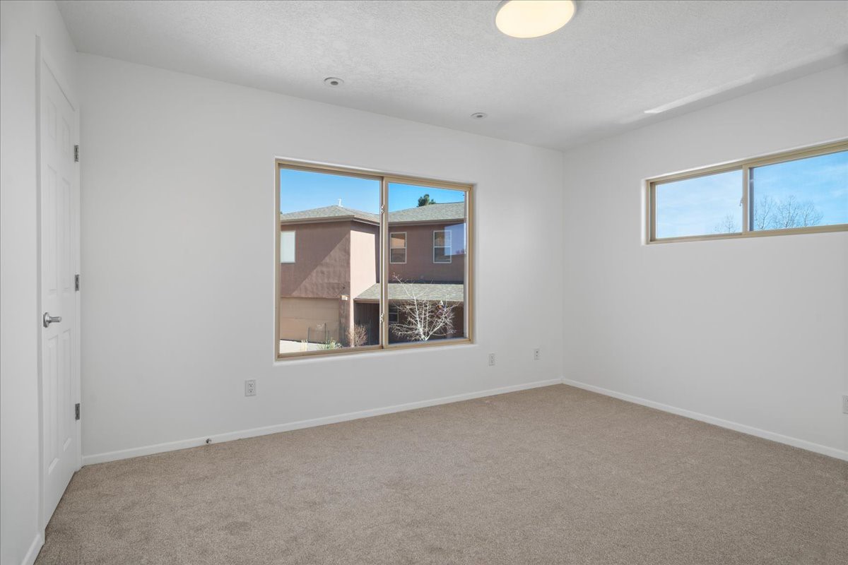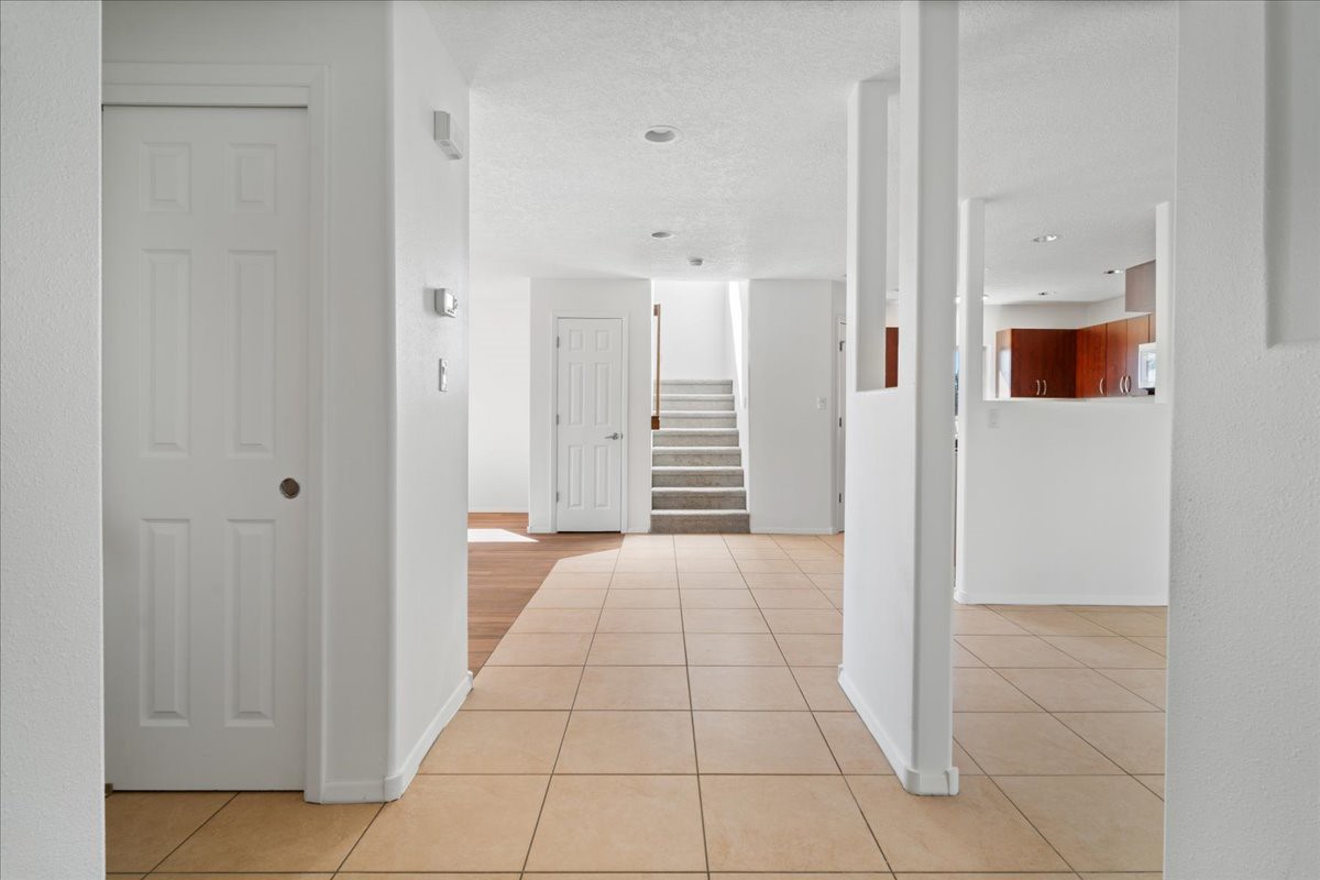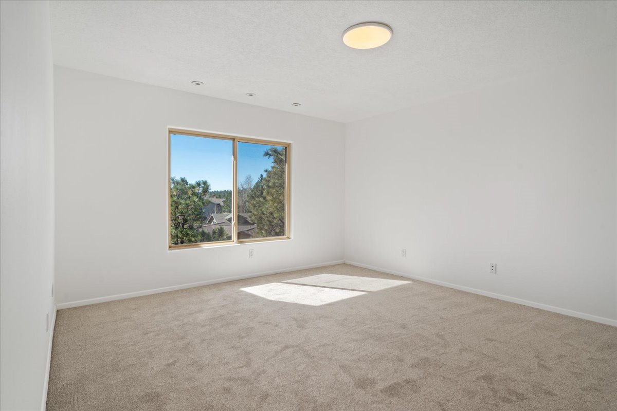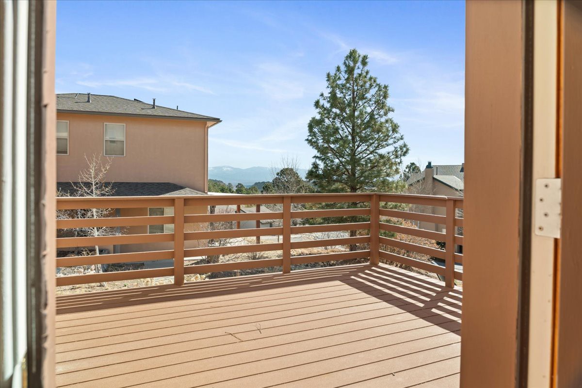 Set in the tranquil Quemazon subdivision, this inviting single-family home, built in 2004, offers comfort and style. A welcoming front porch sets the tone, perfect for morning coffee or quiet evenings. Inside, you'll find fresh paint, new luxury vinyl flooring, and new carpet that create a clean, crisp, and move-in-ready home. The main level features a spacious living room, formal dining area, and a well-appointed kitchen, along with convenient access to the two-car garage. French doors from the living room open to a sunny, south-facing balcony, perfect for entertaining and crafted with low-maintenance composite decking. Upstairs, a generous loft provides flexible living space, perfect for a home office, media room, or play area. The primary suite offers a comfortable retreat, complete with a large walk-in closet and an en-suite bathroom featuring double vanities and a private water closet. Two additional well-sized bedrooms and a conveniently located laundry area complete the upper level. With its peaceful setting, functional layout, and fresh updates, this Quemazon home is ready to welcome its next owner.
