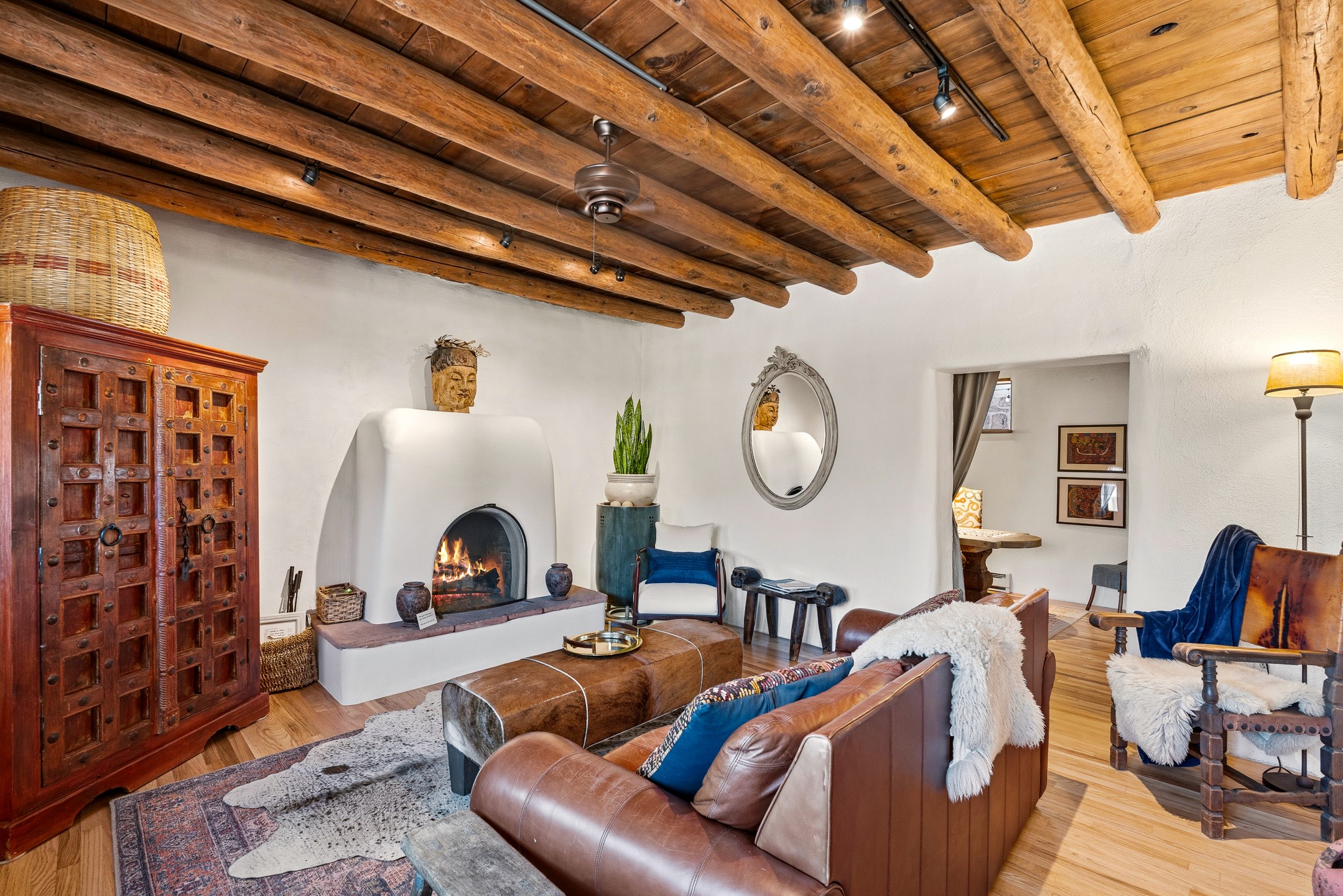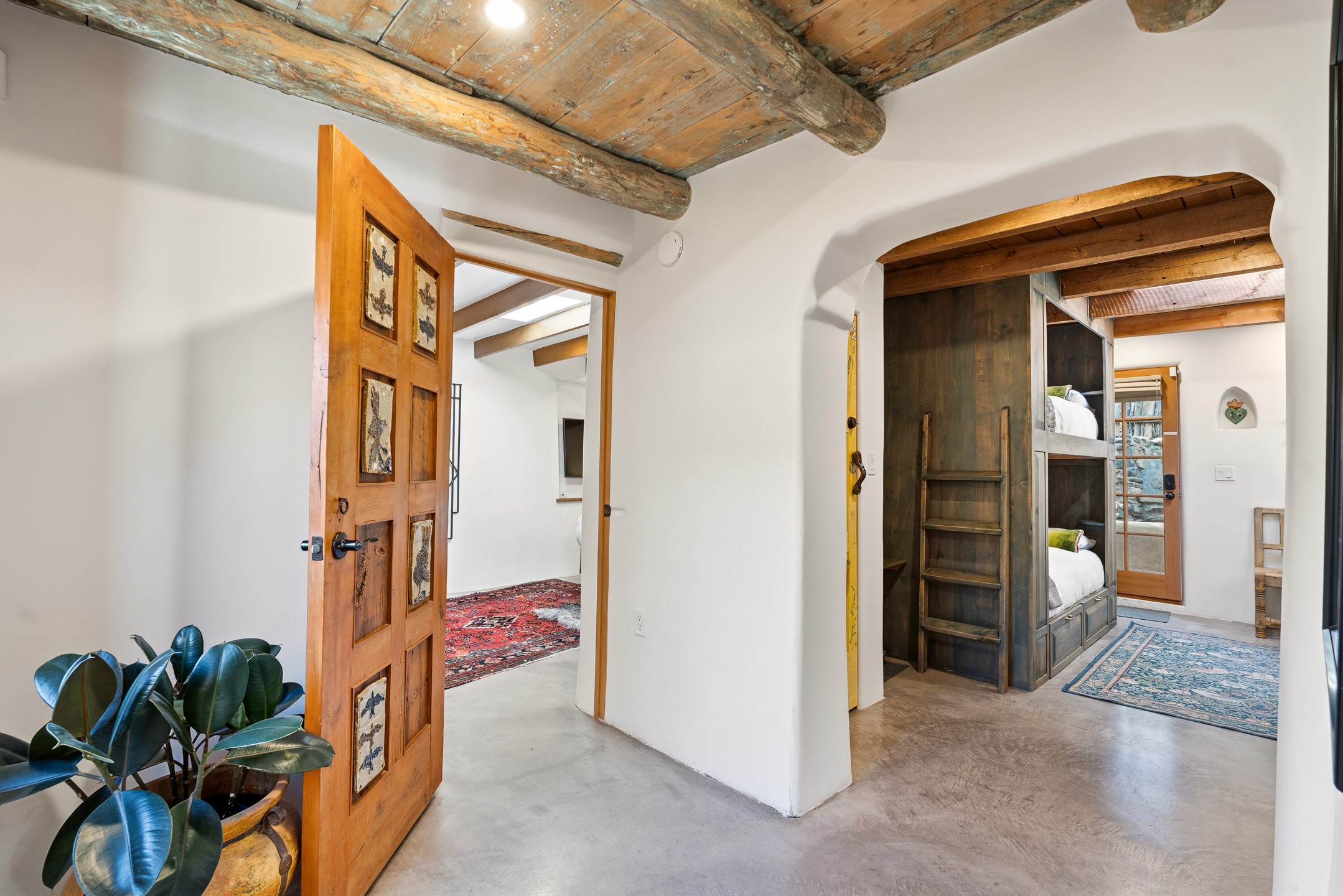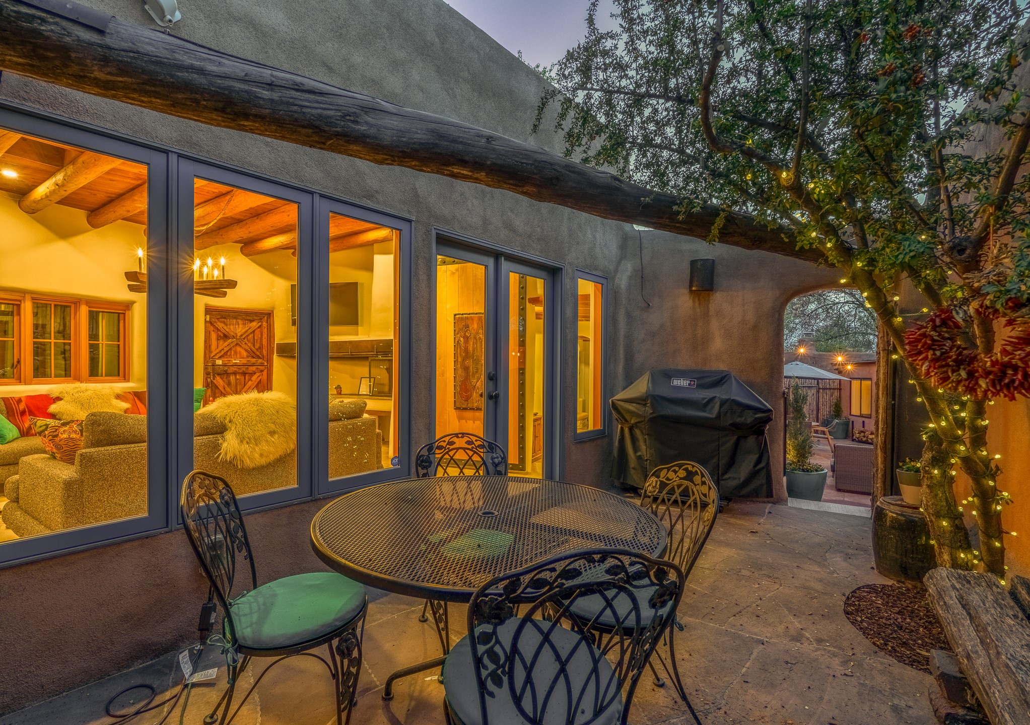 Set along iconic Canyon Road, this exceptional compound includes two beautifully restored residences--Casa Leza Anna and Casa Katalina--each thoughtfully renovated in 2023 to blend Santa Fe's historic charm with a refined, modern aesthetic.Casa Leza Anna, the front residence, is a 1,375 sq. ft. adobe home originally built in 1870. This 2-bedroom, 1-bath home has been meticulously reimagined, preserving its authentic character while introducing contemporary finishes. A private rear courtyard with a flagstone patio offers a quiet, intimate outdoor retreat. Tucked behind, Casa Katalina is a fully renovated 1,567 sq. ft. 2-bedroom, 2-bath guest house with an additional bunk room, providing flexible accommodations. The living room is anchored by a striking shepherd's fireplace, creating warmth and character. Two private outdoor areas, including one with a hot tub, enhance the experience. Currently enjoyed as a pied--terre and a successful vacation rental, the property offers exceptional flexibility. Live in one residence and rent the other, or maximize income potential. Casas Dos Primas is a rare opportunity to own a piece of Canyon Road history, where timeless adobe architecture and modern livability come together in one of Santa Fe's most coveted locations.