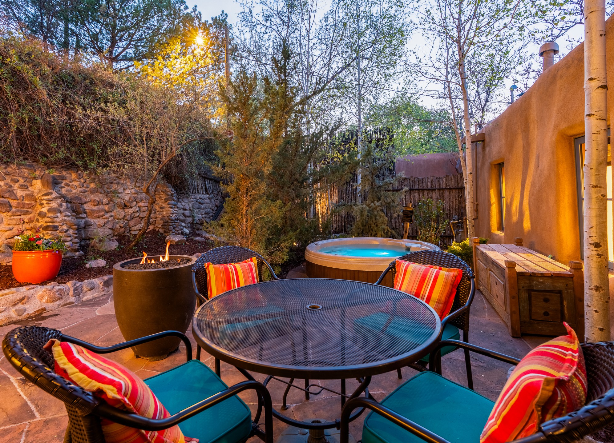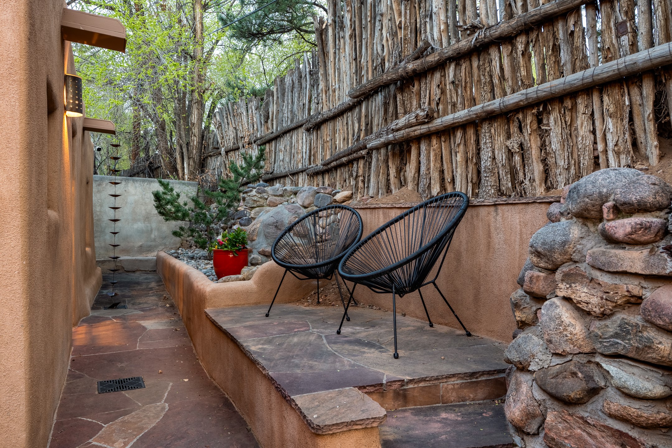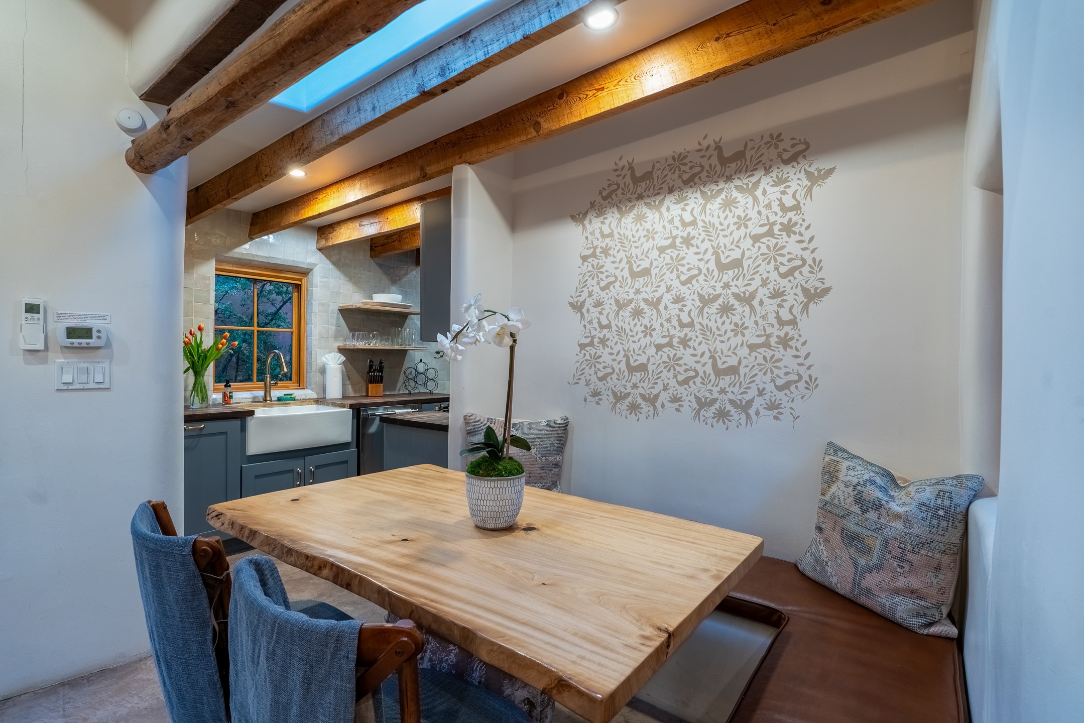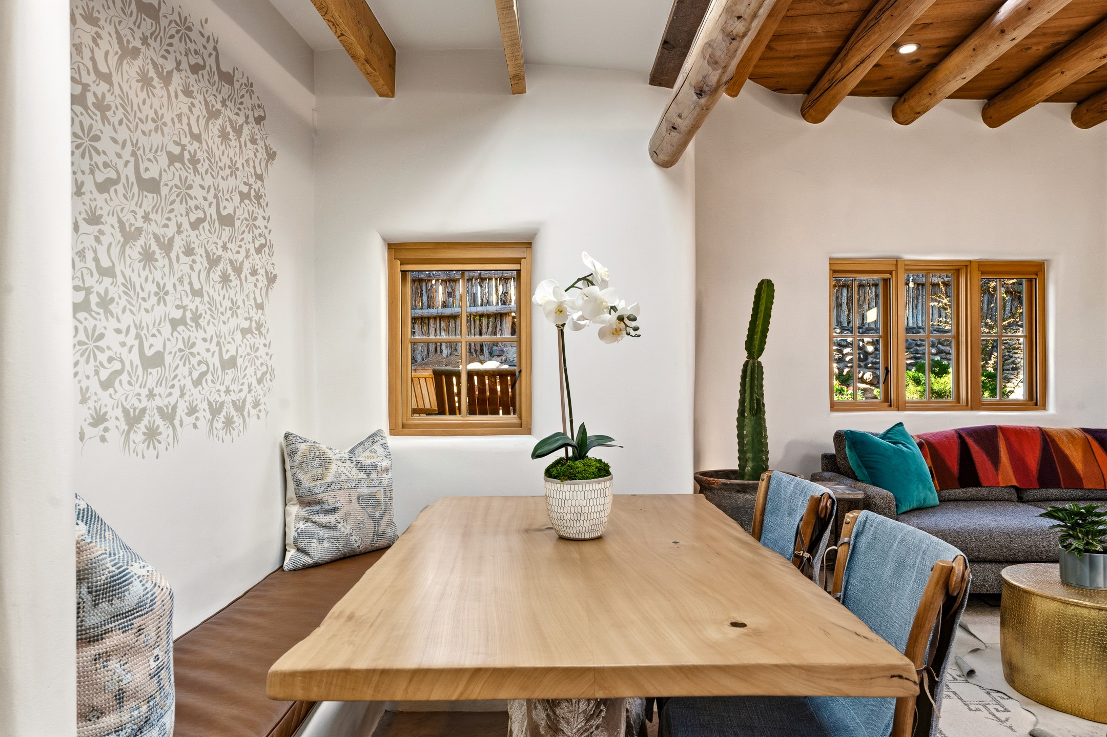 Set along iconic Canyon Road, this exceptional compound includes two beautifully restored residences--Casa Leza Anna and Casa Katalina--each thoughtfully renovated in 2023 to blend Santa Fe's historic charm with a refined, modern aesthetic.Casa Leza Anna, the front residence, is a 1,375 sq. ft. adobe home originally built in 1870. This 2-bedroom, 1-bath home has been meticulously reimagined, preserving its authentic character while introducing contemporary finishes. A private rear courtyard with a flagstone patio offers a quiet, intimate outdoor retreat. Tucked behind, Casa Katalina is a fully renovated 1,567 sq. ft. 2-bedroom, 2-bath guest house with an additional bunk room, providing flexible accommodations. The living room is anchored by a striking shepherd's fireplace, creating warmth and character. Two private outdoor areas, including one with a hot tub, enhance the experience. Currently enjoyed as a pied--terre and a successful vacation rental, the property offers exceptional flexibility. Live in one residence and rent the other, or maximize income potential. Casas Dos Primas is a rare opportunity to own a piece of Canyon Road history, where timeless adobe architecture and modern livability come together in one of Santa Fe's most coveted locations.