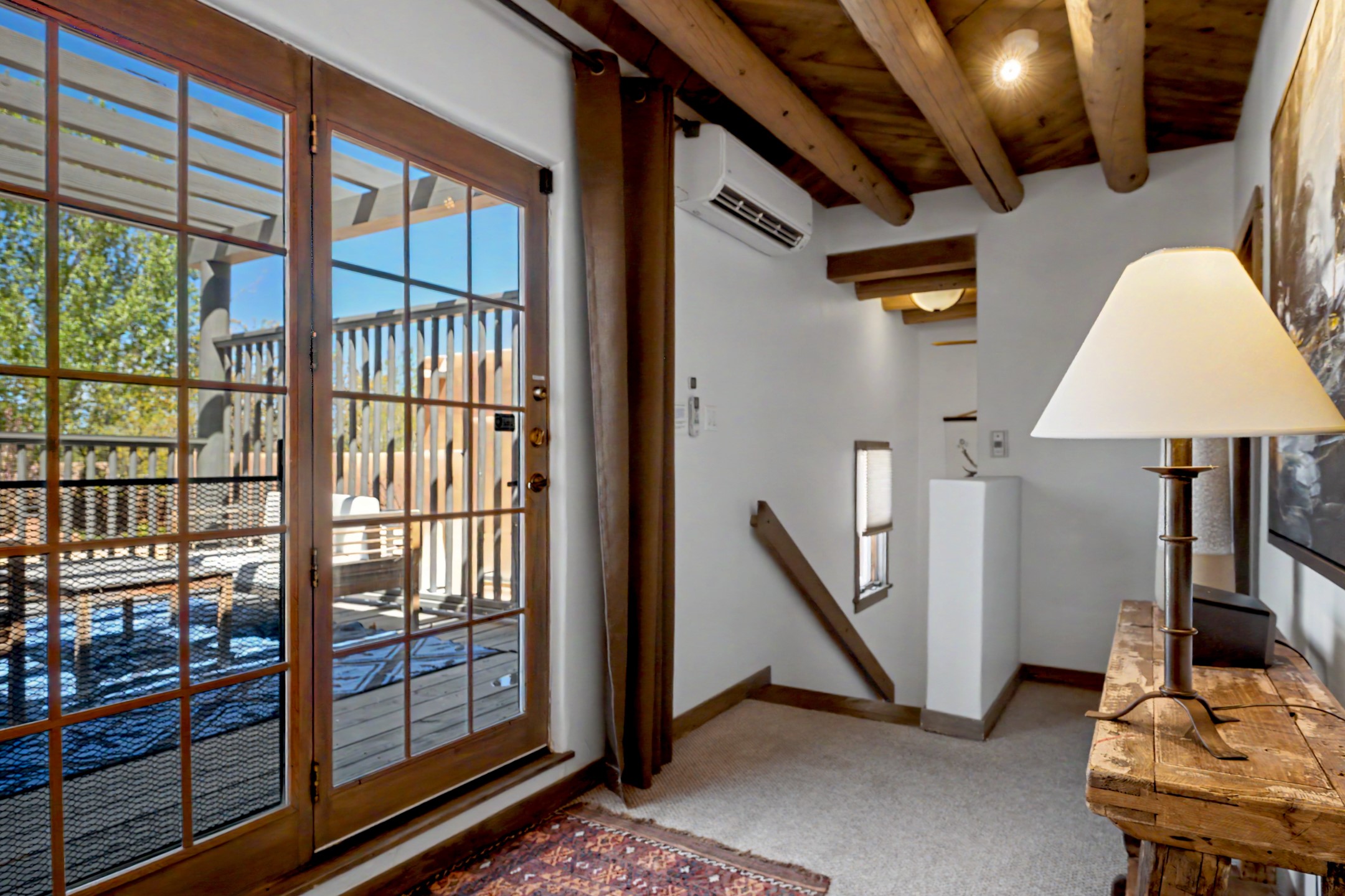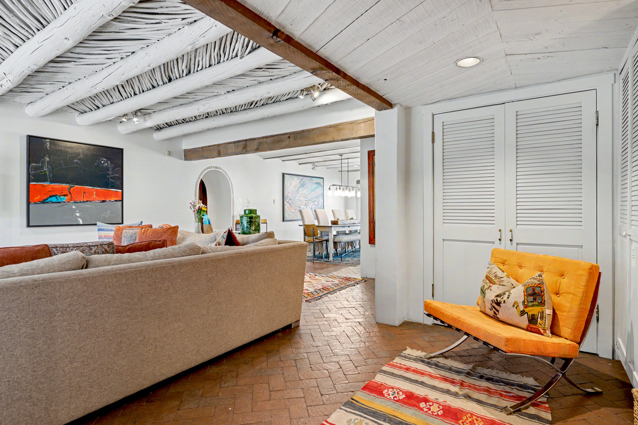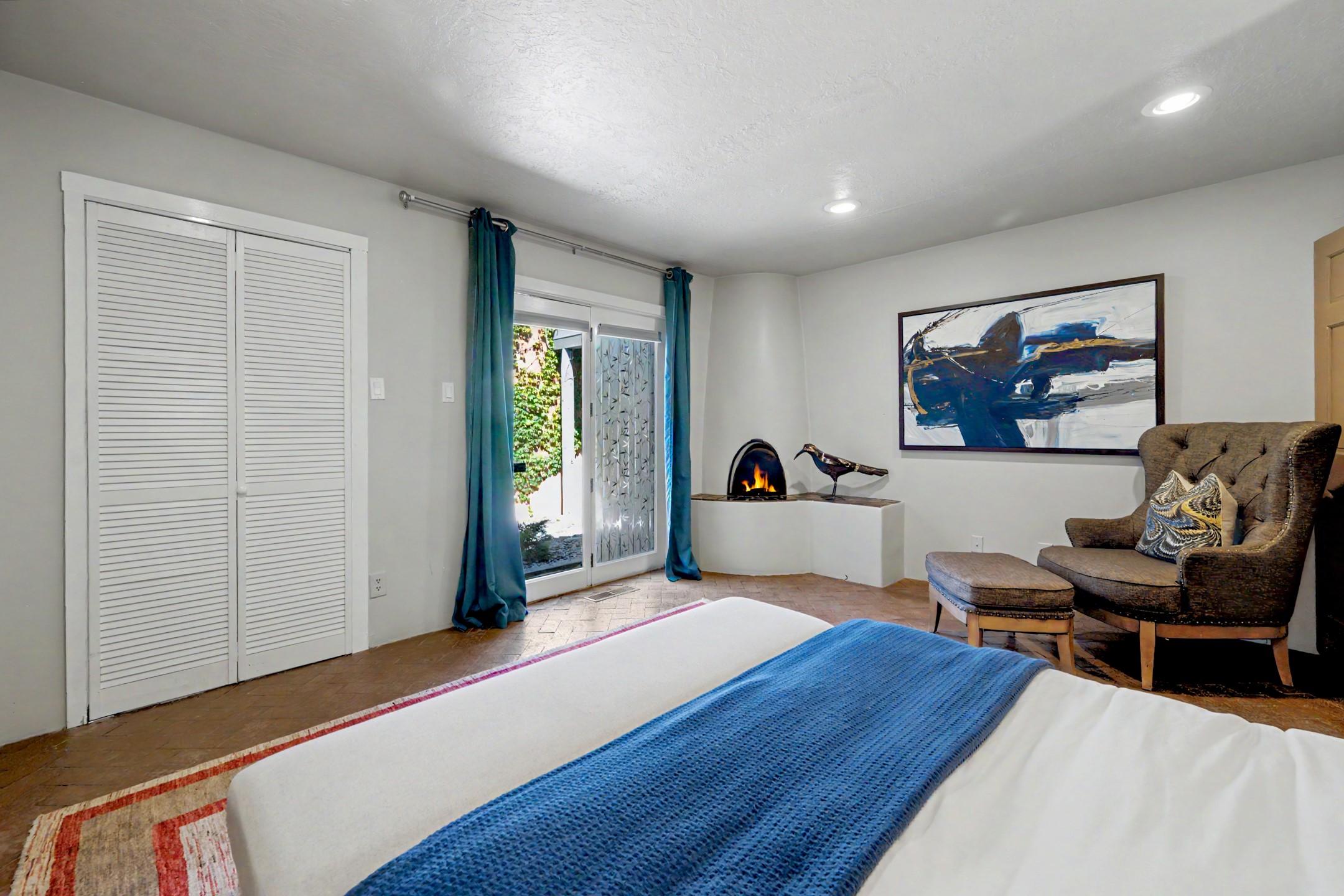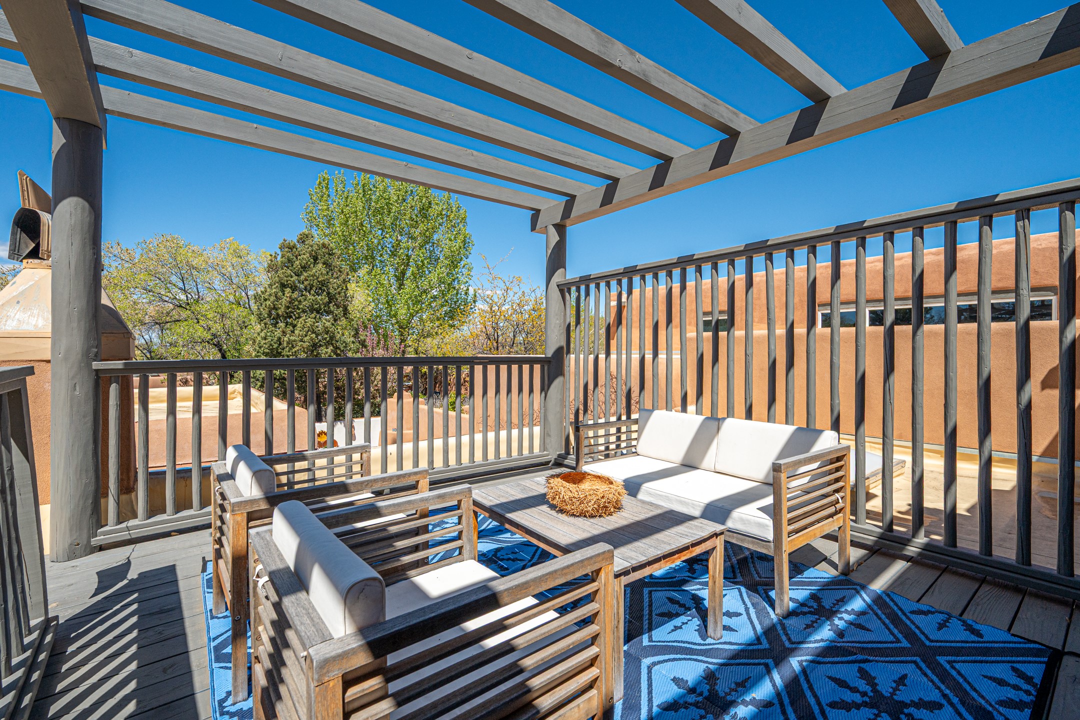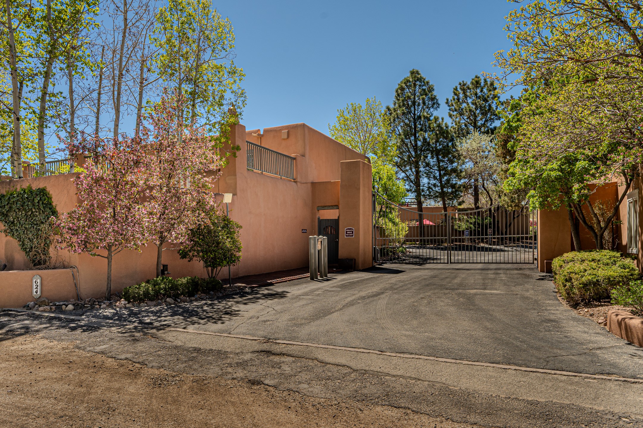 Tucked within a gated enclave in Santa Fe's highly sought-after Historic Eastside, this exceptional 4-bedroom, 4-bath residence offers the perfect blend of charm, comfort, and convenience. Ideally positioned between Alameda and Canyon Road, step outside one complex gate and find yourself on Canyon Road, step out the other gate and there you are on E. Alameda where you can stroll downtown along the Santa Fe River. Designed for both relaxed living and effortless entertaining, the home features four traditional kiva fireplaces that add warmth and authentic Southwestern character throughout plus central heating and air conditioning ensure year-round comfort. The thoughtfully designed layout includes generous storage and four inviting outdoor living spaces--perfect for enjoying Santa Fe's stunning climate. One outdoor area is highlighted by its own kiva fireplace and tranquil water feature, creating a peaceful retreat for morning coffee or evening gatherings. A rare and coveted amenity for this historic area, the property includes a spacious two-car garage--an exceptional find in the Eastside. The gated setting provides security and privacy, making this an ideal "lock and leave" residence for part-time owners or those seeking a low-maintenance lifestyle with recent upgrades including a new roof and stucco. Currently utilized as a successful short-term rental and second home, the property offers flexibility and income potential. Whether you're seeking a full-time residence, vacation escape, or investment opportunity, this unique Santa Fe home delivers timeless appeal in an unbeatable location. Rental History available upon request.