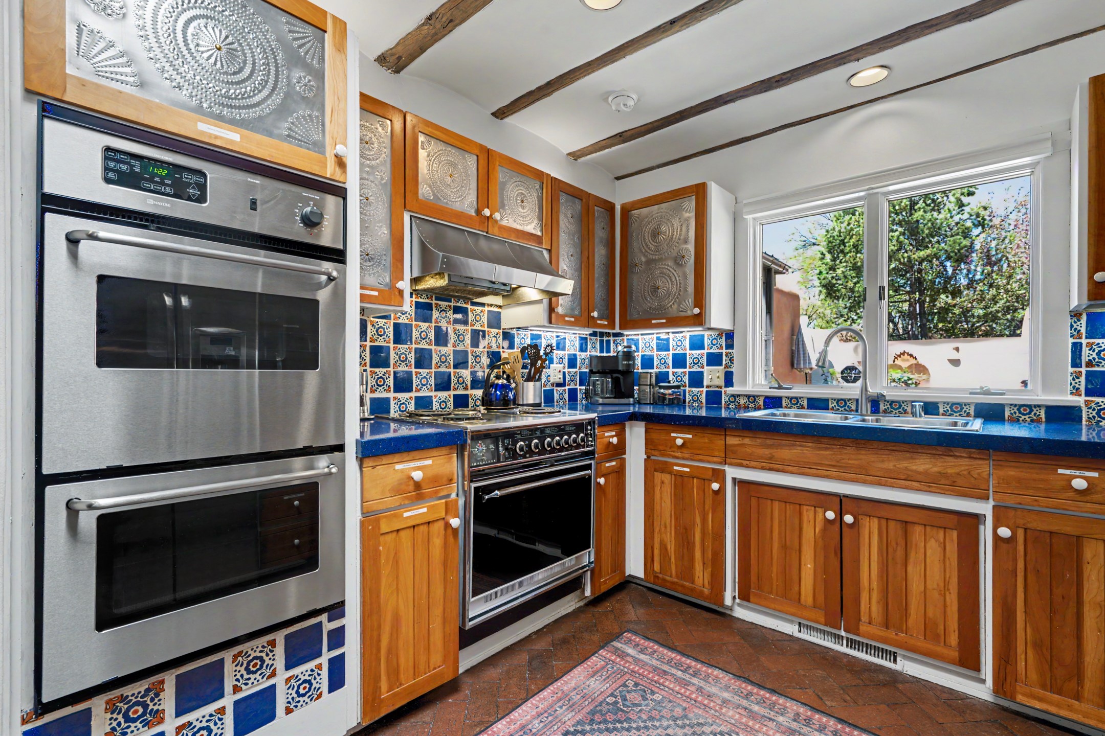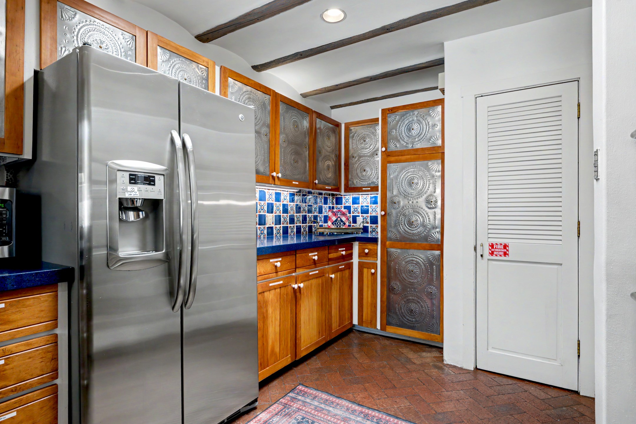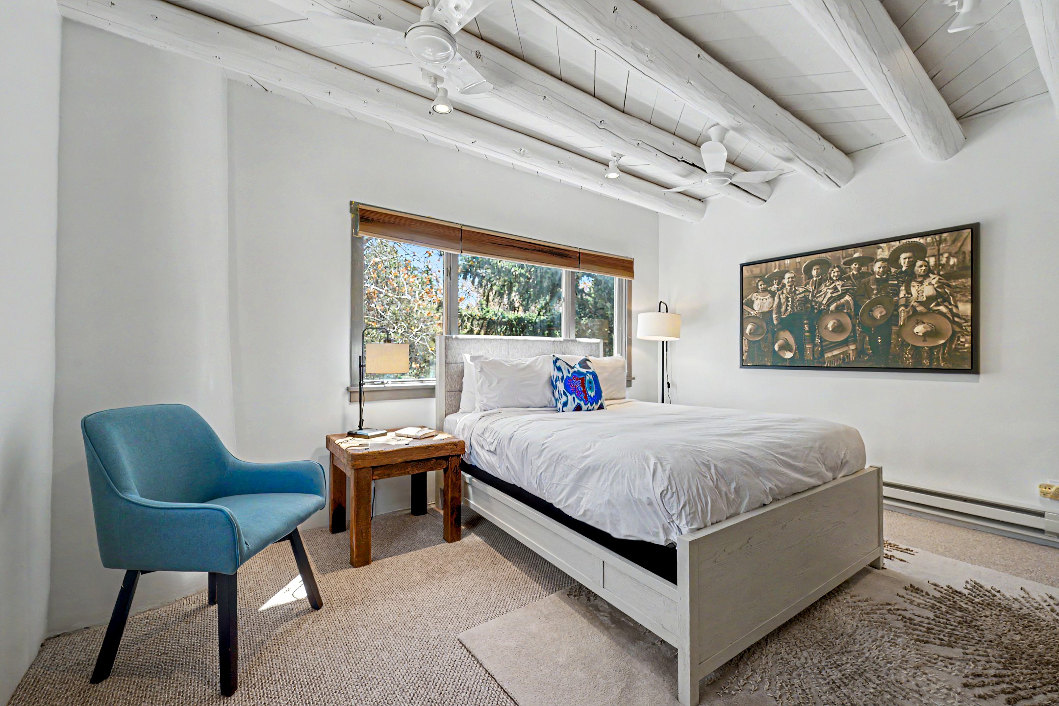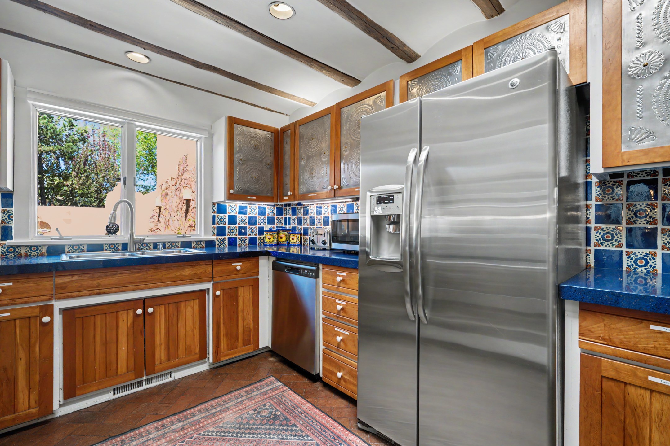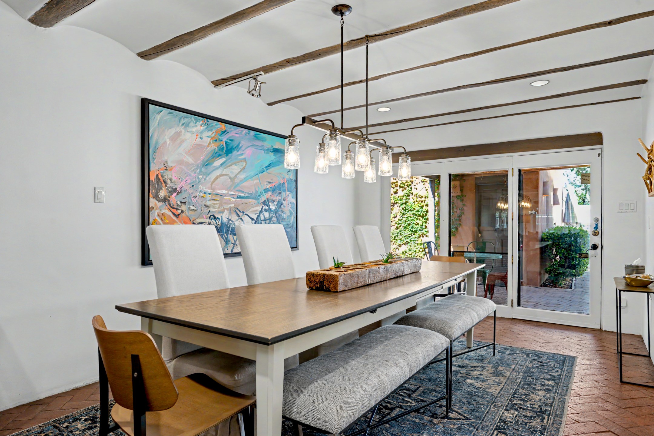 Tucked within a gated enclave in Santa Fe's highly sought-after Historic Eastside, this exceptional 4-bedroom, 4-bath residence offers the perfect blend of charm, comfort, and convenience. Ideally positioned between Alameda and Canyon Road, step outside one complex gate and find yourself on Canyon Road, step out the other gate and there you are on E. Alameda where you can stroll downtown along the Santa Fe River. Designed for both relaxed living and effortless entertaining, the home features four traditional kiva fireplaces that add warmth and authentic Southwestern character throughout plus central heating and air conditioning ensure year-round comfort. The thoughtfully designed layout includes generous storage and four inviting outdoor living spaces--perfect for enjoying Santa Fe's stunning climate. One outdoor area is highlighted by its own kiva fireplace and tranquil water feature, creating a peaceful retreat for morning coffee or evening gatherings. A rare and coveted amenity for this historic area, the property includes a spacious two-car garage--an exceptional find in the Eastside. The gated setting provides security and privacy, making this an ideal "lock and leave" residence for part-time owners or those seeking a low-maintenance lifestyle with recent upgrades including a new roof and stucco. Currently utilized as a successful short-term rental and second home, the property offers flexibility and income potential. Whether you're seeking a full-time residence, vacation escape, or investment opportunity, this unique Santa Fe home delivers timeless appeal in an unbeatable location. Rental History available upon request.