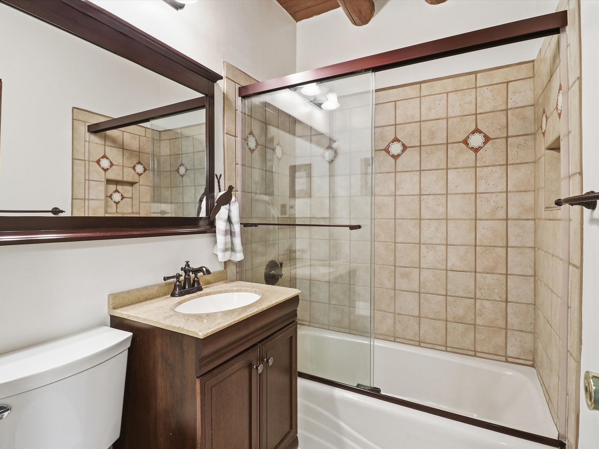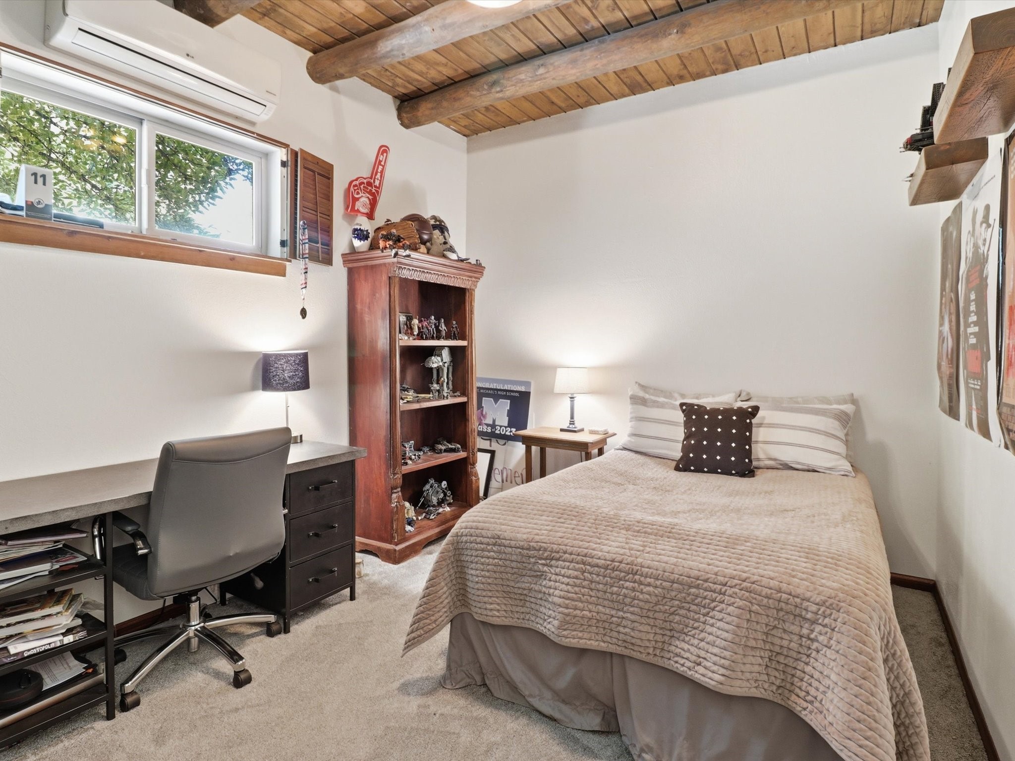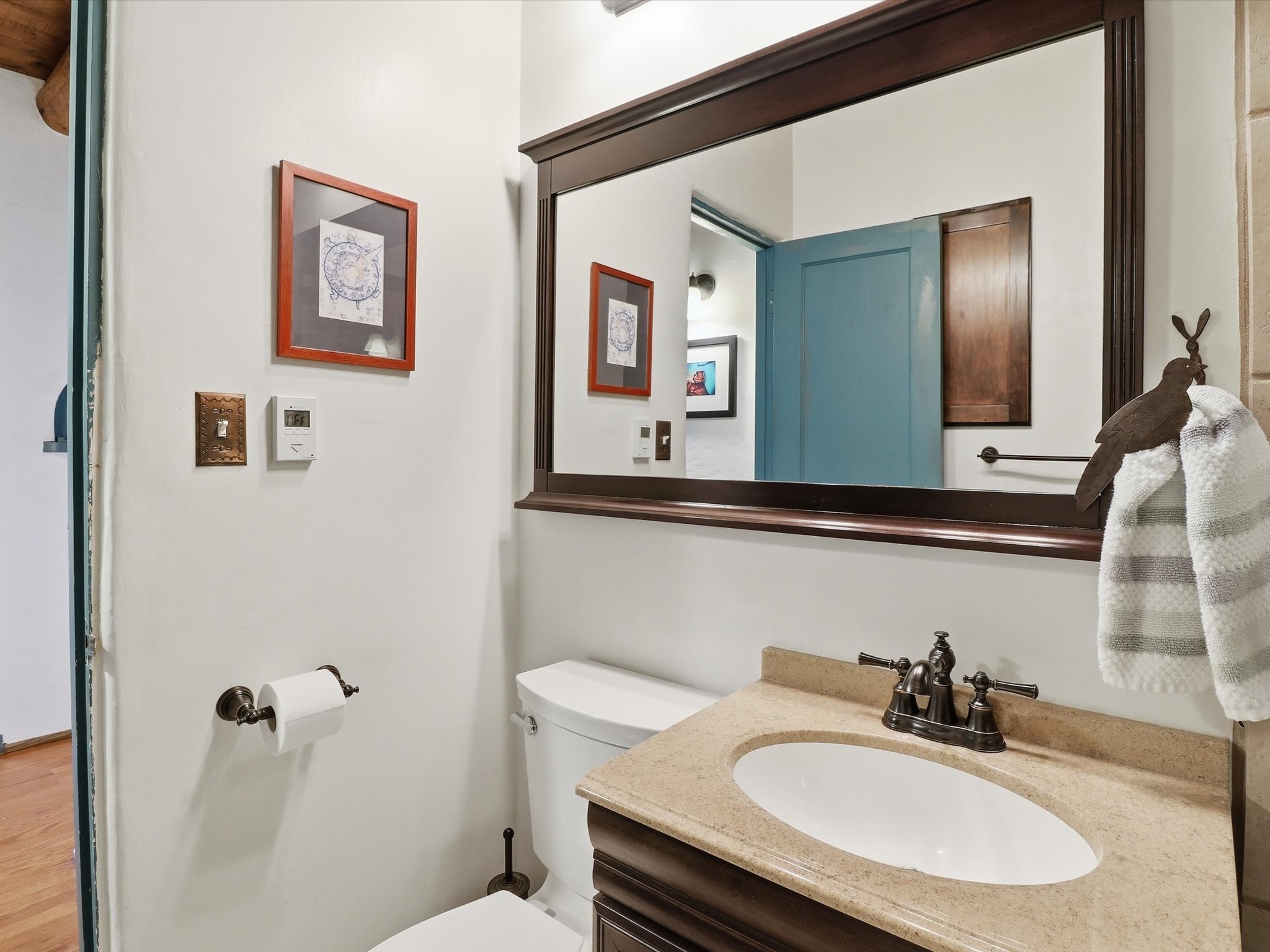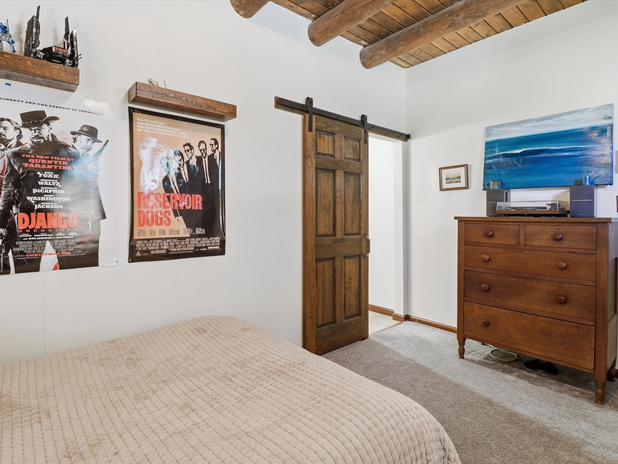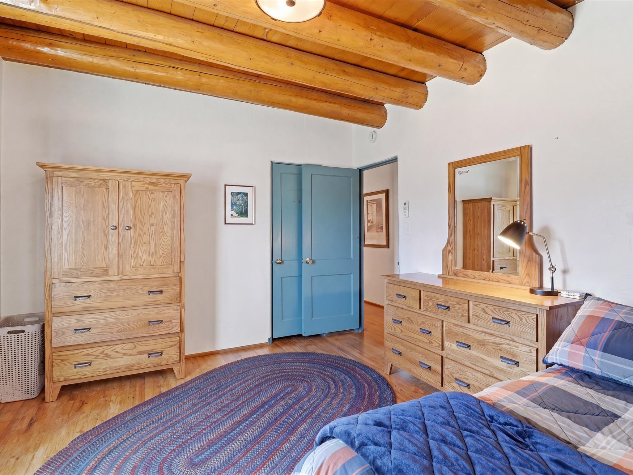 This classic Stamm home is a masterclass in authentic Santa Fe charm, blending historic architectural details with the functional space today's luxury buyers crave. Featuring 4 bedrooms, 3 bathrooms, and a versatile flex room, the residence is defined by traditional vigas that stretch across the ceilings, creating a warm, grounded atmosphere throughout. The interior showcases a rich palette of textures, from original hardwood floors to Saltillo tile and timeless finishes. Distinctive arched doorways accented with Spanish tile lead you through the home, while three wood-burning kiva fireplaces serve as soulful focal points for gathering. Outside, the property transforms into a private desert oasis. The beautifully landscaped grounds are anchored by a covered pergola, perfect for alfresco dining or quiet evenings. Located just minutes from the Santa Fe Rail Trail, this home offers the perfect balance of serene living and active lifestyle access.