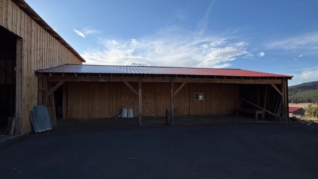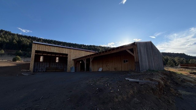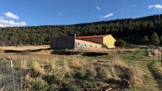 Wonderful home for anyone, but especially if you want to have a business at which you can work from home. 3b2b, 1568 sf manufactured home on permanent foundation with forced air heat and new propanel roof, on 9.6 acres. The acreage stretches from the state road up the mountain into the forest. The valley acreage is grassland, and all of the grassy portion of the property is fenced. The property includes two workshops or barns on concrete slabs. The larger one is 38'x60' and 8'x20' is insulated with R20 insulation. The smaller measures 32'x50', with 17'x50 enclosed (2/3 of it is insulated) and the rest covered by roof overhang. Both workshops have 200amp electric, and the smaller one has a wood stove and water. There is a separate app. 8'x10' greenhouse, a small stable with 2 stalls, and a 10'x30' garden shed or chicken coop. As if all that wasn't enough, there is also an RV hookup with 100am service, water in front and back, and septic in front. There is also a pad leveled for a round pen. The high-producing well produces delicious water.