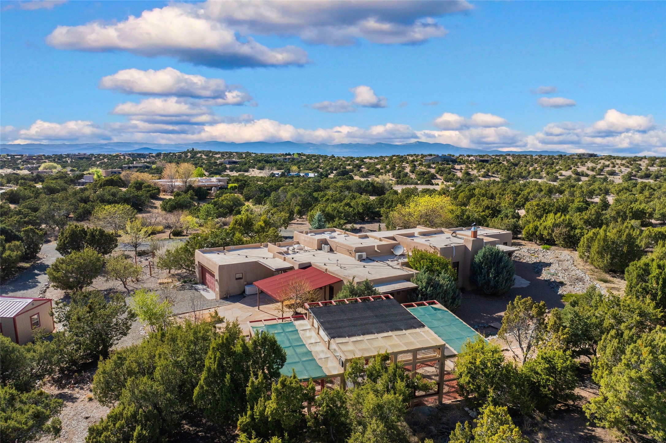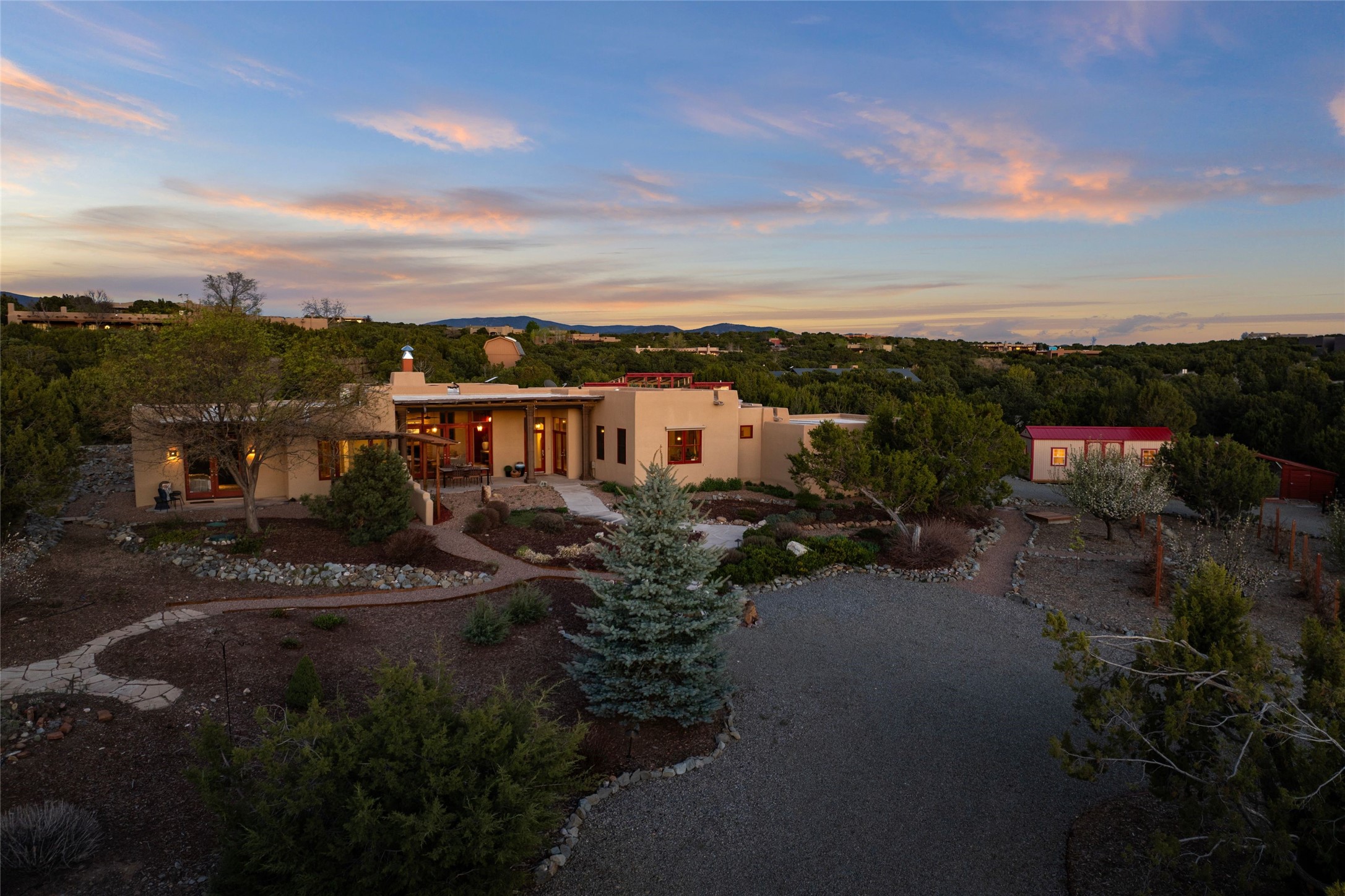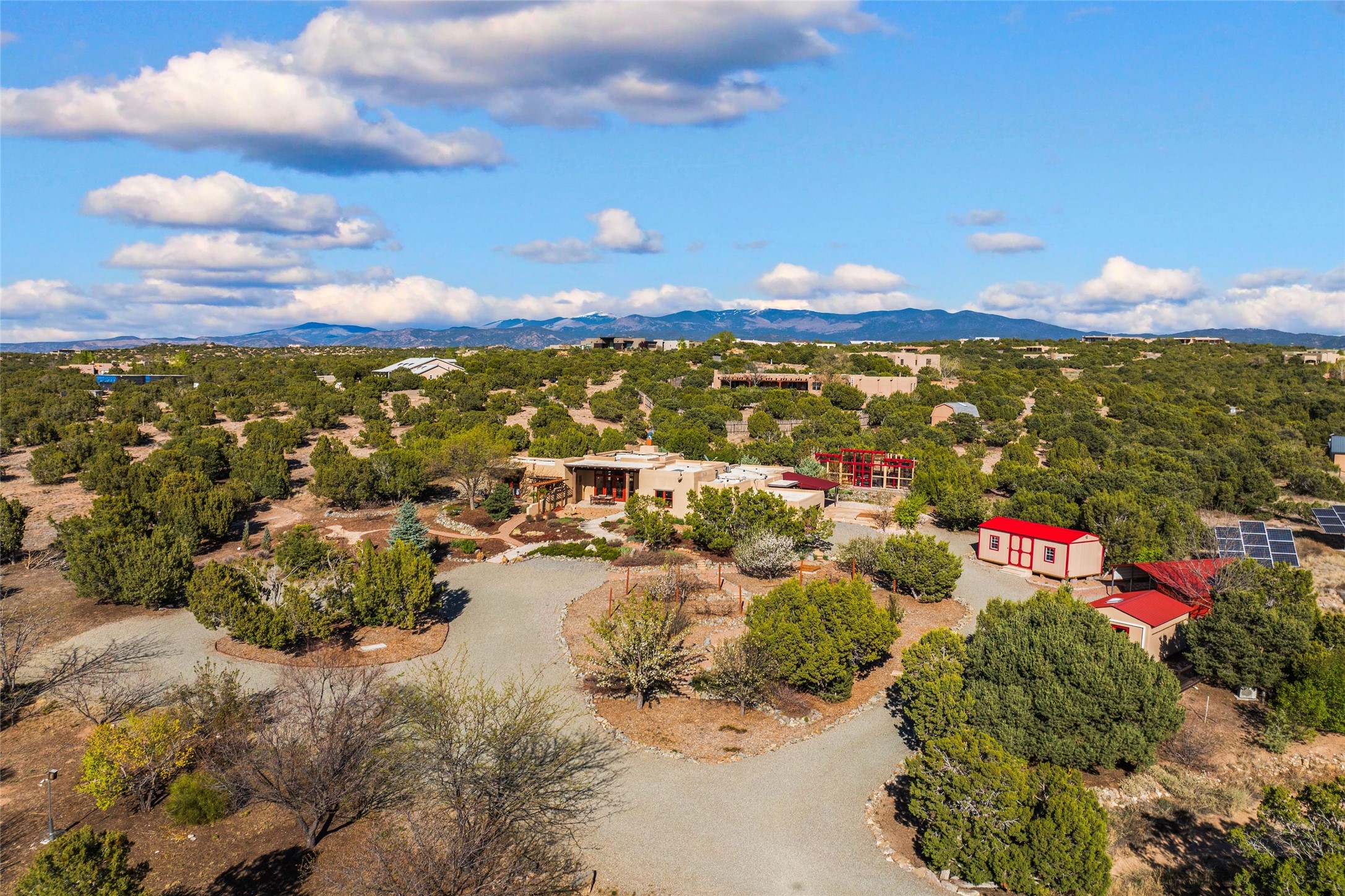 A sanctuary in nature while only minutes from town. Beautiful landscape, big views and custom finishes create this 2.7 acre dream. Inside the home showcases soaring ceilings and timeless natural finishes cultivating earthy elegance throughout. This space invites connection to nature at every turn: prepare meals while taking in glowing sunsets, unwind in the bath feeling surrounded by nature or find your creativity in the studio tucked into a private natural spot. Hone your skills in the large workshop or fine tune your gardening talents in the greenhouse. With a hot tub to relax and enjoy views, multiple patios to bring living outside, fruit trees and grape vines to partake of, solar to keep costs down and full irrigation, this is a haven, a refuge. Expansive grounds, tranquil atmosphere and big country feel-yet just minutes from town-this one-of-a-kind property offers the perfect balance of seclusion, beauty and convenience. Well maintained with many tasteful updates. Come and experience.