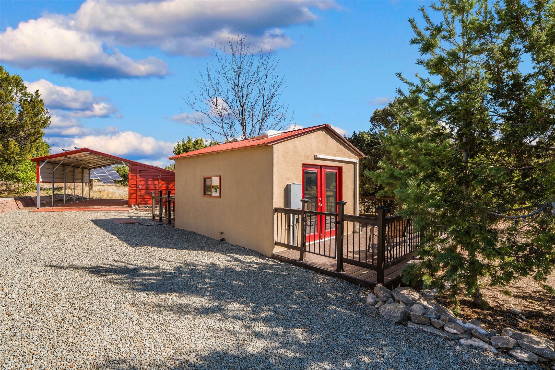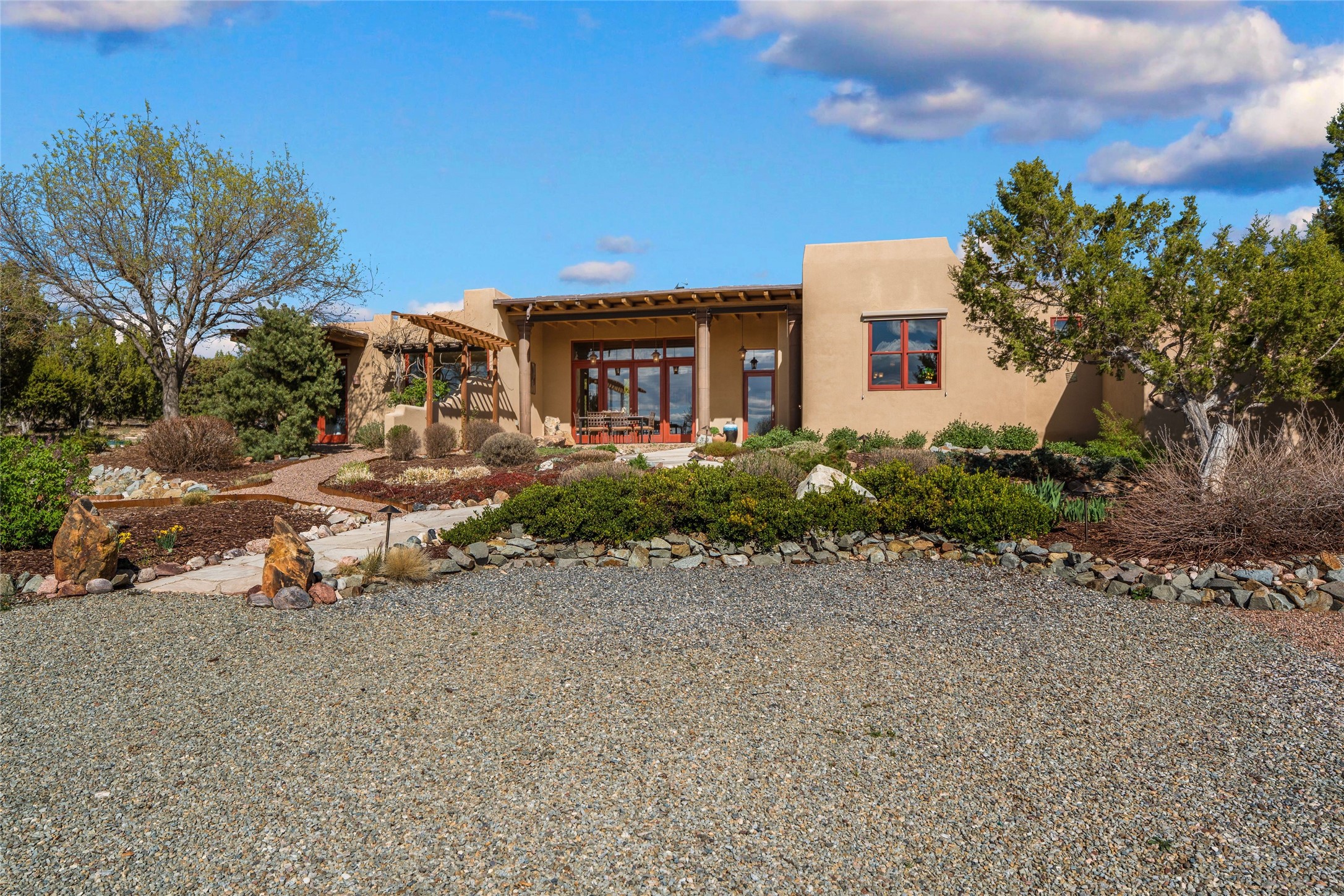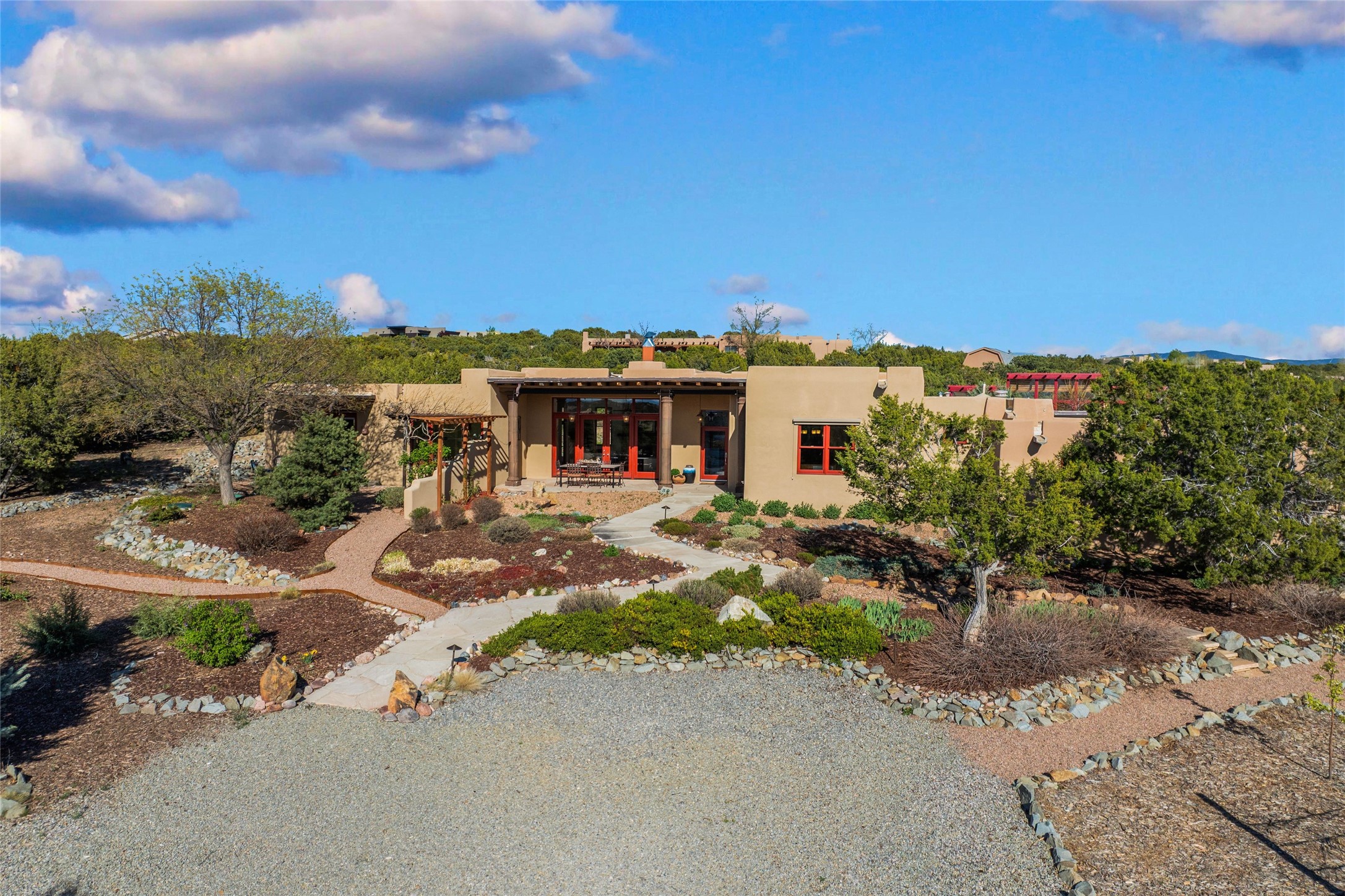 A sanctuary in nature while only minutes from town. Beautiful landscape, big views and custom finishes create this 2.7 acre dream. Inside the home showcases soaring ceilings and timeless natural finishes cultivating earthy elegance throughout. This space invites connection to nature at every turn: prepare meals while taking in glowing sunsets, unwind in the bath feeling surrounded by nature or find your creativity in the studio tucked into a private natural spot. Hone your skills in the large workshop or fine tune your gardening talents in the greenhouse. With a hot tub to relax and enjoy views, multiple patios to bring living outside, fruit trees and grape vines to partake of, solar to keep costs down and full irrigation, this is a haven, a refuge. Expansive grounds, tranquil atmosphere and big country feel-yet just minutes from town-this one-of-a-kind property offers the perfect balance of seclusion, beauty and convenience. Well maintained with many tasteful updates. Come and experience.