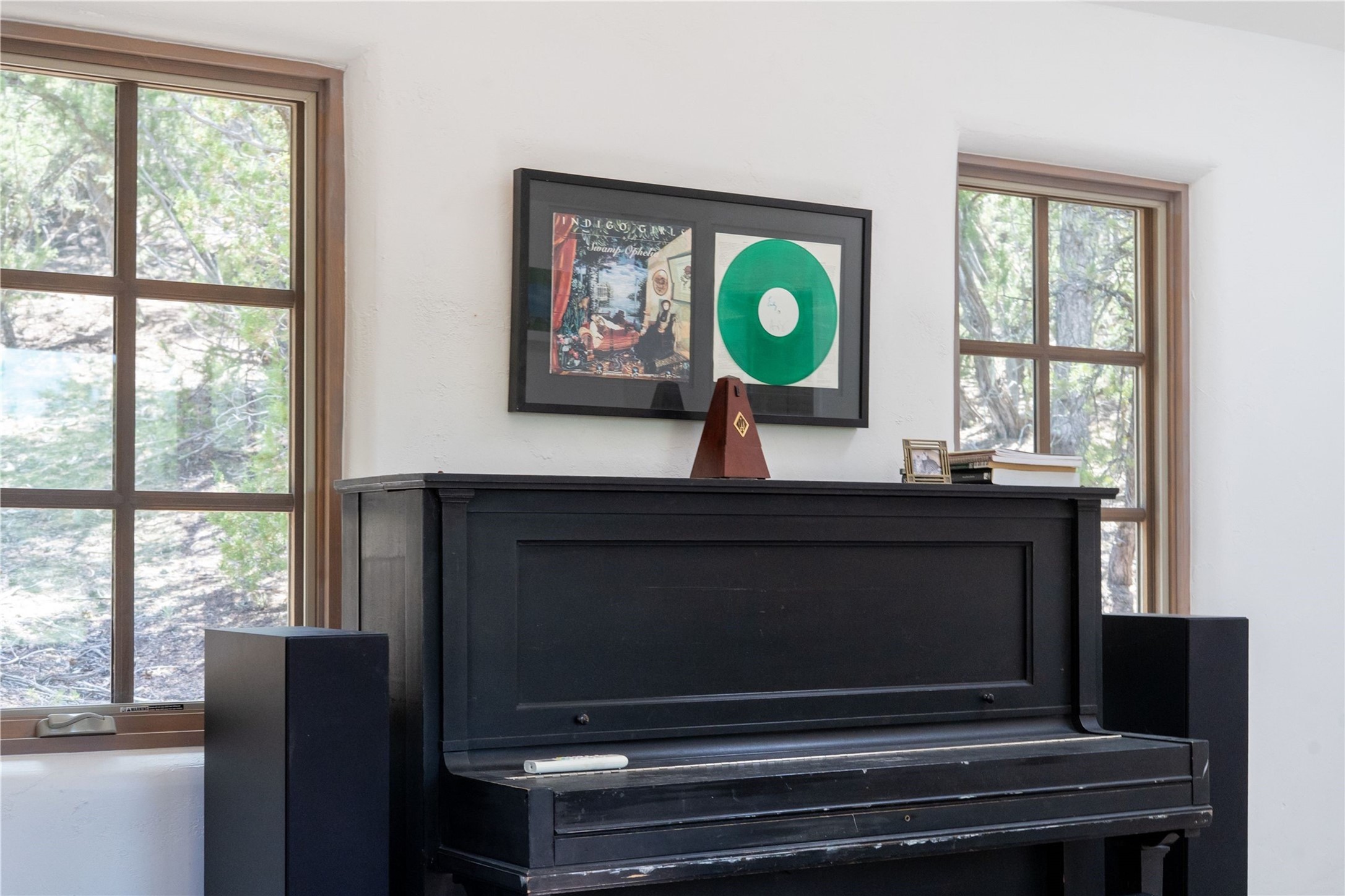 A magnificent European inspired estate sited on a hilltop, with breathtaking views of the Sangre de Cristo Mountains, and spanning 7.7 acres of lush sanctuary. This property features a stunning main house, charming detached casita, and chapel that has been transformed into an artist/musician's studio. The main house, adorned with bespoke decor, offers 3 bedrooms, 3 full and 2 half baths, library and an office. Showcasing hand-painted 18th century French ceiling beams, arched stone columns, and a blend of wood and stone floors. Antique doors, stained glass skylights, and custom built-ins enhance the expansive living spaces. The spacious master suite includes a sitting area with majestic mountain views and a hand painted clawfoot soaking tub. The lower level offers comfortable guest or caretaker quarters with two distinct living areas, a full kitchen, an office, as well as private entrance through covered parking for privacy and convenience. The detached casita is complete with a kitchen, bedroom, bath, and a charming front porch with a breathtaking view to Taos. Recent upgrades include modern heating and cooling systems for both the main house and casita, along with new kitchens featuring updated counters and cabinetry and new septic (2026). Experience total outdoor serenity from the oversized deck to the rose and vegetable gardens, just 8 minutes from downtown Santa Fe!