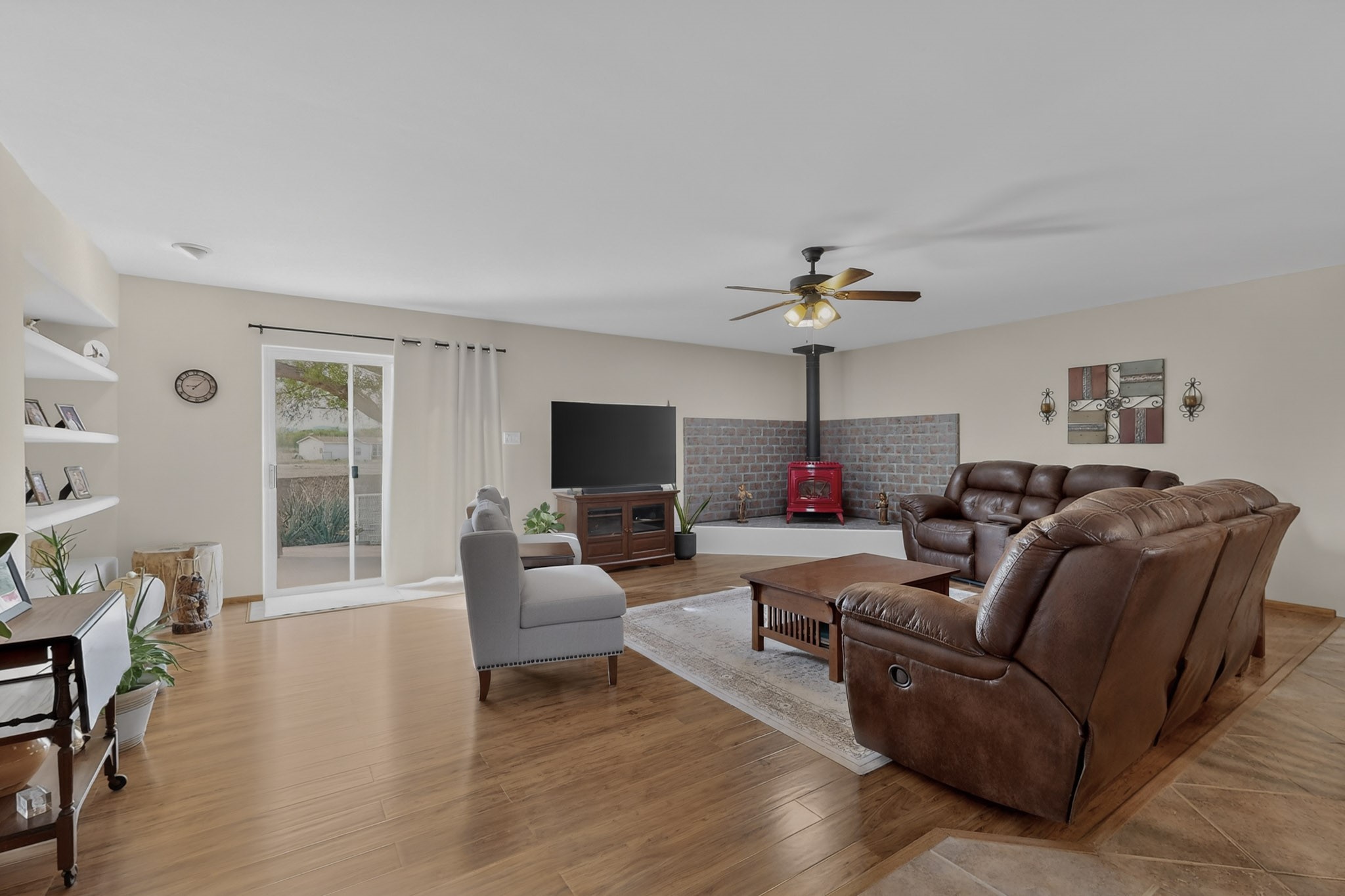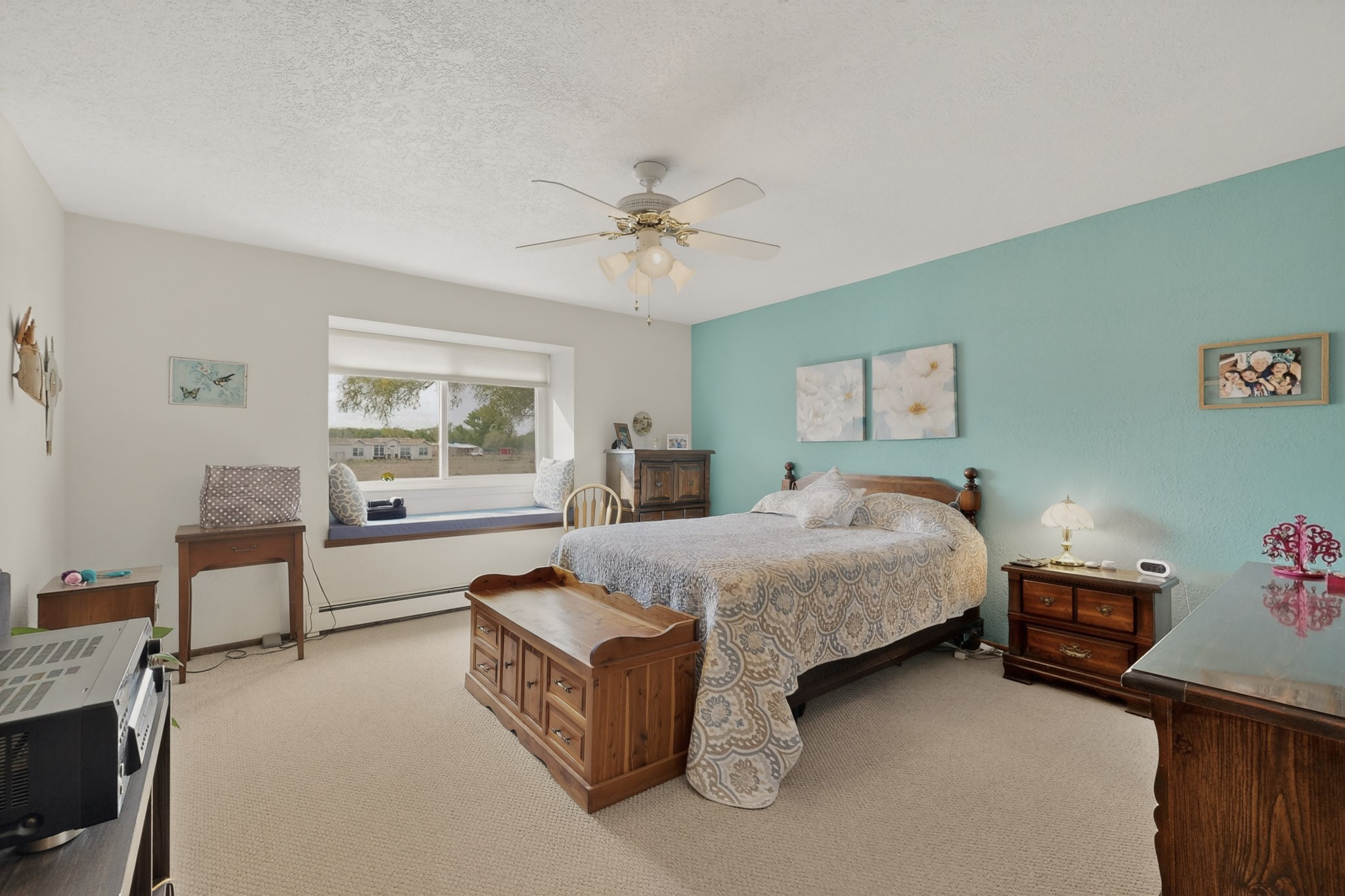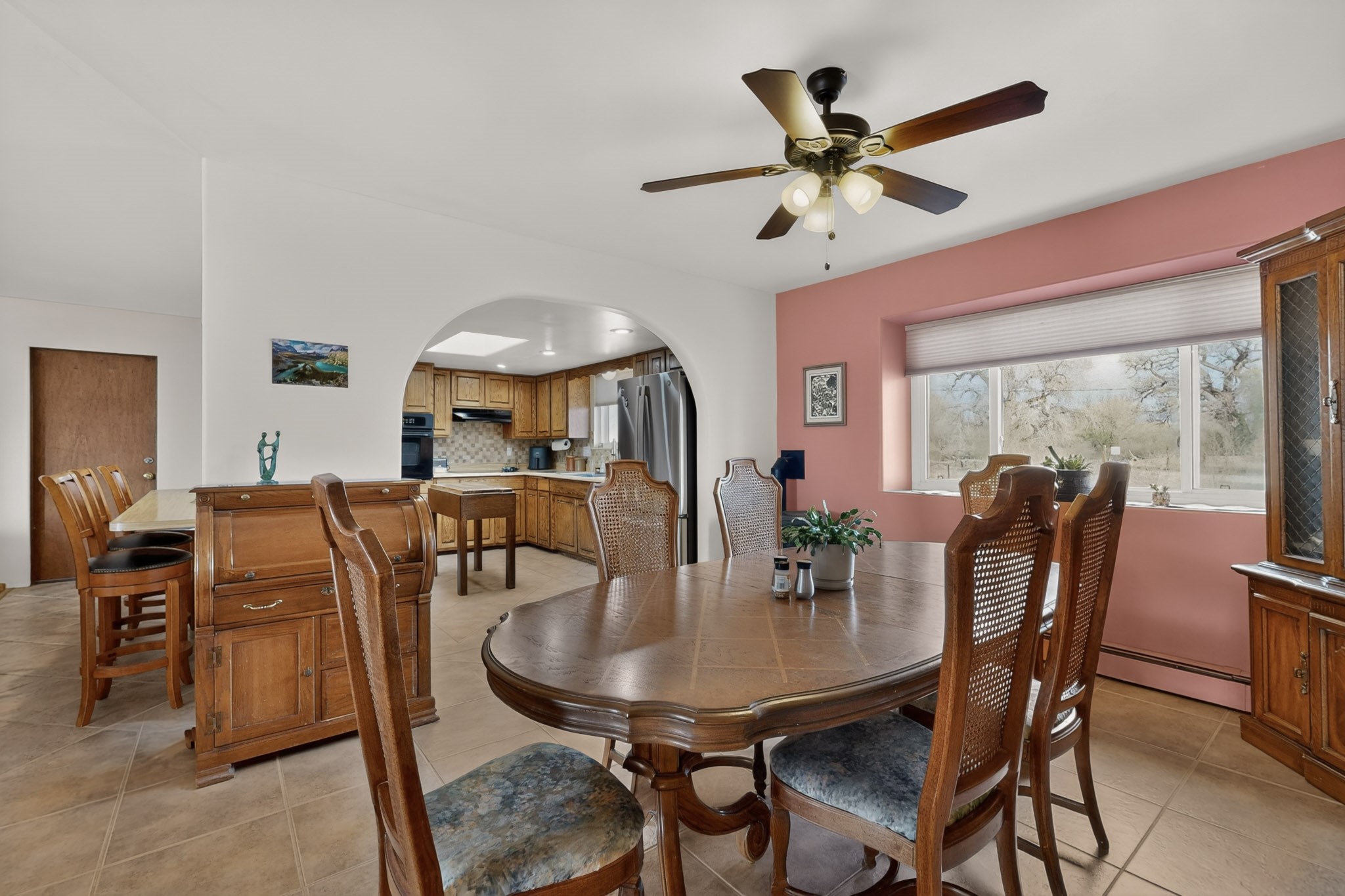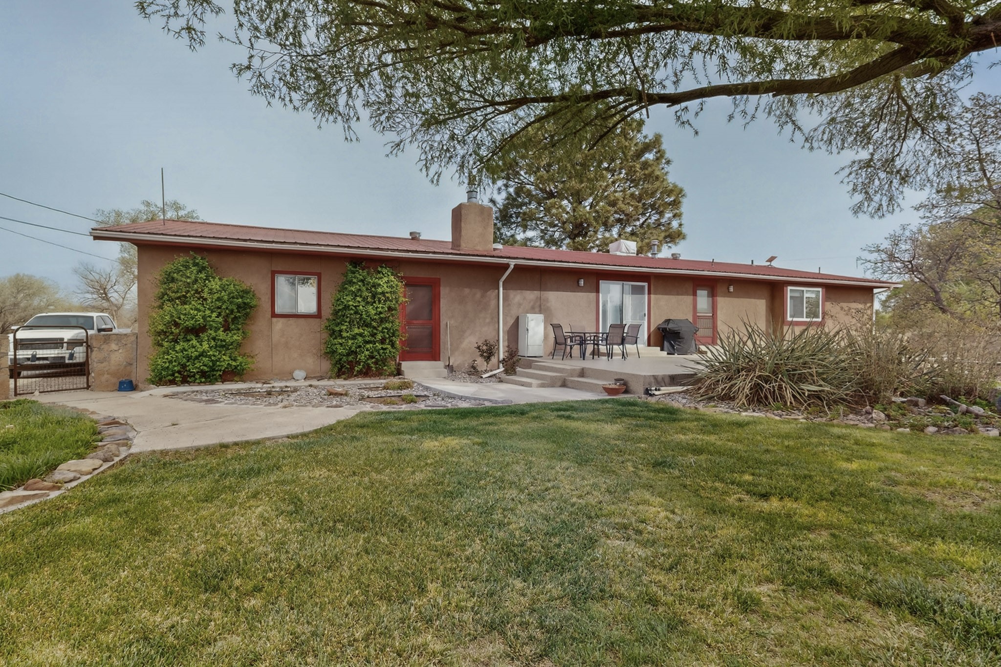 Don't miss this incredible opportunity to own a spacious move in ready home, featuring pre-1907 water rights, conveyed with the property! (.96 acre w/2.868 diversion) Situated on 2 parcels for a total of 2.3 acres, this charming residence offers updated gorgeous wood laminate flooring in the main living areas and beautifully updated baths. The resurfaced kitchen cabinets add a fresh touch, while the fully landscaped back courtyard provides an inviting space to relax or entertain. Enjoy large bedrooms and a generous backyard patio with durable epoxy coating, perfect for outdoor gatherings. The oversized 2-car garage offers ample storage. Beautiful views, and walking distance to the Bosque! This property blends comfort, functionality, and timeless value - Just 15 quick minutes to the interstate! Great location if working in Santa Fe OR ABQ!