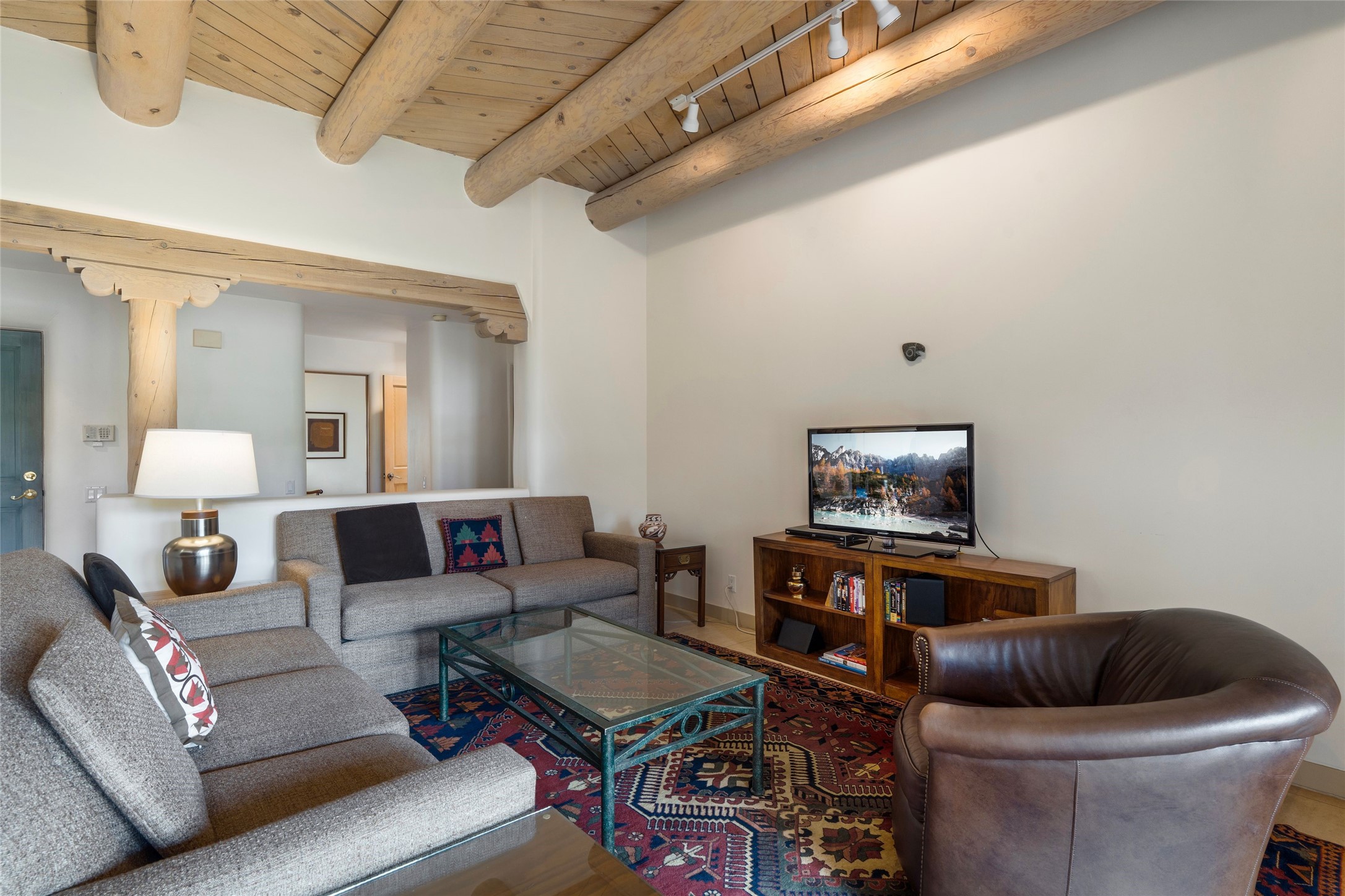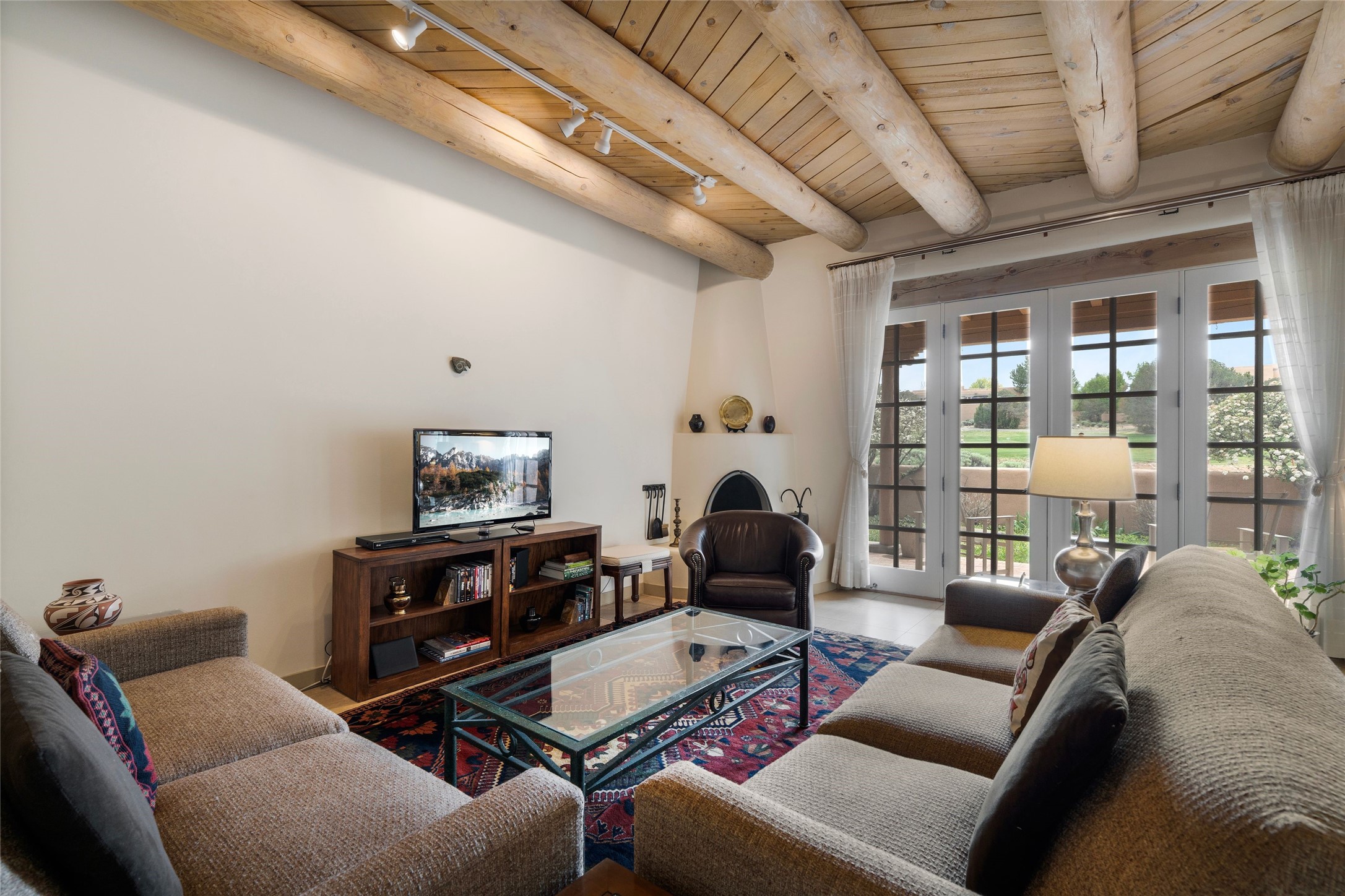 Ideally located on the golf course with an oversized back portal to take in the scenic views and gaze at the pond, this two bedroom with an office is a fabulous Quail Run offering. Updated floors and kitchen serve to make this functional and enjoyable. Plenty of Santa Fe style, great separation of bedrooms and ample windows that host the sunlight and give plenty of expanse to view. Located walking distance from the Clubhouse inside of 103 beautifully maintained acres with 24 hour hosted security. Ownership at Quail Run includes all amenities; engaging 9 hole golf course, state of the art pool, spa and workout areas, varied quality fitness classes, pickleball and tennis courts as well a delightful 1 3/4 mile walking trail. Come and see!