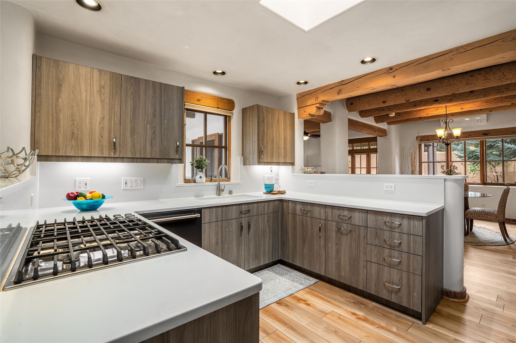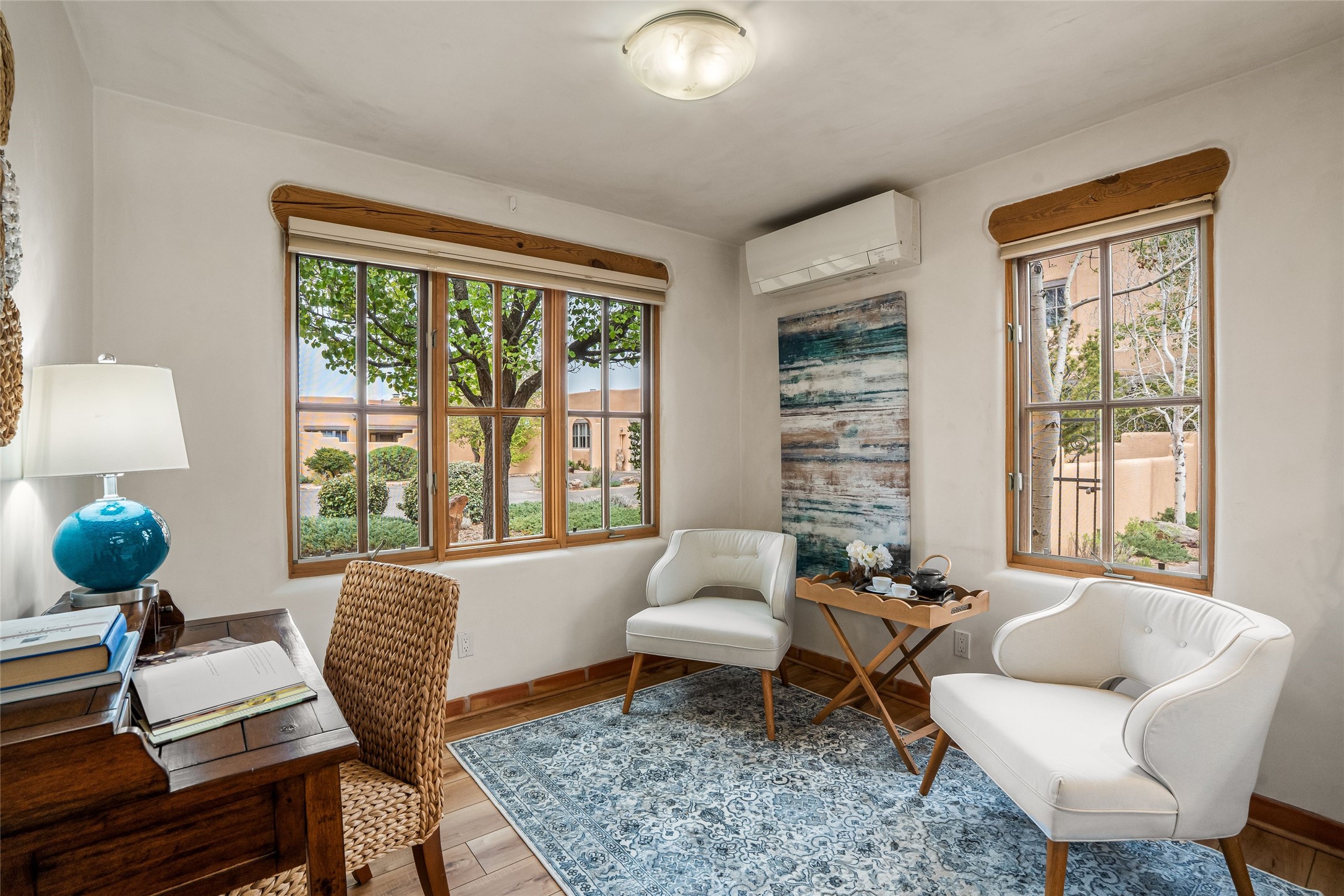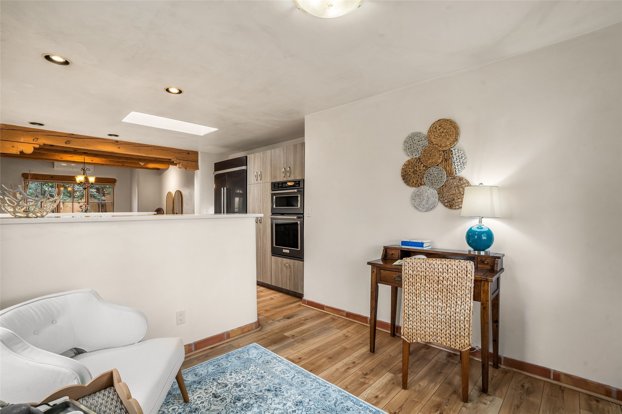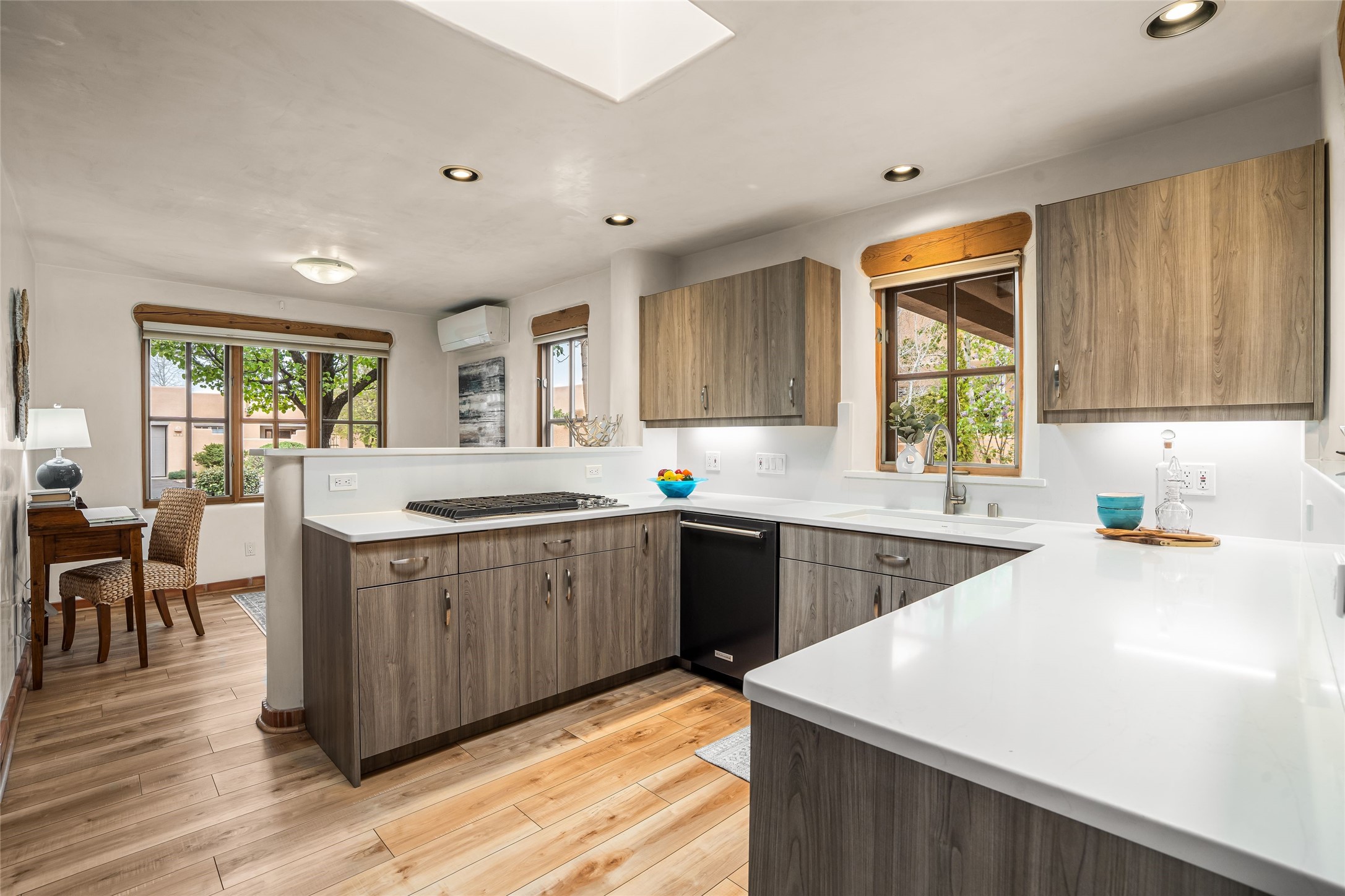 Traditional Santa Fe charm integrated with modern updates make this 2 bedroom Quail Run condo turn key and ready to enjoy. Tucked in the community on a corner lot, this detached light-filled space offers privacy and peace of mind. Custom Coretec Manila Oak floors offer a natural finish with enhanced durability. Updated kitchen and bathrooms with modern counters, newer appliances and stylish cabinets combine with a functional layout to create an ideal space to unwind in. With a light filled kitchen nook, private outdoor spaces and great separation of bedrooms you'll look forward to coming home. Home ownership at Quail Run includes all it's fabulous amenities: 24 hour hosted security, engaging 9 hole golf course, state of the art workout areas, pool and spa, quality fitness classes, tennis and pickleball and a delightful 1 3/4 walking path, come and see!