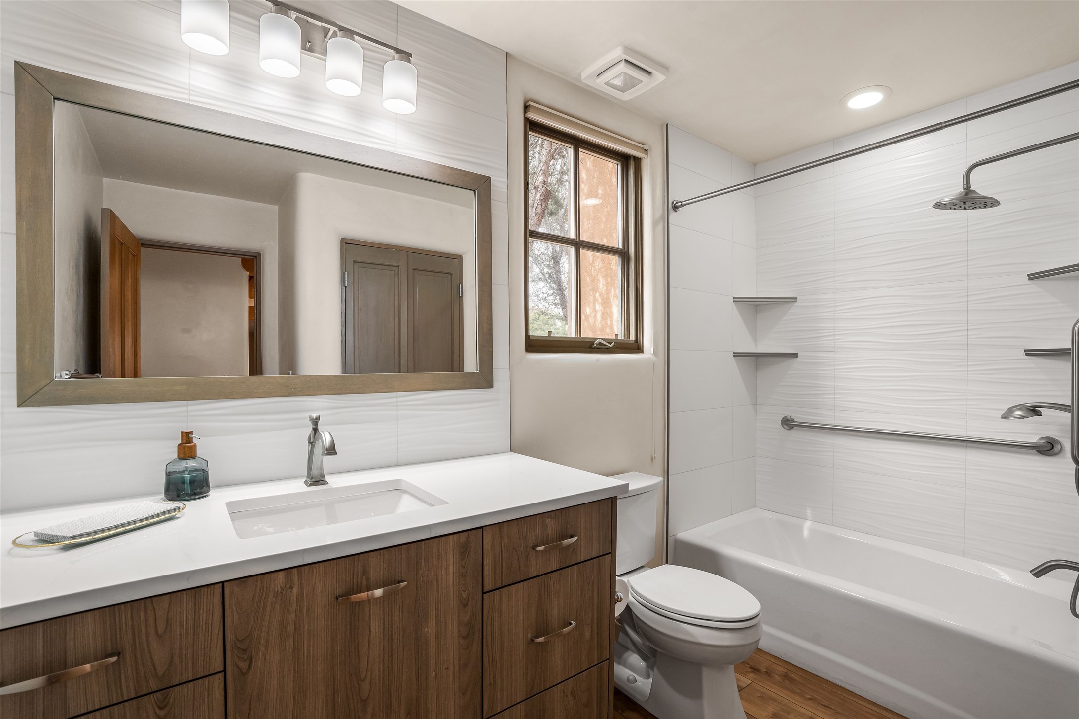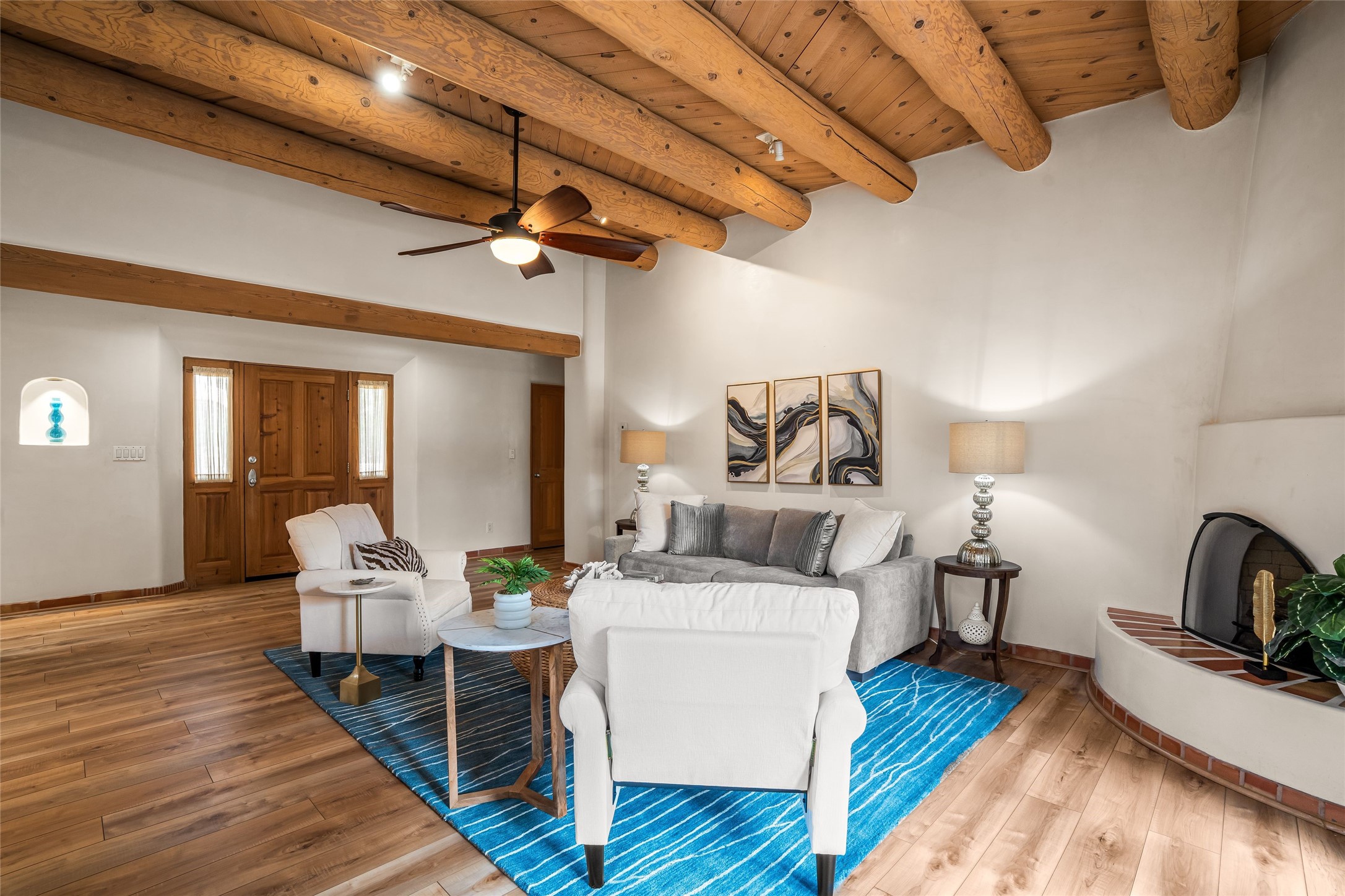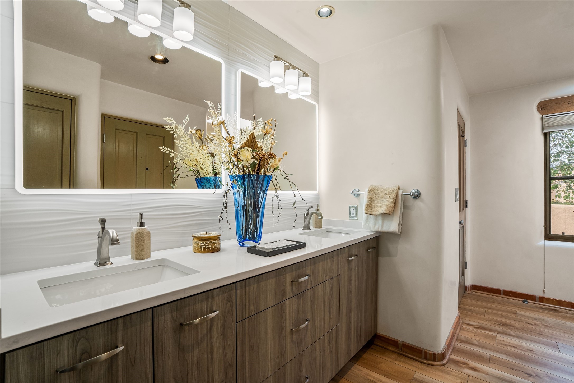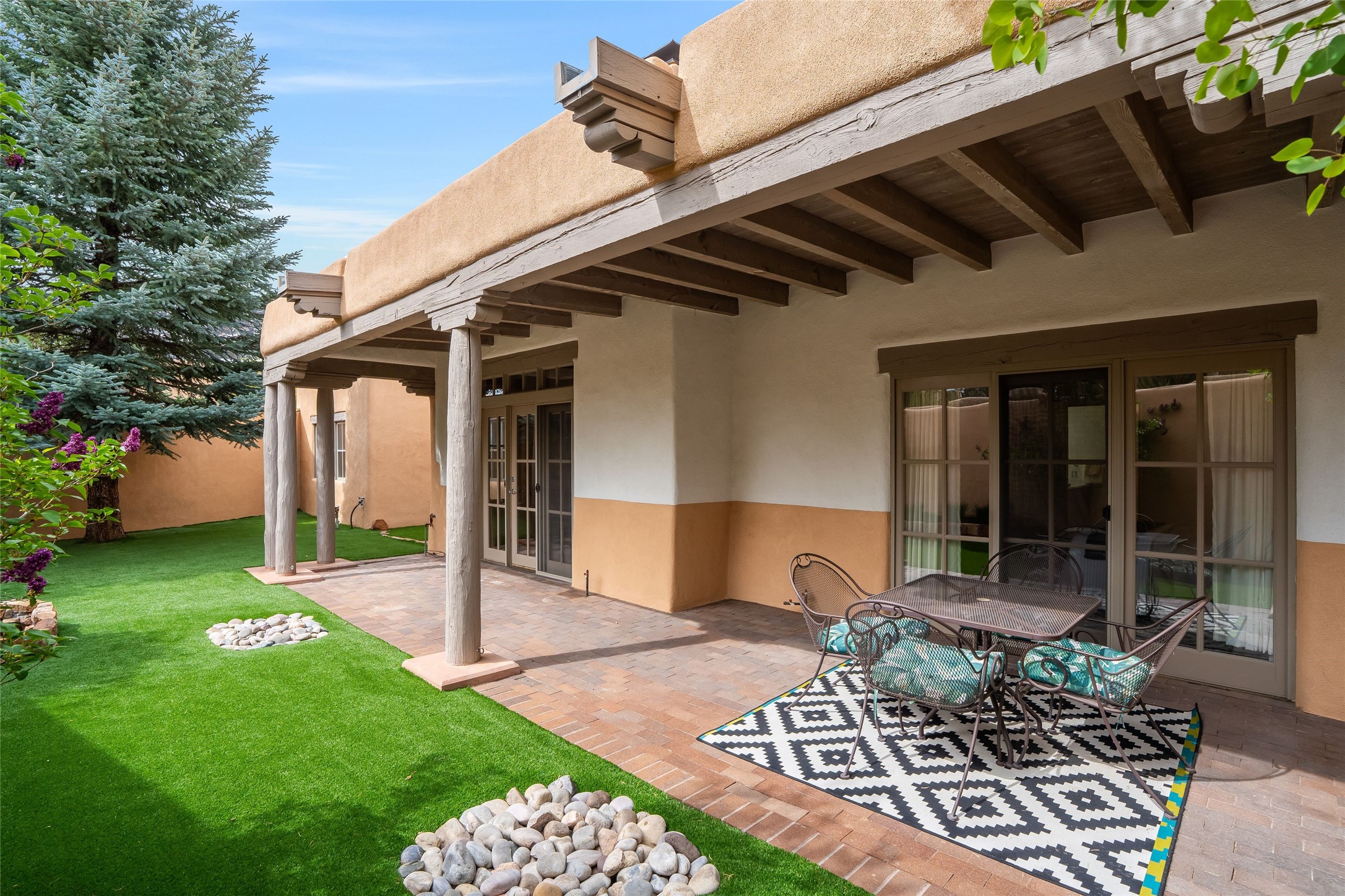 Traditional Santa Fe charm integrated with modern updates make this 2 bedroom Quail Run condo turn key and ready to enjoy. Tucked in the community on a corner lot, this detached light-filled space offers privacy and peace of mind. Custom Coretec Manila Oak floors offer a natural finish with enhanced durability. Updated kitchen and bathrooms with modern counters, newer appliances and stylish cabinets combine with a functional layout to create an ideal space to unwind in. With a light filled kitchen nook, private outdoor spaces and great separation of bedrooms you'll look forward to coming home. Home ownership at Quail Run includes all it's fabulous amenities: 24 hour hosted security, engaging 9 hole golf course, state of the art workout areas, pool and spa, quality fitness classes, tennis and pickleball and a delightful 1 3/4 walking path, come and see!