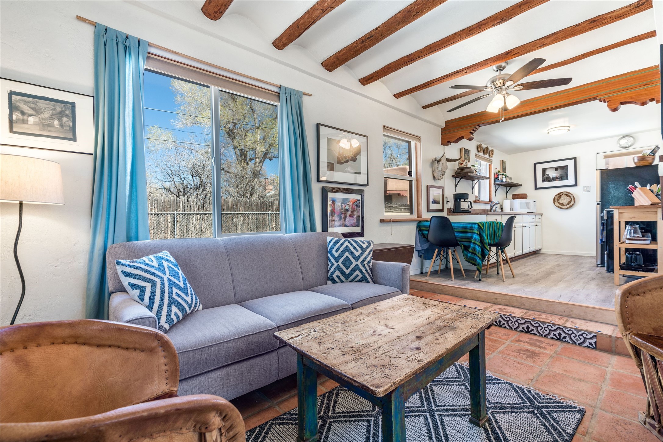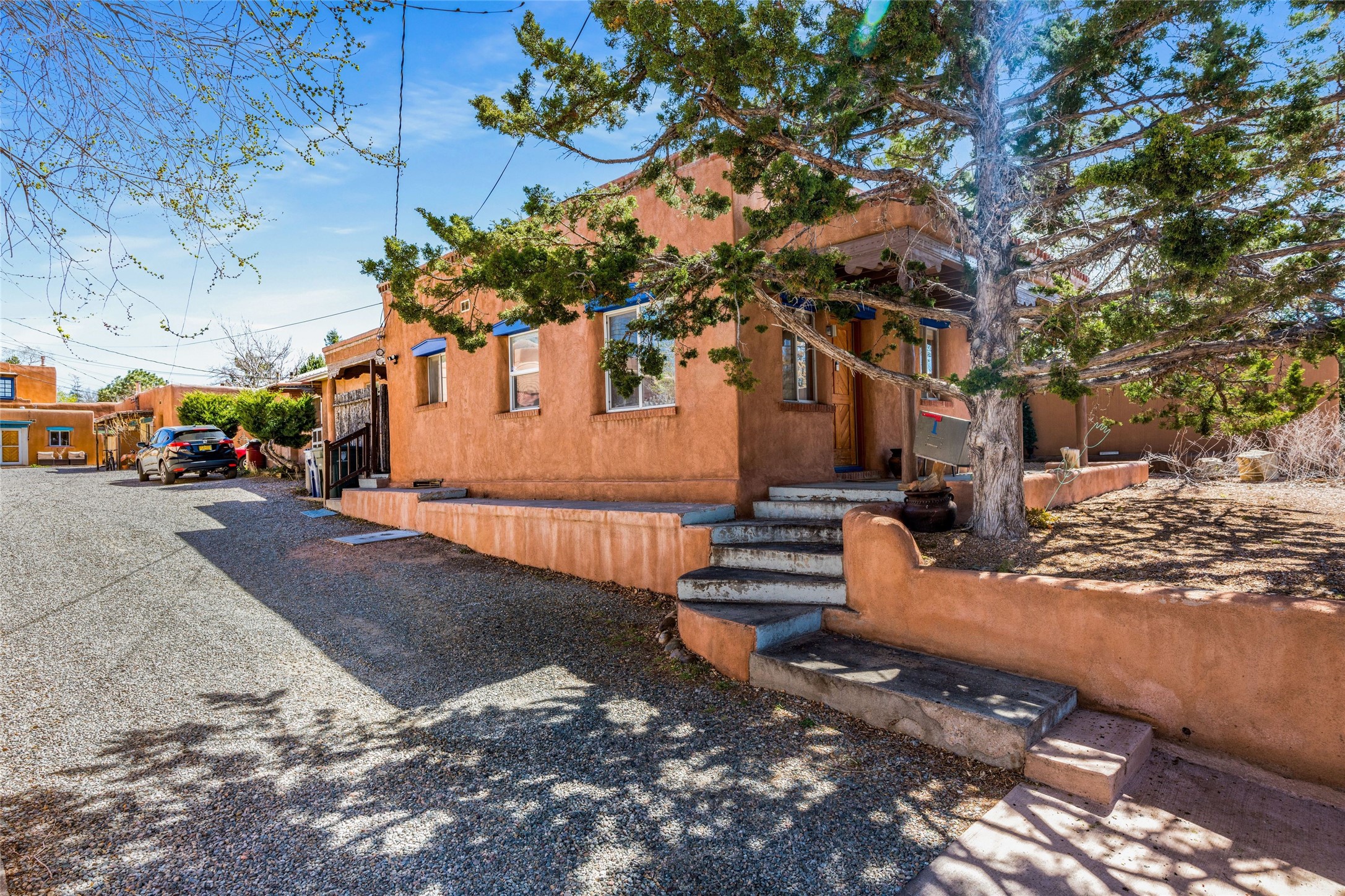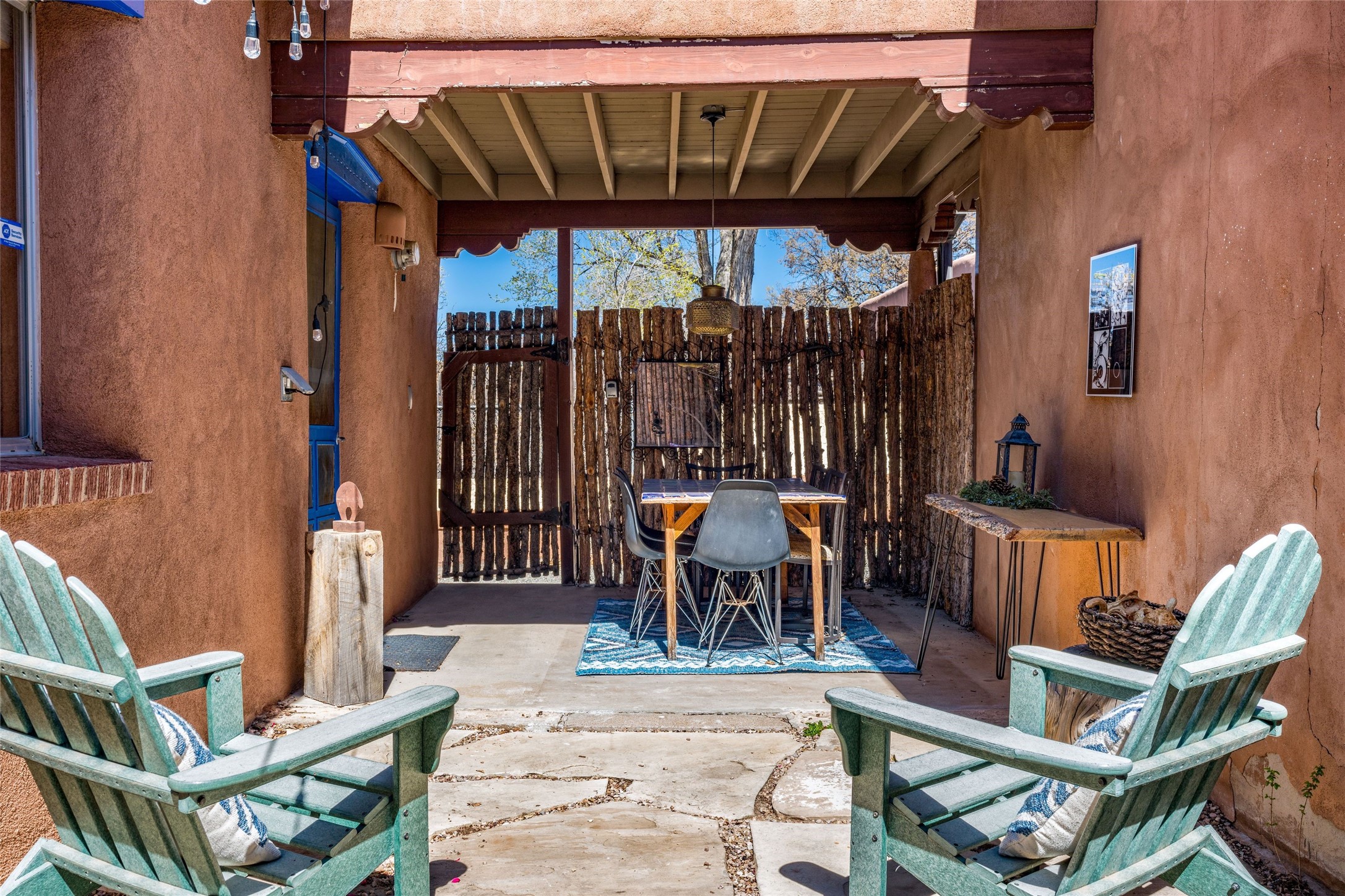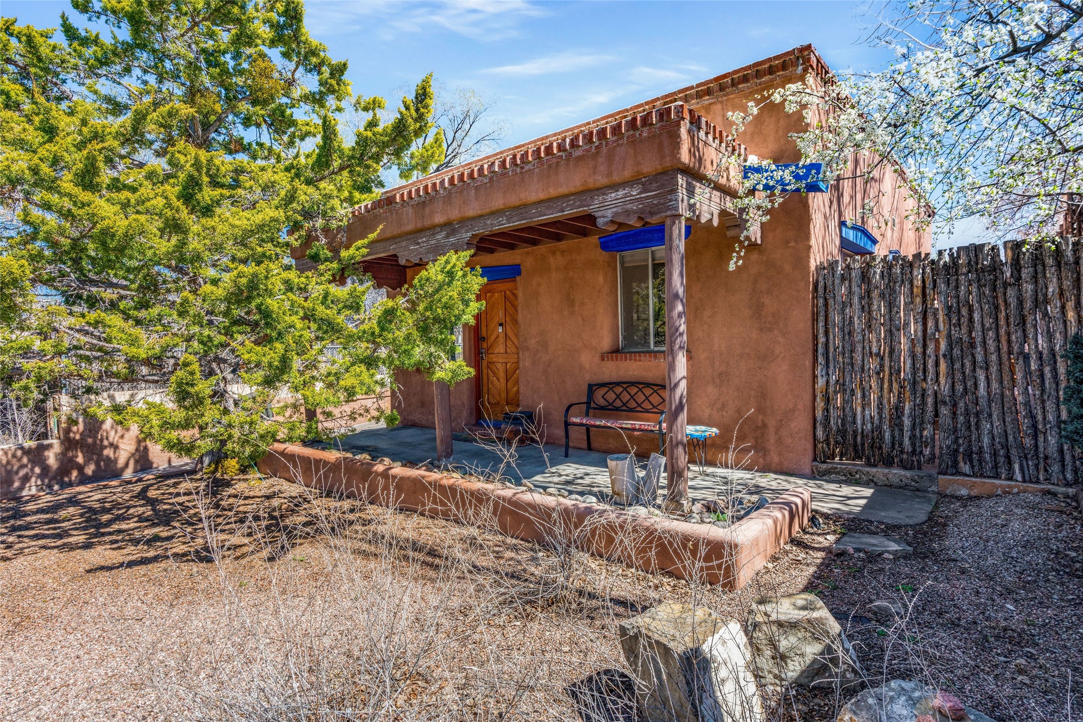This South Capitol Territorial-style home charms with classic Santa Fe style, generous basement storage and a gorgeously remodeled bath. The rear courtyard, directly off the kitchen, is fully enclosed and fabulously private; the front portal faces a xeriscaped garden shaded by a mature Juniper. Recent upgrades include a new roof, newer furnace and A/C. Set in a wonderfully walkable location 1/2 mile from The Railyard and one mile from The Plaza, this easy lock-and-leave has been a popular rental and much loved second home offering abundant access to the magic of Santa Fe.
