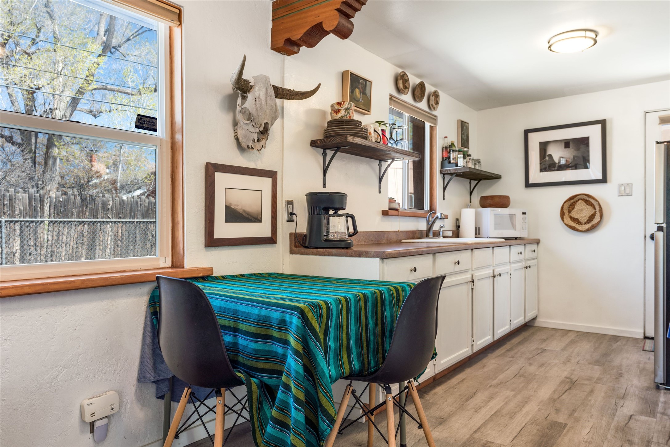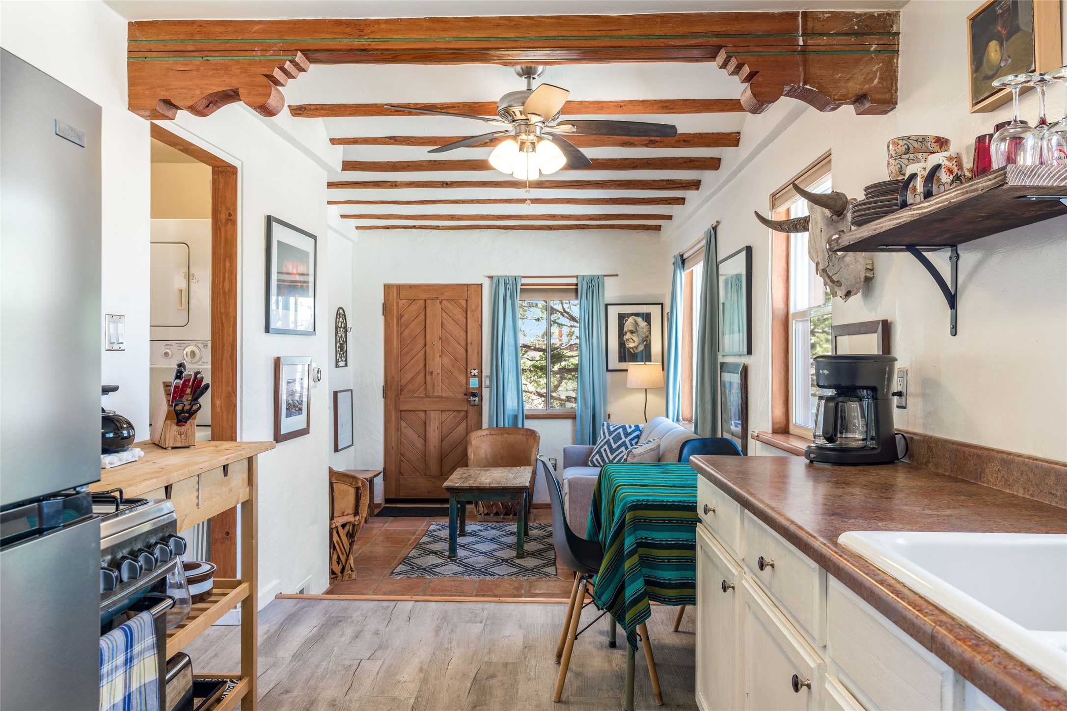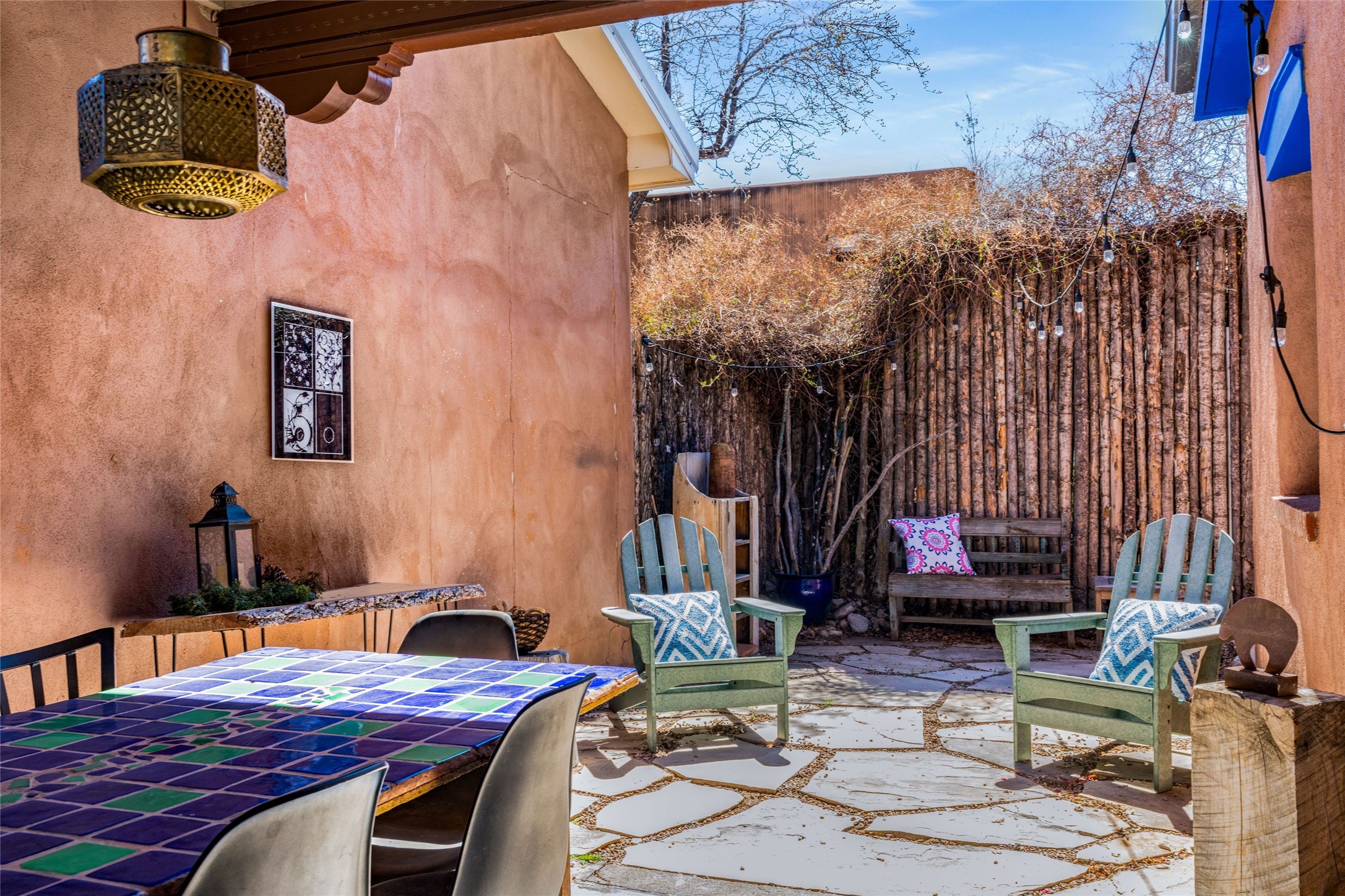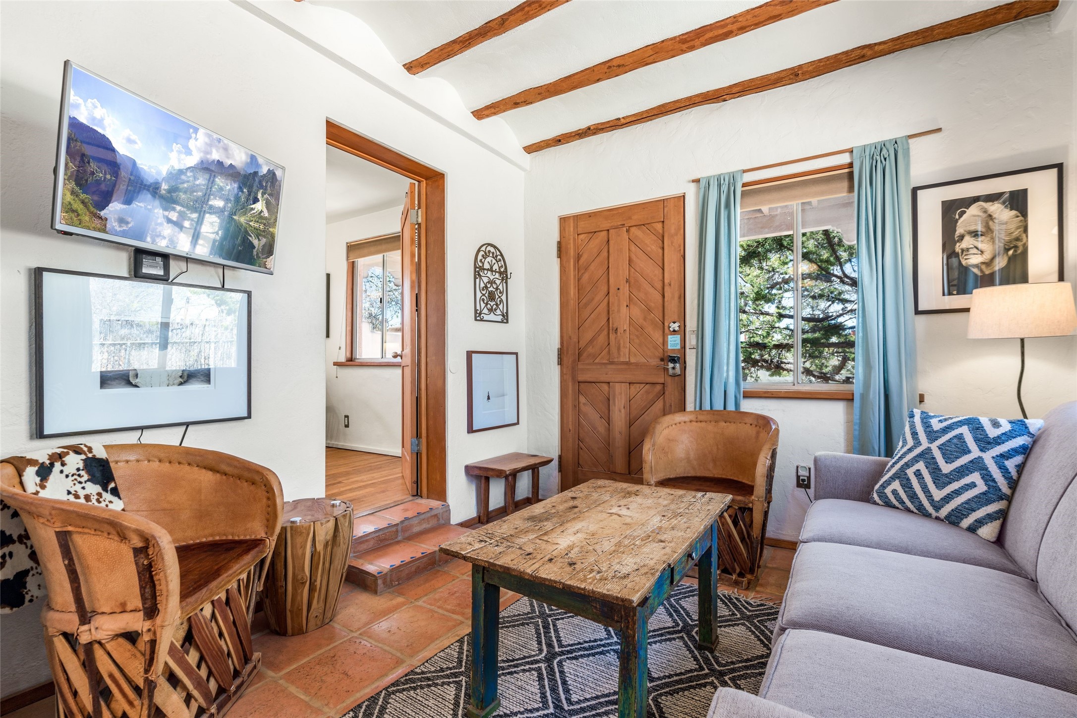 This South Capitol Territorial-style home charms with classic Santa Fe style, generous basement storage and a gorgeously remodeled bath. The rear courtyard, directly off the kitchen, is fully enclosed and fabulously private; the front portal faces a xeriscaped garden shaded by a mature Juniper. Recent upgrades include a new roof, newer furnace and A/C. Set in a wonderfully walkable location 1/2 mile from The Railyard and one mile from The Plaza, this easy lock-and-leave has been a popular rental and much loved second home offering abundant access to the magic of Santa Fe.