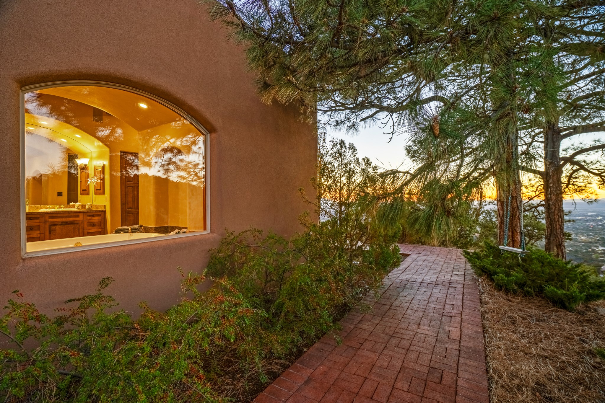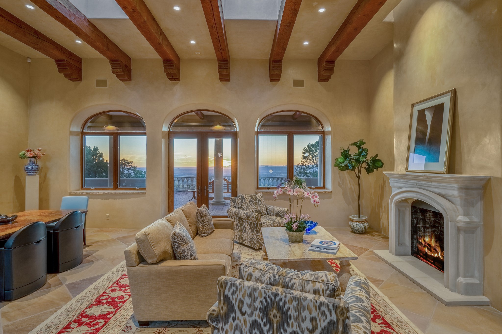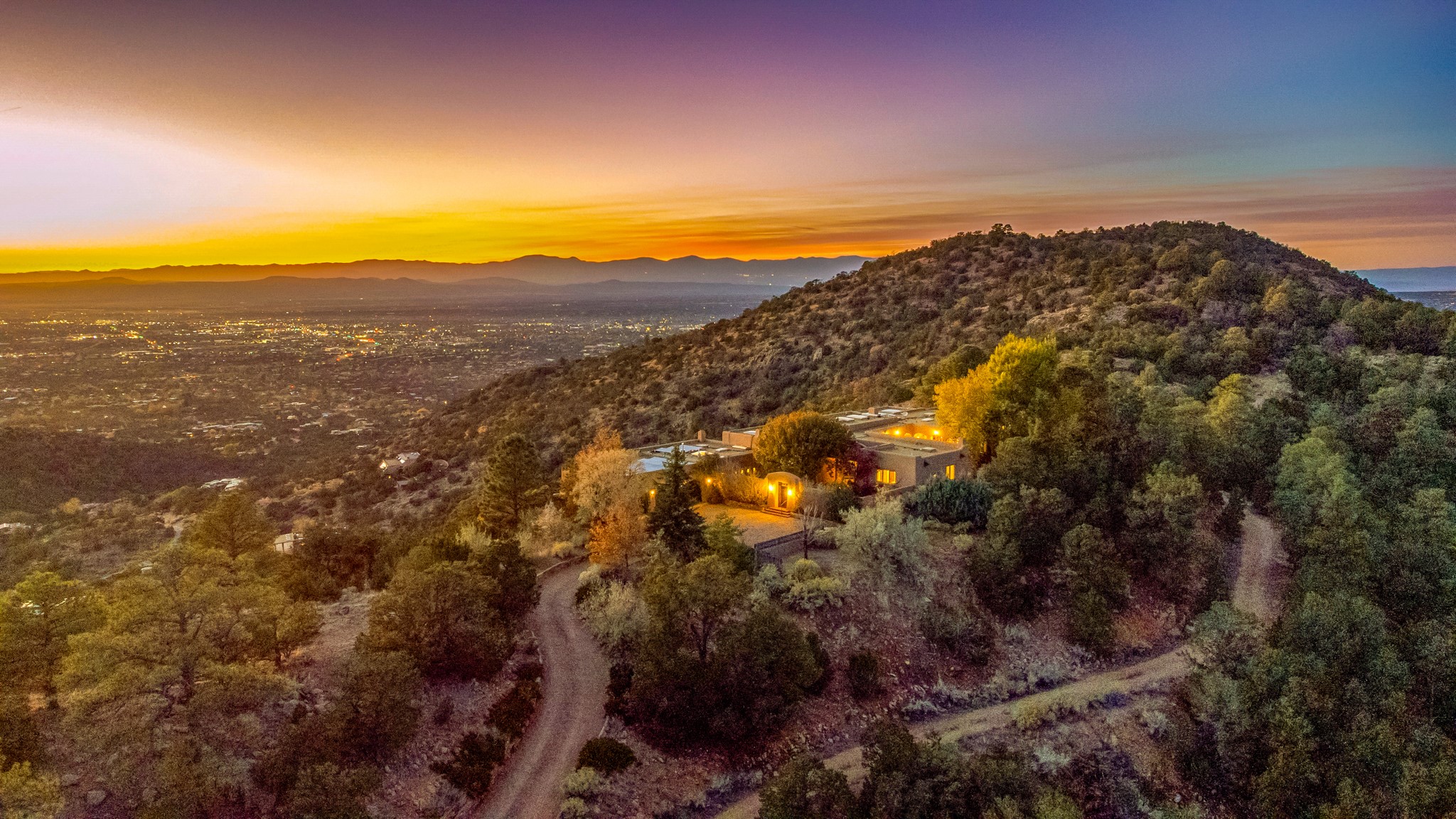 Perched on a ridgetop with rare magnificent views of mountains, sunsets and city lights is an artistic masterpiece. From the amazing vistas at every angle to the solid grounding of earth, this villa is embraced by nature and steeped in peace and privacy while also providing all you need for grand entertaining. Opening to the 3300 sf veranda and sharing in the incredible views are the gourmet kitchen, living/dining room, office/media room and the primary bedroom suite. Rounding out this truly unique and special home is a library and two additional bedrooms with ensuite baths.