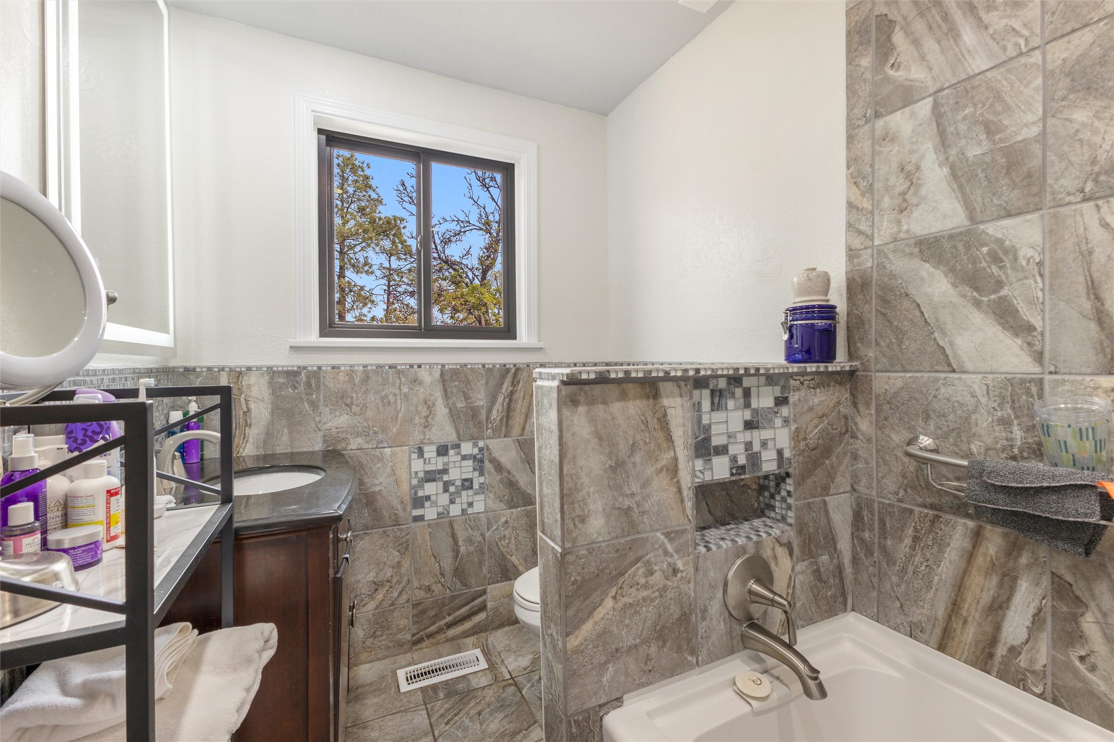 Perched on a premier canyon perimeter lot, this stunning attached single-family home offers approximately 2,034 sq ft of thoughtfully designed living space with standout upgrades throughout. The main level welcomes you with a warm and spacious family room, complemented by a light-filled sunroom--perfect for a second living area, home office, or creative retreat.The beautifully updated kitchen is a true highlight, featuring a new professional-grade stove with a custom fire wall installation, along with a new dishwasher and garbage disposal. Nearby, the convenient laundry area enhances everyday functionality.Privately situated, the primary suite wing offers a serene retreat with a spa-inspired bathroom complete with a luxurious jetted tub and radiant heated tile floors. Brand-new Saltillo tile flows throughout the home, adding rich character and timeless Southwest charm.Upstairs, you'll find three generously sized bedrooms and a full bathroom, ideal for family or guests. Additional improvements include a new water heater, providing peace of mind for years to come.Step outside to a spacious backyard ready for your vision, all set against a breathtaking canyon backdrop, perfect for entertaining, relaxing, or enjoying the natural beauty surrounding you.With its premier canyon lot, extensive upgrades, flexible living spaces, and distinctive style, this home is a rare opportunity in a highly sought-after location.