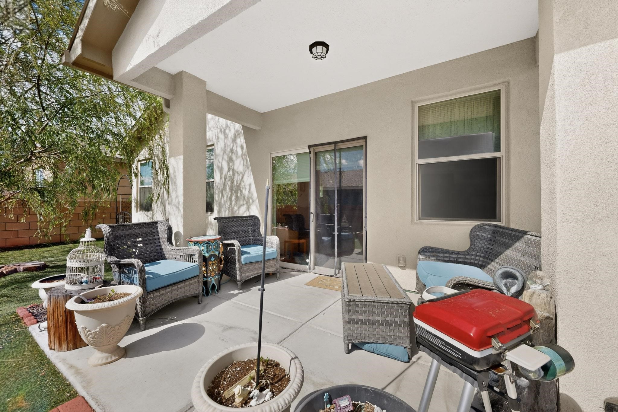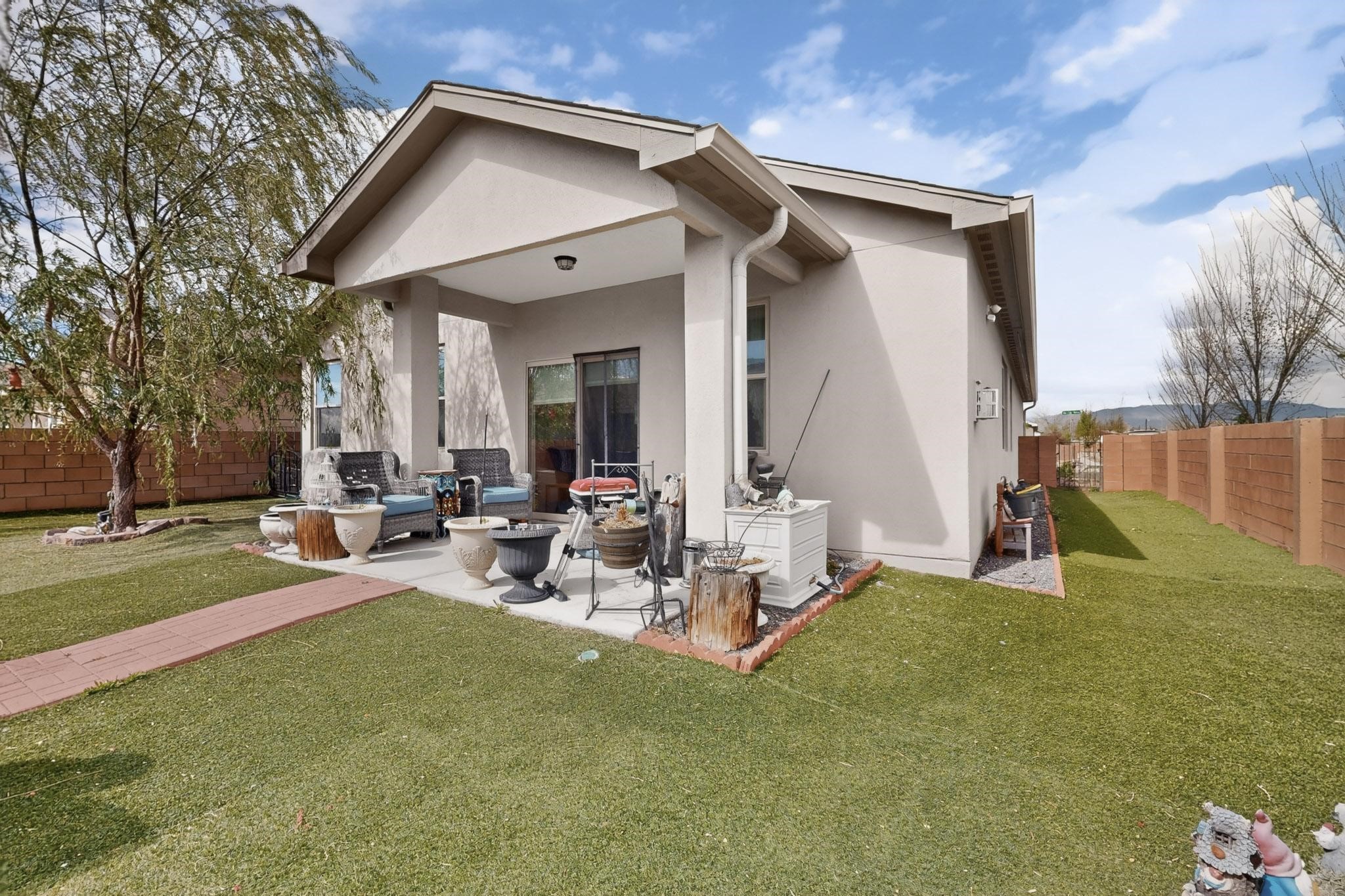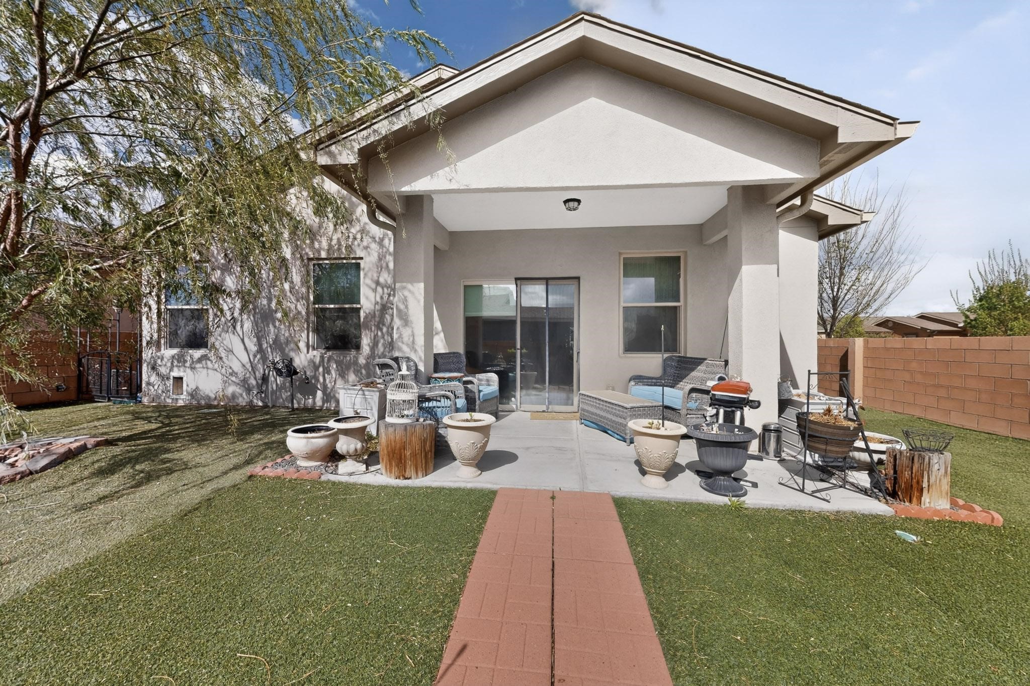 Welcome to this charming home on a large corner lot, with 3 bedrooms and 2 bathrooms, nestled within 1737 square feet living space. The open concept floor plan sets the stage for effortless living. The second and third bedrooms conveniently share a well-appointed hall bathroom, while the primary bedroom has its own ensuite bathroom complete with an enclosed shower area. The kitchen has granite countertops, and stainless steel appliances and lots of cabinets for storage, the kitchen is both functional and stylish. Great laundry room with storage. This property feature a spacious attached car garage. Natural light floods the comfortable living room through windows and a sliding glass door leading out to the covered patio, creating a warm and inviting ambiance. Outside in the backyard, you will find a beautiful landscaped yard with two French drains and astroturf, and pet-friendly. Built in 2021, this home offers both privacy and breathtaking views of the majestic Sangre de Cristo mountains, making it a serene retreat to call your own. This home is ADA compliant.