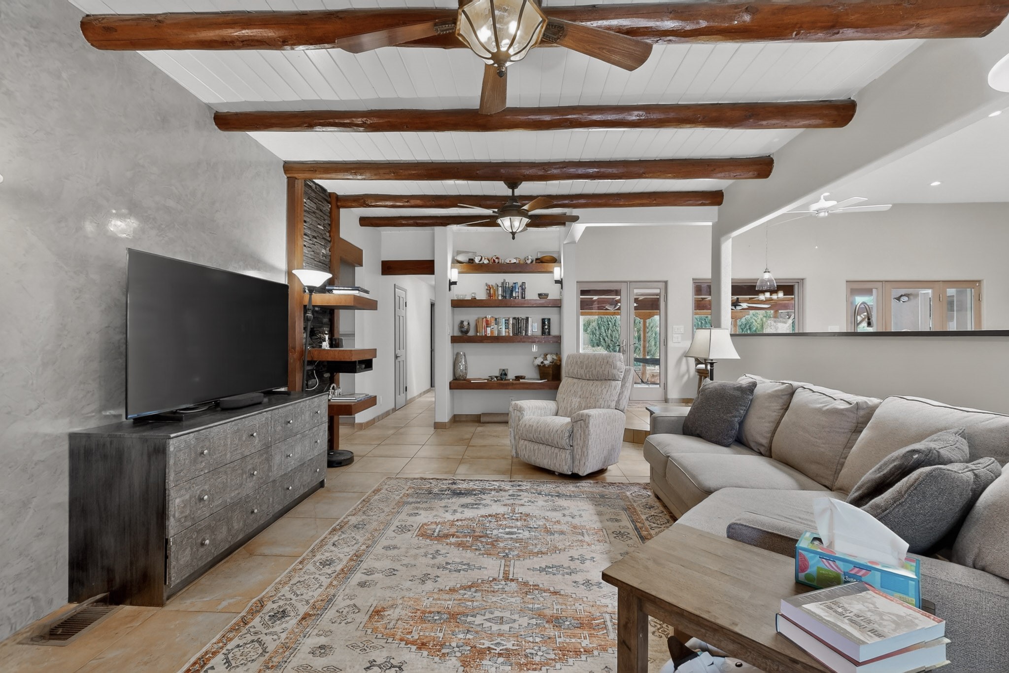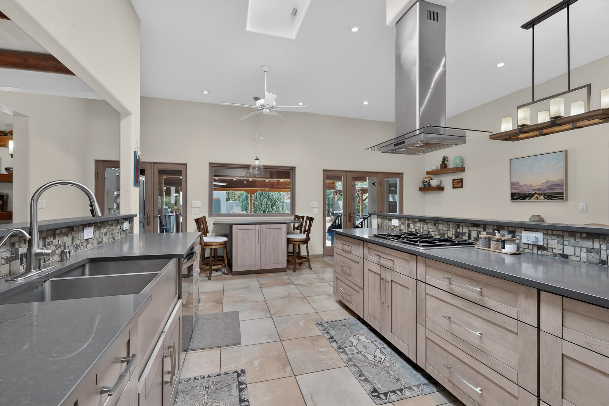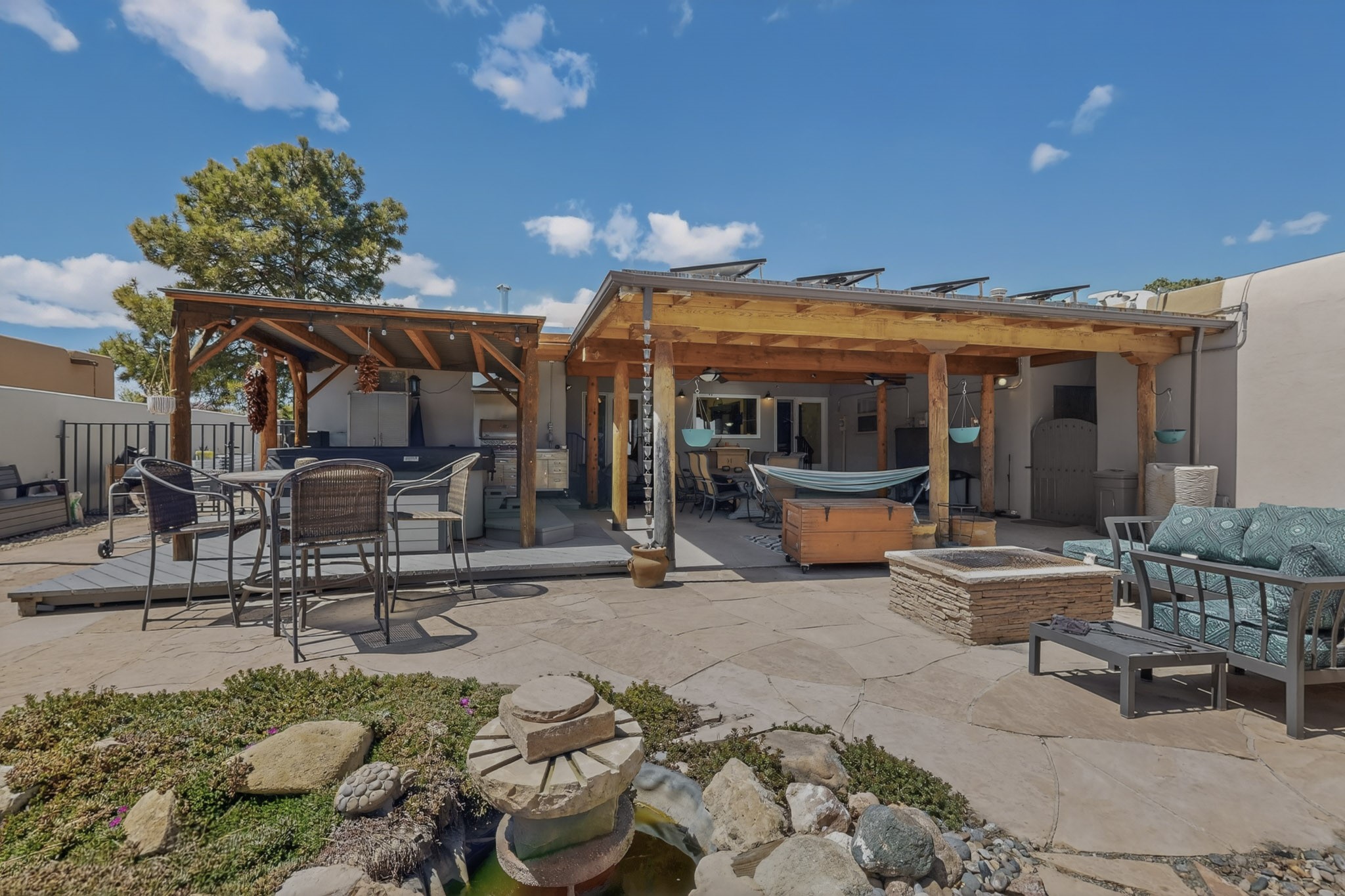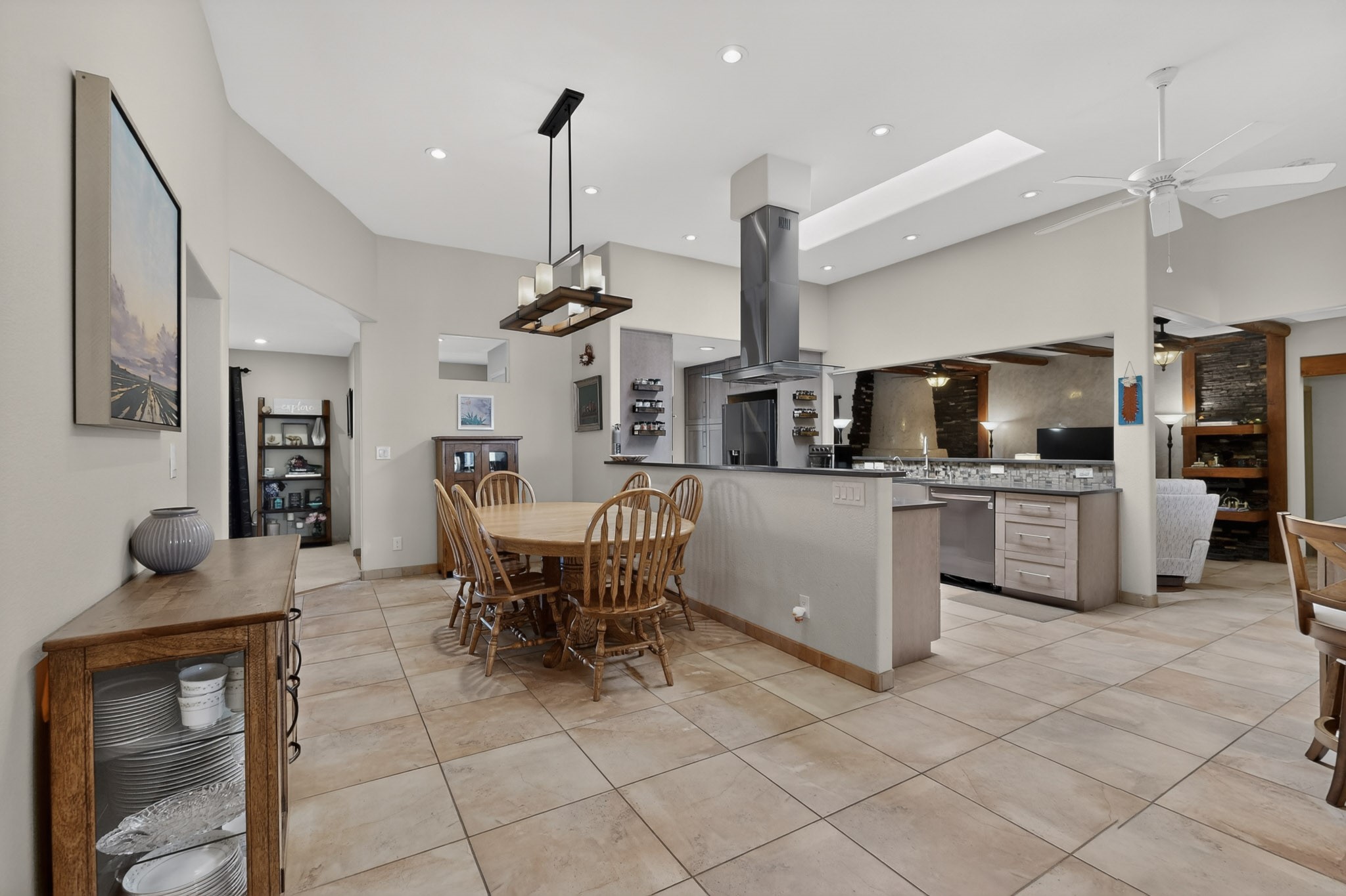 Welcome to Via Caballero, a highly sought-after neighborhood, known for quiet living and oversized lots in a centralized location. This home has been renovated with a new Solar system, new flooring, new windows, new stucco and roof, new skylights, a beautiful new kitchen with a built-in Miele coffee station and lots of storage, along with updated bathrooms - all within the last 5 years. The sellers have installed a new dishwasher, refrigerator, washer and dryer. To add to the amenities, you have a 884 square foot RV garage with 3 bays that is heated for any work or play that you want. There is good separation between the primary bedroom and the other bedrooms and lots of living space with a living room and a family room. The kitchen, dining room and breakfast nook have an open concept and adjoin the family room. The backyard is completely enclosed with a stucco wall and has an outdoor kitchen with a built-in range and storage. A new hot tub and outdoor fountain for your enjoyment are in the privacy of the covered patio in your backyard. The house is completely powered from the new solar panels that have been paid for. This property has so much to offer - all in a great location with lots of space to make it your own at a great price!