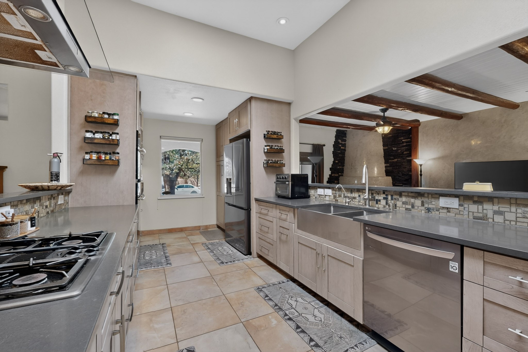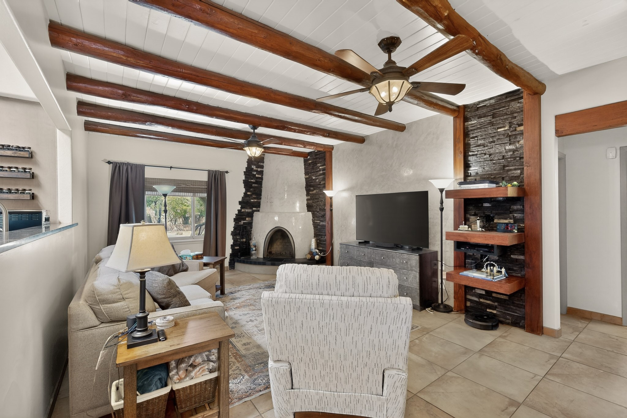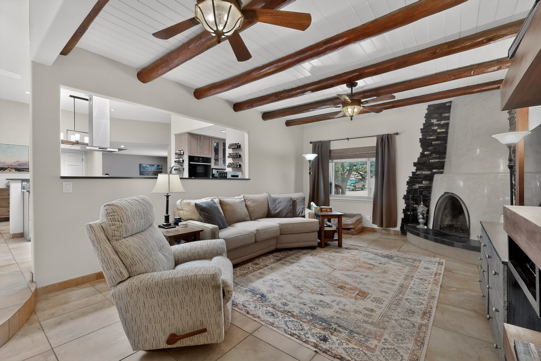 Welcome to Via Caballero, a highly sought-after neighborhood, known for quiet living and oversized lots in a centralized location. This home has been renovated with a new Solar system, new flooring, new windows, new stucco and roof, new skylights, a beautiful new kitchen with a built-in Miele coffee station and lots of storage, along with updated bathrooms - all within the last 5 years. The sellers have installed a new dishwasher, refrigerator, washer and dryer. To add to the amenities, you have a 884 square foot RV garage with 3 bays that is heated for any work or play that you want. There is good separation between the primary bedroom and the other bedrooms and lots of living space with a living room and a family room. The kitchen, dining room and breakfast nook have an open concept and adjoin the family room. The backyard is completely enclosed with a stucco wall and has an outdoor kitchen with a built-in range and storage. A new hot tub and outdoor fountain for your enjoyment are in the privacy of the covered patio in your backyard. The house is completely powered from the new solar panels that have been paid for. This property has so much to offer - all in a great location with lots of space to make it your own at a great price!