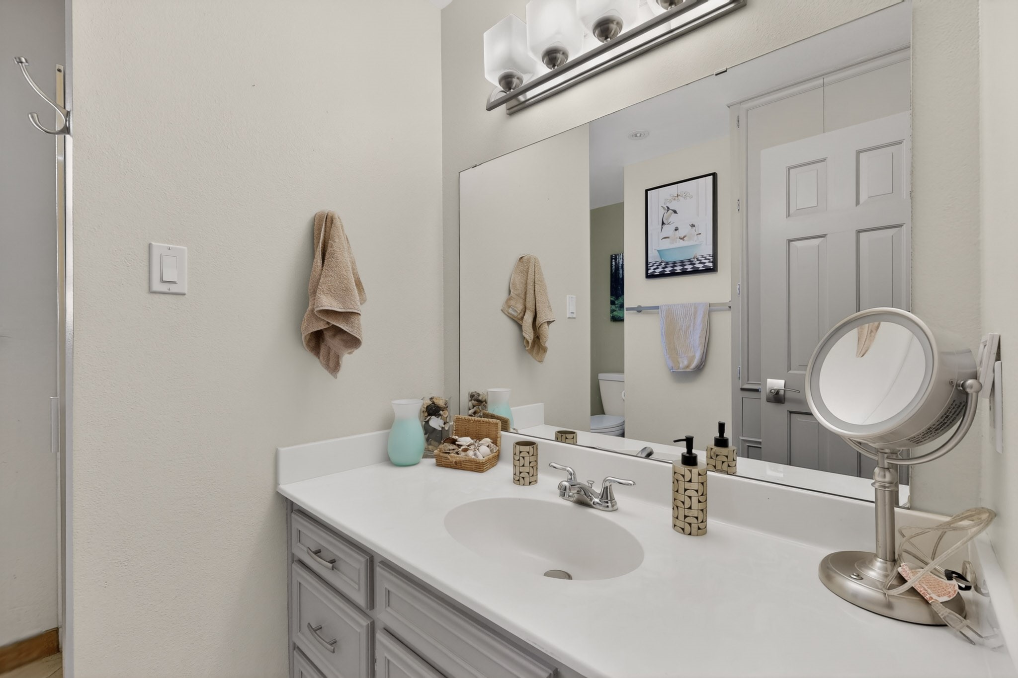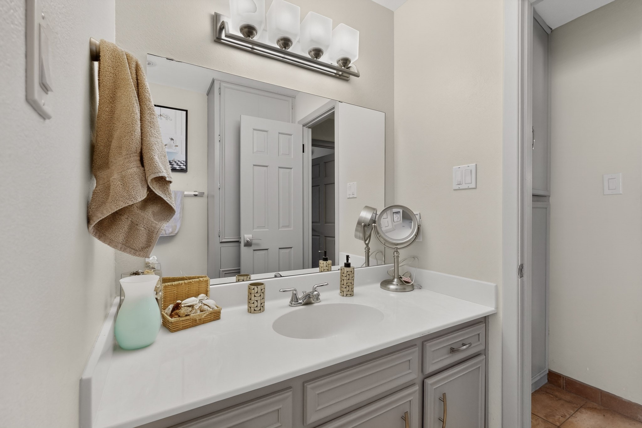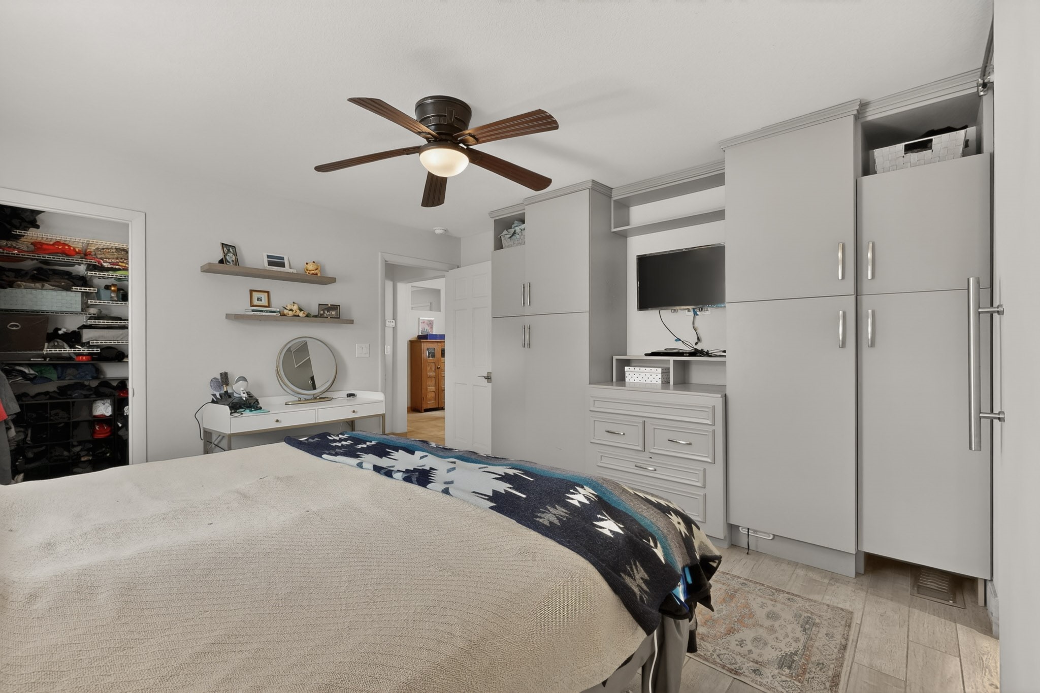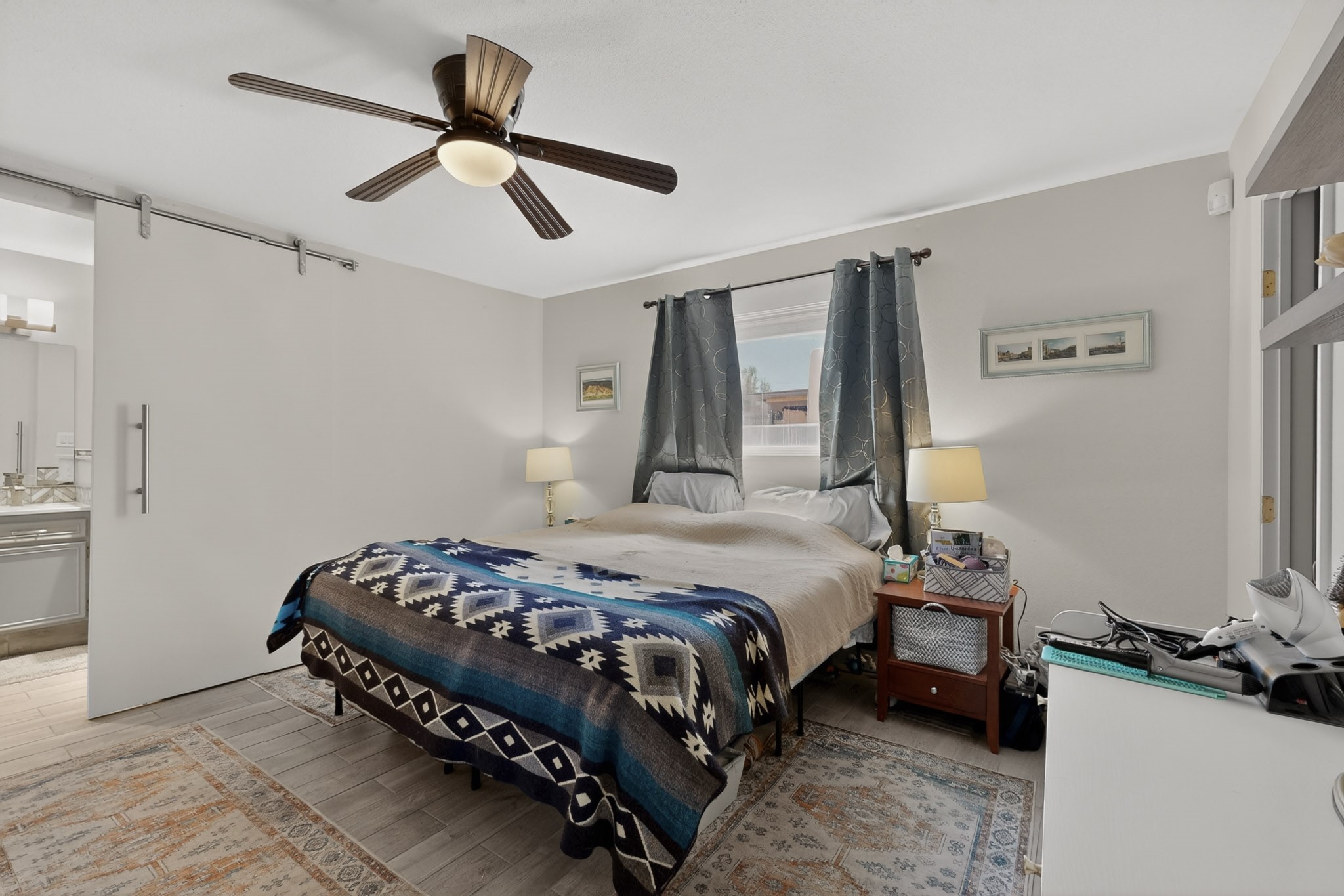 Welcome to Via Caballero, a highly sought-after neighborhood, known for quiet living and oversized lots in a centralized location. This home has been renovated with a new Solar system, new flooring, new windows, new stucco and roof, new skylights, a beautiful new kitchen with a built-in Miele coffee station and lots of storage, along with updated bathrooms - all within the last 5 years. The sellers have installed a new dishwasher, refrigerator, washer and dryer. To add to the amenities, you have a 884 square foot RV garage with 3 bays that is heated for any work or play that you want. There is good separation between the primary bedroom and the other bedrooms and lots of living space with a living room and a family room. The kitchen, dining room and breakfast nook have an open concept and adjoin the family room. The backyard is completely enclosed with a stucco wall and has an outdoor kitchen with a built-in range and storage. A new hot tub and outdoor fountain for your enjoyment are in the privacy of the covered patio in your backyard. The house is completely powered from the new solar panels that have been paid for. This property has so much to offer - all in a great location with lots of space to make it your own at a great price!