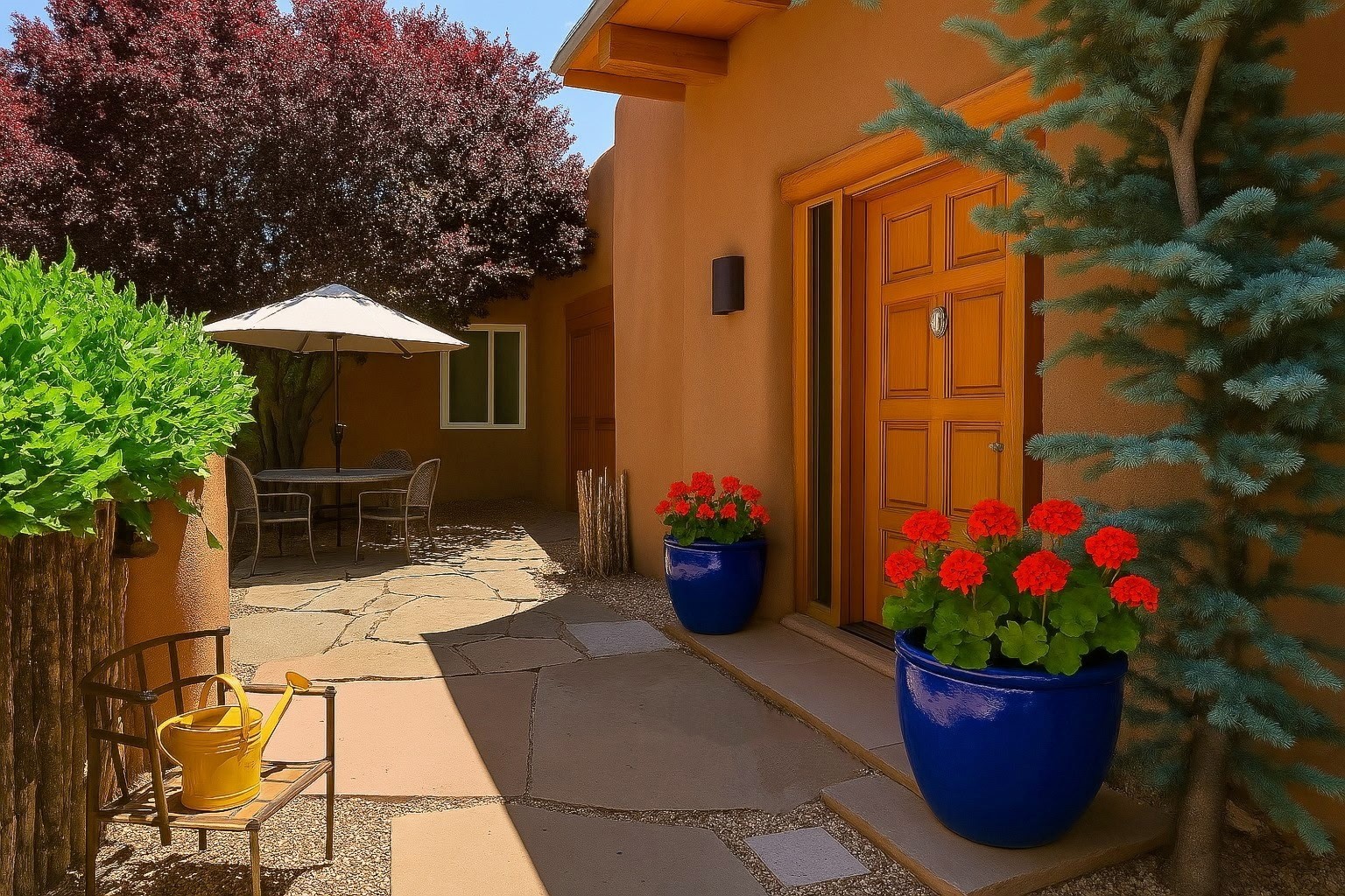 The picturesque, incorporated village of Tesuque enjoys a rural feel (there are still horse properties here) and is only five minutes north of Santa Fe, just beyond Bishop’s Lodge. Known for its valley of lush vegetation and the Tesuque River, as well as hilltop sites with views and traditional Northern New Mexico pinon and juniper, Tesuque attracts artists, professionals, retirees, second home owners, and celebrities looking to hide out. There is a small commercial community consisting of the landmark Tesuque Market, the restaurant El Nido and Shidoni Foundry.